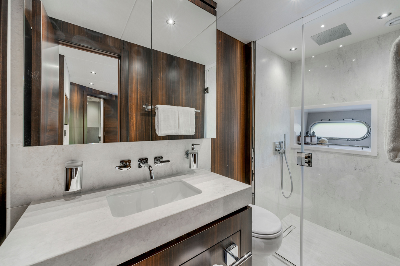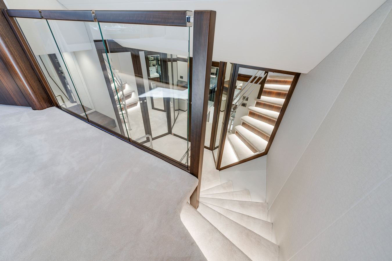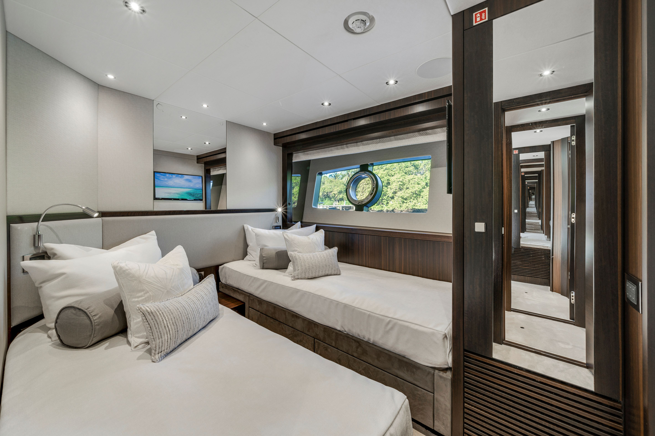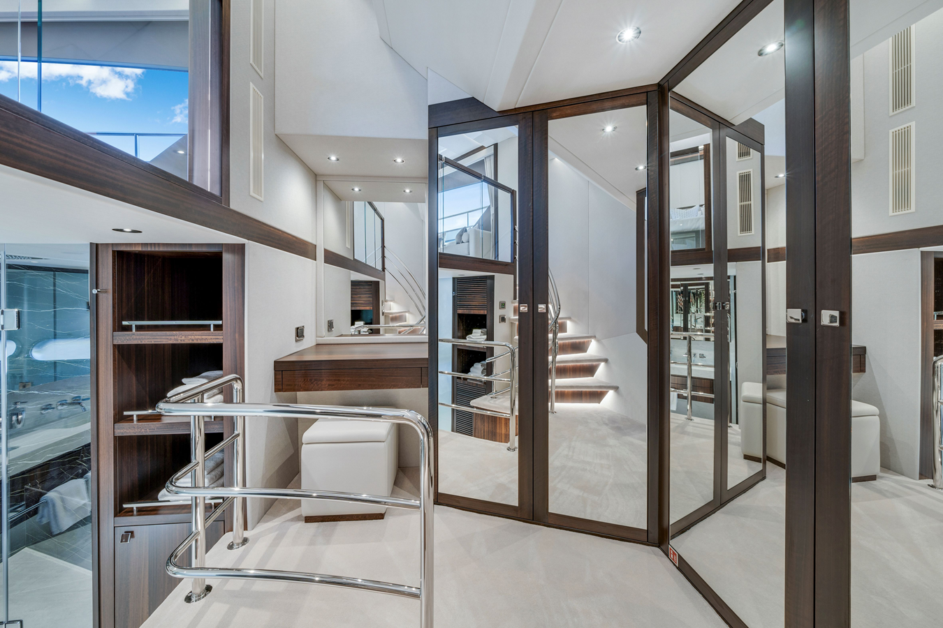 - Master cabin bedside tables to be same style as 90 Ocean Master cabin units in lieu of standard. Leather wrap Stolz – Atlas A763 leather