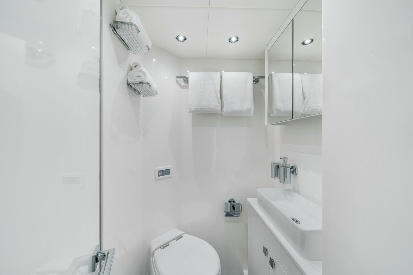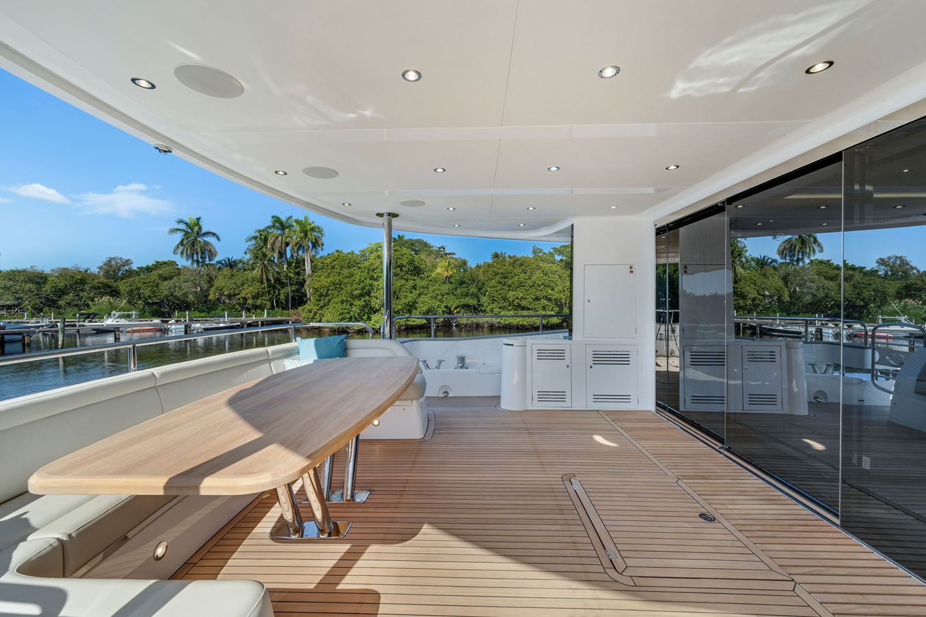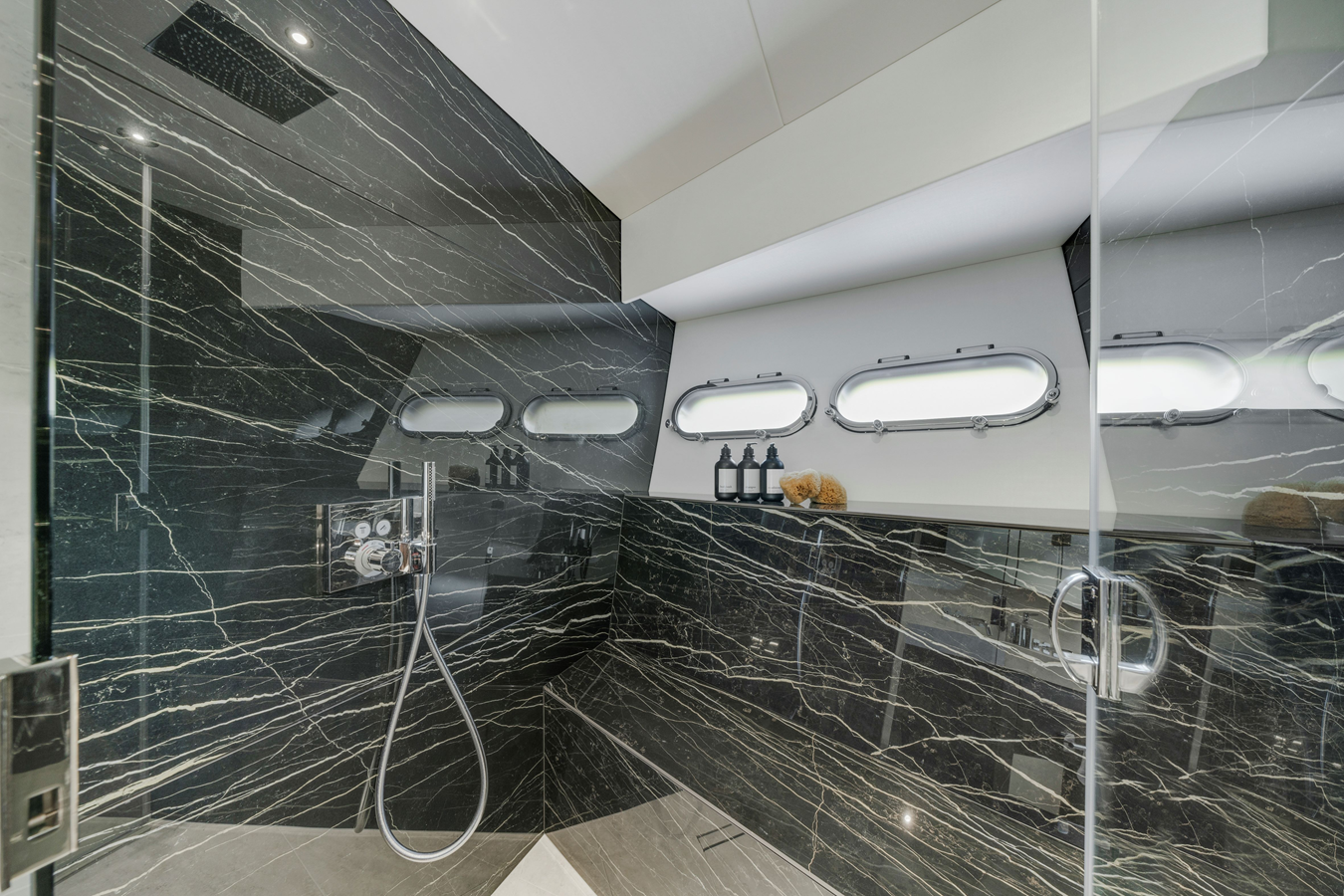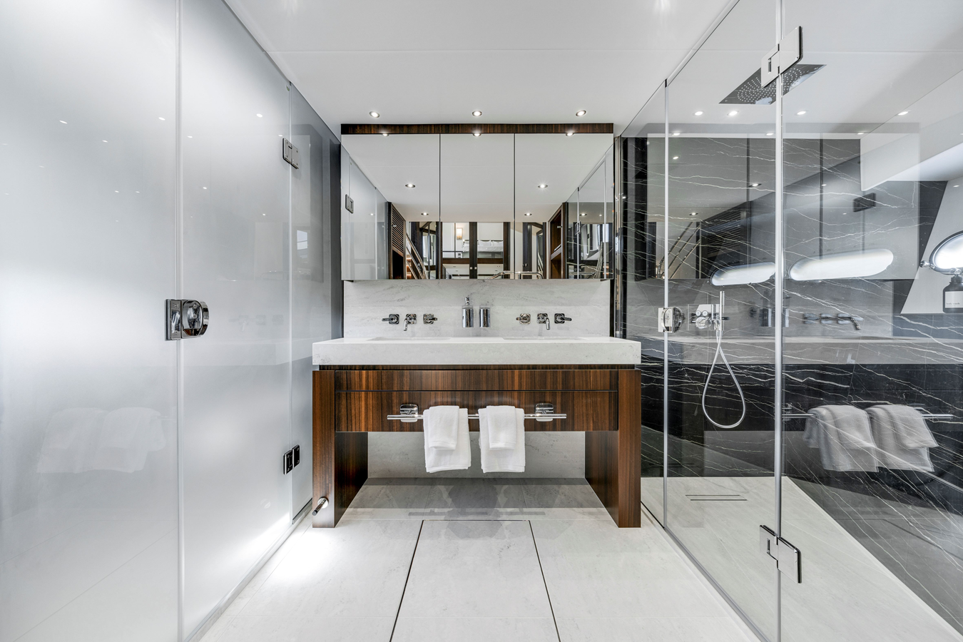 - Master cabin bedside tables to be same style as 90 Ocean Master cabin units in lieu of standard. Leather wrap Stolz – Atlas A763 leather