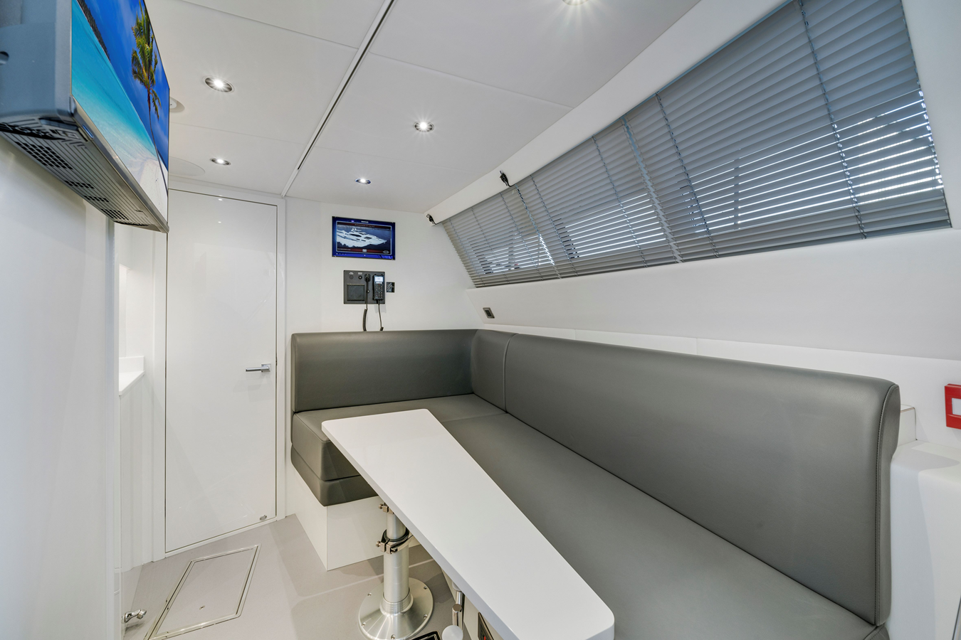 - Opti Grey mirrored window reveals to saloon and Dining and all guest cabins (except Master)
