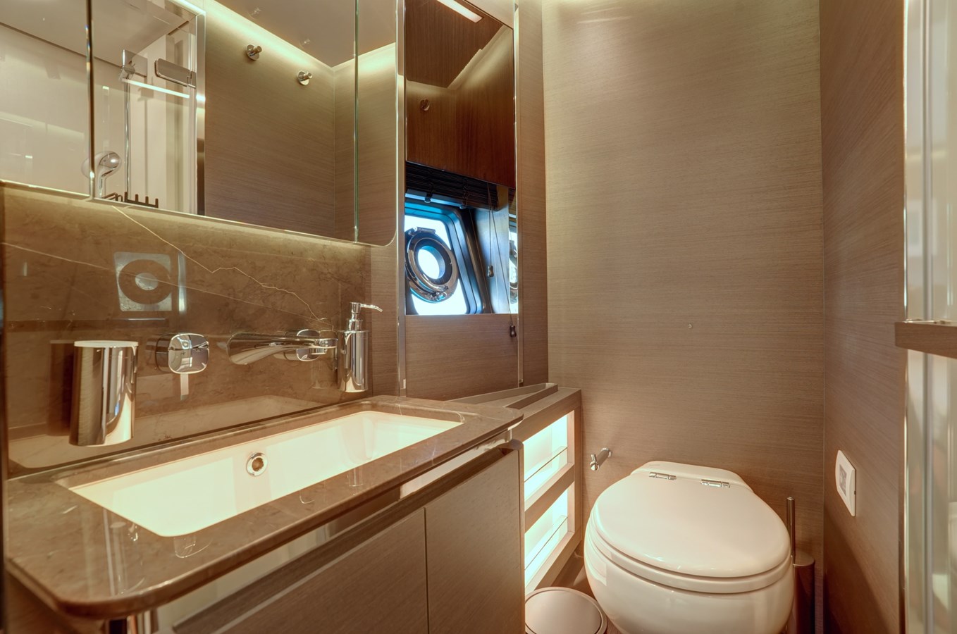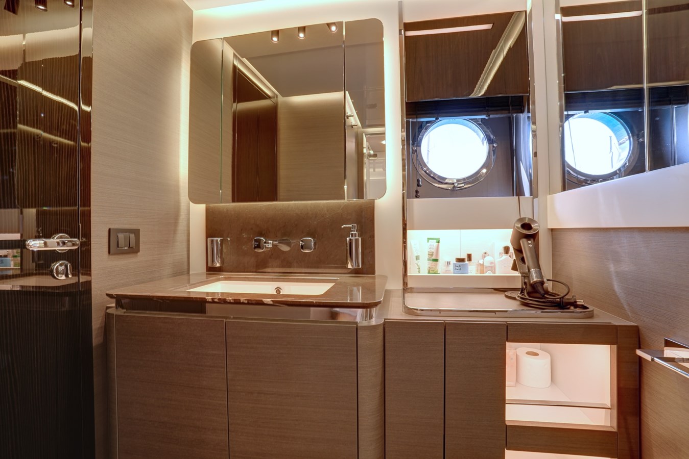 - Wine fridge: 1 x galley floor storage compartment for 24 bottles