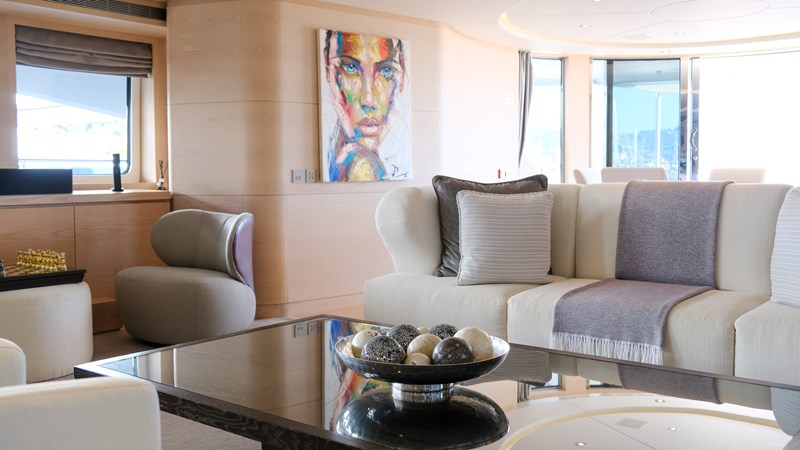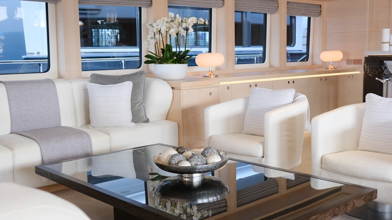 G3 is one of only seven yachts built in the Heesen 4400 Aluminum series and stands out as one of the most thoroughly refitted examples on the market. Delivered in 2008, she underwent a charter-optimized refit in 2017, followed by a full repaint and interior refresh in 2021–2022, and a series of technical upgrades in 2024. Built in all-aluminium with a semi-displacement hull, G3 delivers both speed and range. Her twin MTU diesel engines generate 7,200 hp, supporting a top speed of 23 knots and a cruising speed of 17 knots. She’s equipped with zero-speed fin stabilizers, and in 2024, her steering rams, thrusters, stabilizers, propellers, and swim platform were all overhauled or serviced to ensure reliable operation. Styled by Omega Architects, her interiors are open, fresh, and flexible. The main salon features expansive windows and a clean, modern finish. The formal dining area was moved aft in her 2017 refit, opening directly onto the main deck aft for a more connected indoor–outdoor experience. The galley is fully equipped with Miele and Hoshizaki appliances, and a dumbwaiter system supports smooth service. The skylounge, updated in 2022, opens onto the bridge deck aft, offering a flexible space for entertaining. G3 accommodates up to 12 guests in five cabins, with room for nine crew. The full-beam master suite is located forward on the main deck and includes floor-to-ceiling windows, a generous en-suite, and a private office that can be converted into a children’s cabin or massage room. The lower deck includes two doubles and two convertible twins, each with en-suite bathrooms. Crew are housed in four cabins, including a bridge deck captain’s cabin. The sundeck is the centerpiece of G3, featuring a Jacuzzi encircled by sunpads and a full outdoor cinema system. The bridge deck aft is arranged for shaded alfresco dining, and the main aft deck flows seamlessly from the interior. The beach club, created during the 2017 refit, folds out at the waterline and includes a gym, wet bar, and lounge area. In 2024, the swim platform was mechanically rebuilt. The foredeck is configured for tender and toy storage, carrying a Williams Sportjet 375, four Seadoo Spark Jet Skis, two eFoils, a Radinn jet surfboard, five Seabobs, and more—including dive gear with Bauer compressor, inflatable sailing catamaran, and kitesurfing equipment.