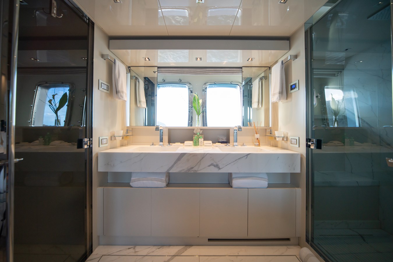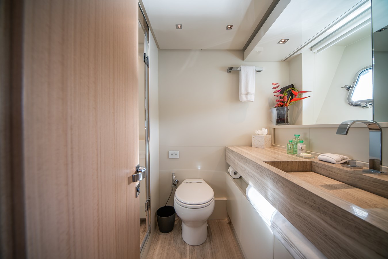TV behind mirror in master cabin and VIP cabin