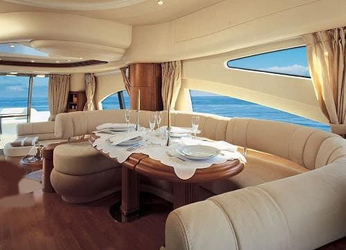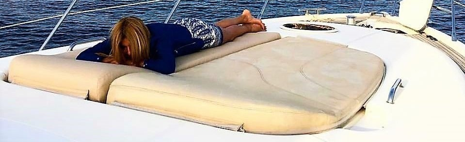 From looking at her exterior, one could understandably mistake her for a super-yacht. Refitted with a teak deck all over, including the fly bridge and walk around, you’re surrounded by luxury.The exterior color scheme of neutral beige and cream tones,reinforce the chicness of this yet.The spacious flybridge is an ideal setting for evening chats on the comfy couches.While the upper deck is ideal for formal, sit down dining experiences.