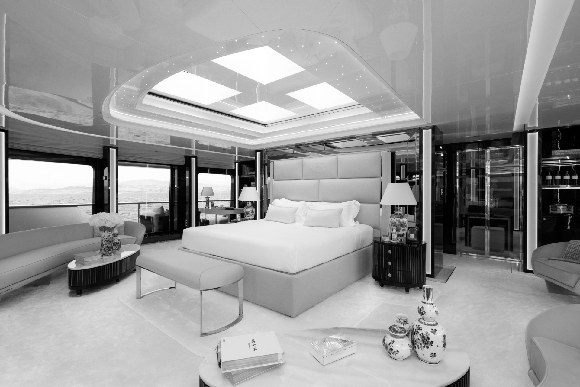 - Royal Master Suite with floor-to-ceiling windows, private balconies, and a large central skylight