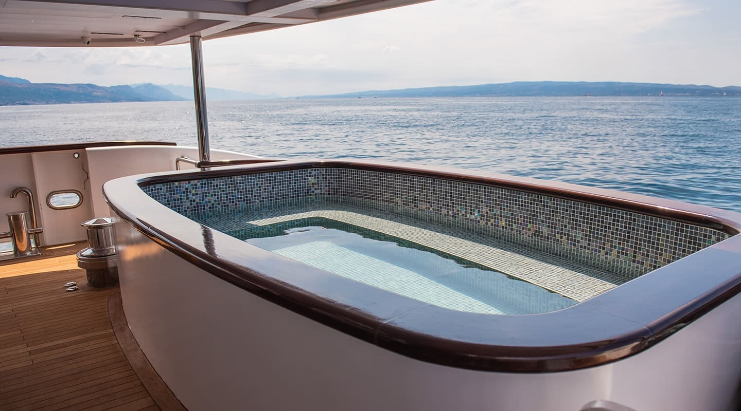 One of the most impressive special features of your Alfa Mario Yacht Charter would have to be the onboard cinema. There are also expansive spaces on the deck for sunbathing. In addition, the jacuzzi is the perfect location to soak in all the beautiful views.