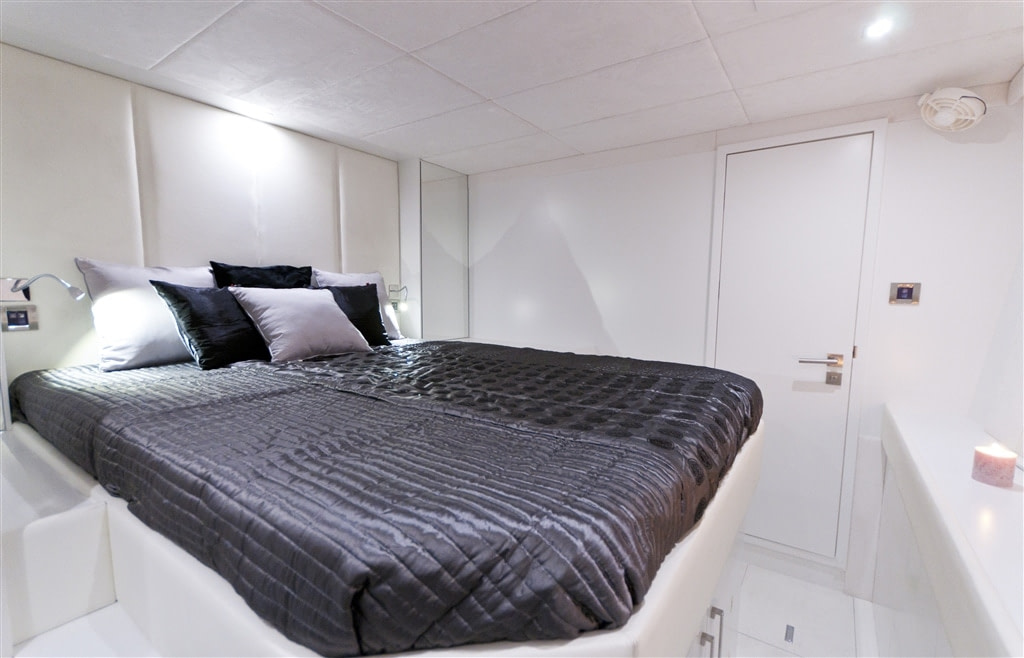 All View boasts a futuristic interior, creating a gorgeously tranquil on-board experience. The combination of the large 9.19m beam and the intelligent use of whites contributes to the satisfying feeling of spaciousness. The main deck is refreshingly open, with galley and dining area showcasing chic, contemporary finesse. 6 guests sleep in comfort in 3 cabins, 2 of which are divine master suites exhibiting queen sized beds, opulent designer linens and stunning en-suite bathrooms. The dedication to comfort continues in the guest suite, which further engrains the theme of minimalistic voguish allure that permeates the vessel.