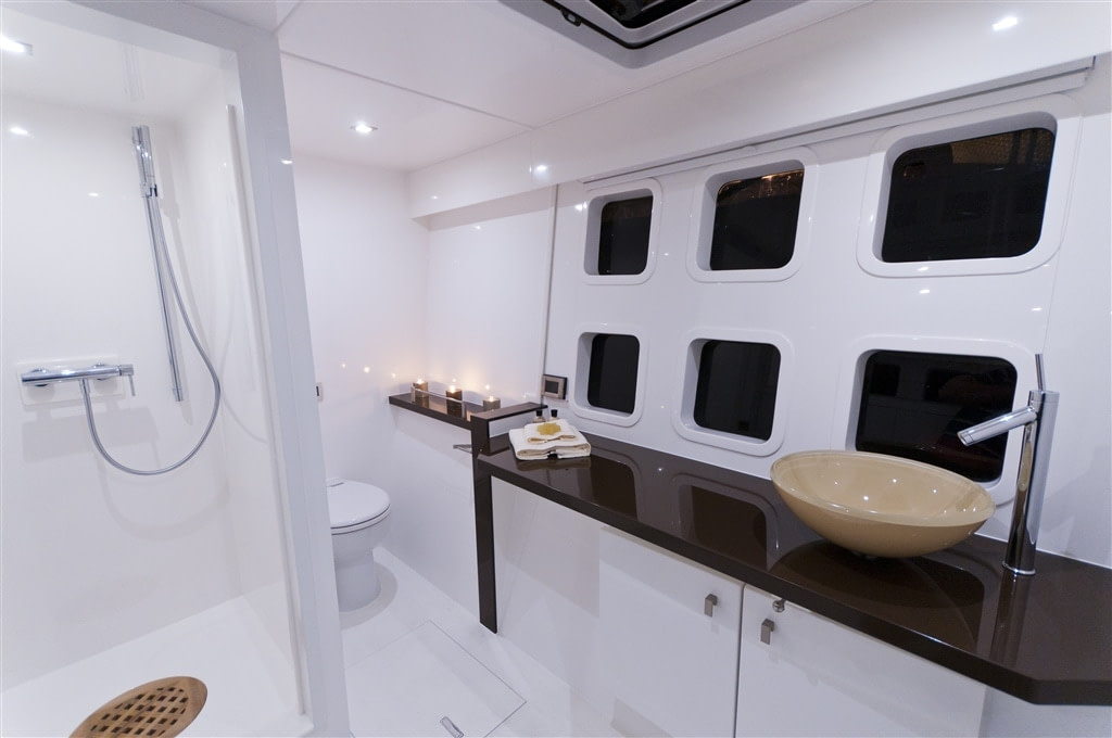 As if the therapeutic interior design wasn’t enough to coax your dreams of a luxury catamaran charter, the aft deck is sure to sweeten the deal. The aft deck is spacious and charming, with sun-loungers creating an idyllic space for sun-worshippers to achieve their dream of gently bronzed skin. Tasteful décor adds to the ambiance of the space, however the area transforms when the sun begins to set. Purple LED lights glitter, creating a truly surreal space to savour cocktails and culinary delights. This serene environment is ideal for wowing guests and ensuring that all on-board remain entertained.