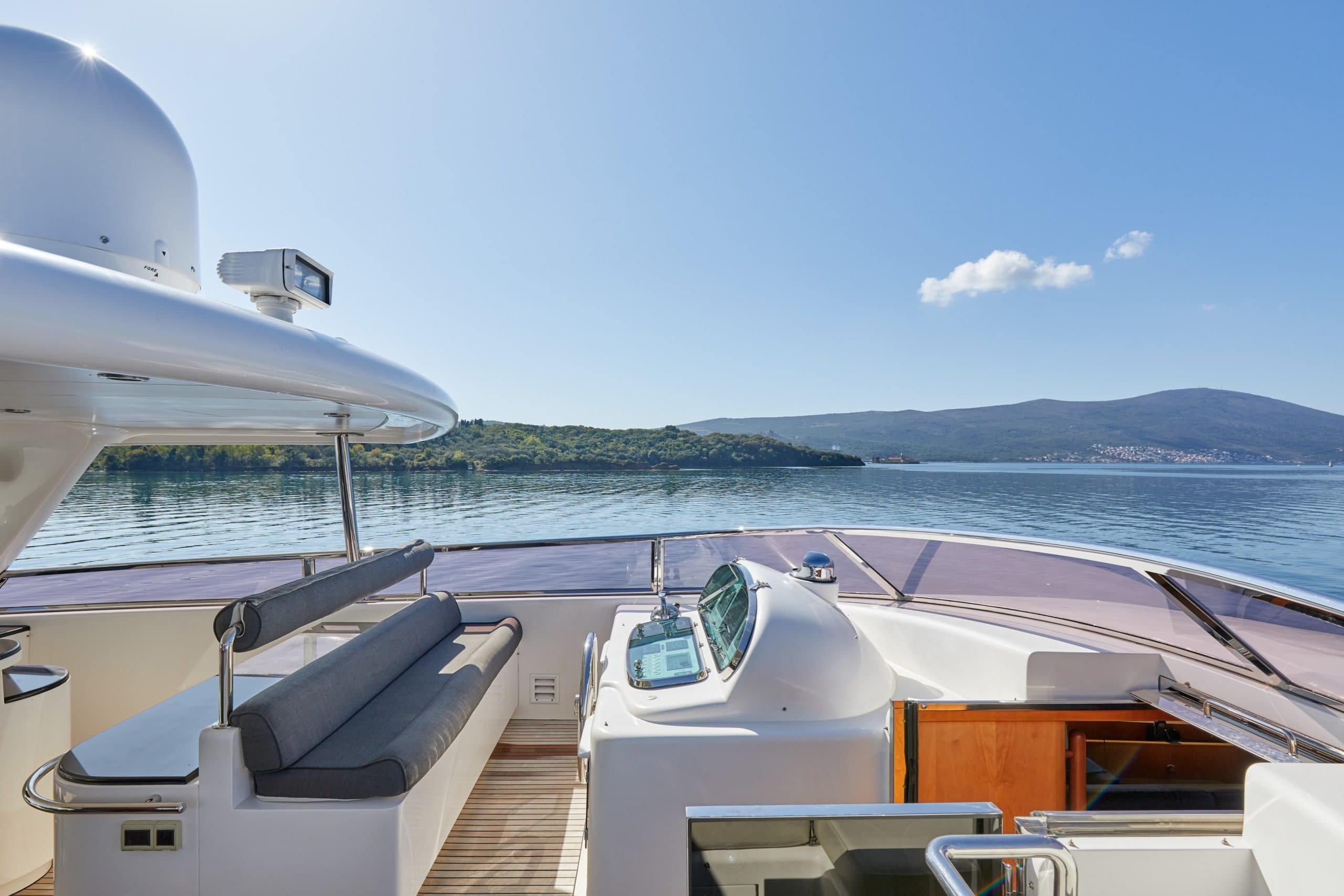 Built by renowned builders Horizon in 2009 and recently refitted in 2018 she is in high demand. Her exterior spaces are cleverly designed, creating multiple areas to relax in and let guests have the choice between sunbathing in the midday sun on the fore deck or taking shelter in the shade and having a drink at the bar or on her many comfortable couches. Her shaded aft area offers the ideal space for you and your guests to enjoy some alfresco dining. Just below there is a generous swim platform for diving into the clear East Med water and making the most of the water toys provided on board. Her sundeck is the real wow factor though, with a luxurious Jacuzzi, more sun pads for relaxing, a cocktail bar and more alfresco dining areas that are partially shaded.