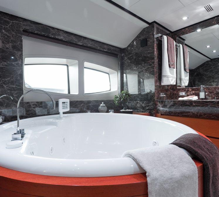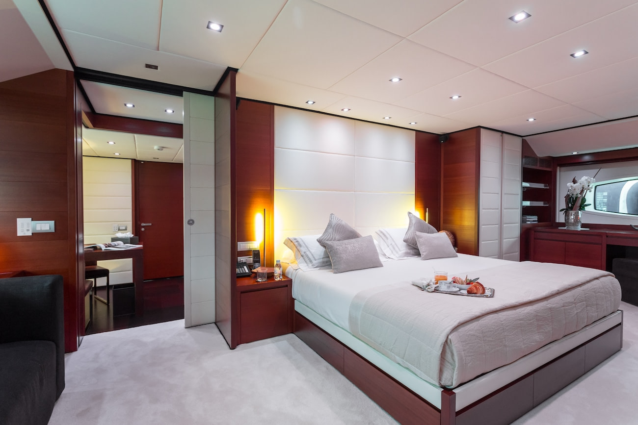For the more active guests, this Baglietto motor yacht charter will not let you down! The ‘beach club’ provides easy access to the azure blue waters. This comes in handy whether guests are wanting to take advantage of the snorkelling equipment on board, or the vast array of water toys. Included in this selection are two Yamaha wave runners as well as a 17 foot Novurania Equador tender. As well as water skis, a wakeboard and tubes. This promises to keep any guest entertained for hours on end!