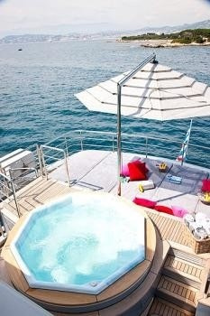 Annamia is a stunning 43 meter Baglietto motor yacht charter. This yacht has an abundance of space spread across a total of three incredibly stylish decks. The sun deck on board Annamia is one of many impressive features. In addition to numerous sunbeds and spots for guests to make the most of the warm summer sunshine. The deck also features a jacuzzi – the ultimate luxury allowing guests to fully unwind and relax. Also featuring on the sun deck is a sizeable dining table, for guests to enjoy a casual lunch whilst making the most of the sunshine. Last but certainly not least, is the bar on the sun deck. Where better for guests to have a drink than on this floating palace with 360 degree views of the picturesque surroundings.