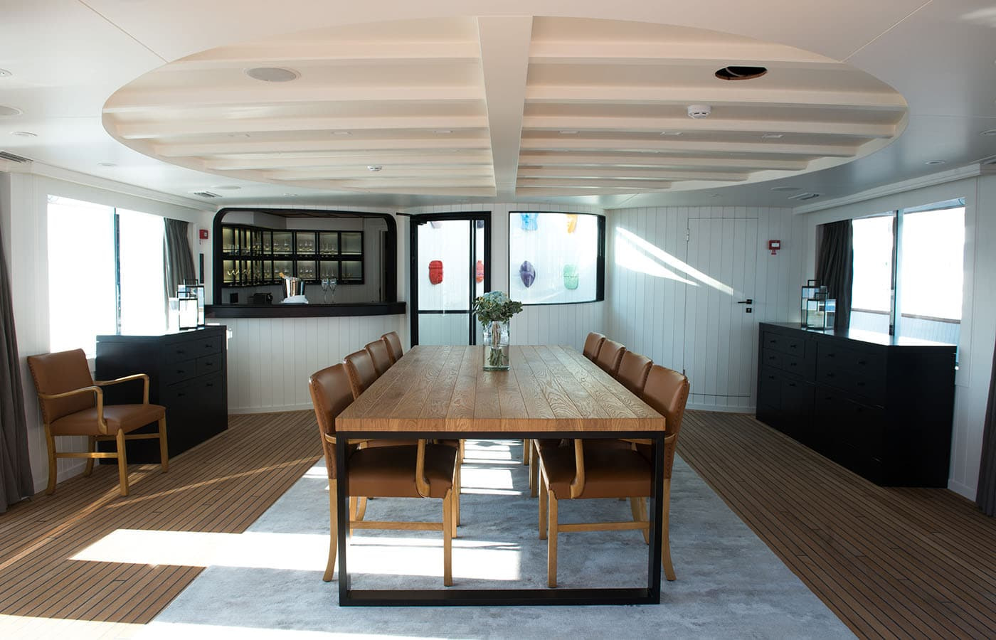 Menorca was built in 1961 but boasts a more refined and contemporary design than many brand-new yachts thanks to her impressive refit. She is the perfect mix of eternal elegance and modernity. On board there are four expansive decks creating some great entertainment spaces. The main deck has an exterior shaded dining area for guests to enjoy a wonderful meal prepared by the chef on board. Moving up to the bridge deck there is the choice of another larger dining area for larger parties.