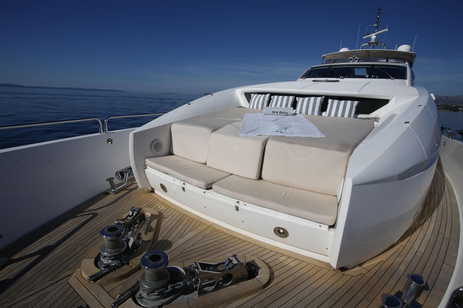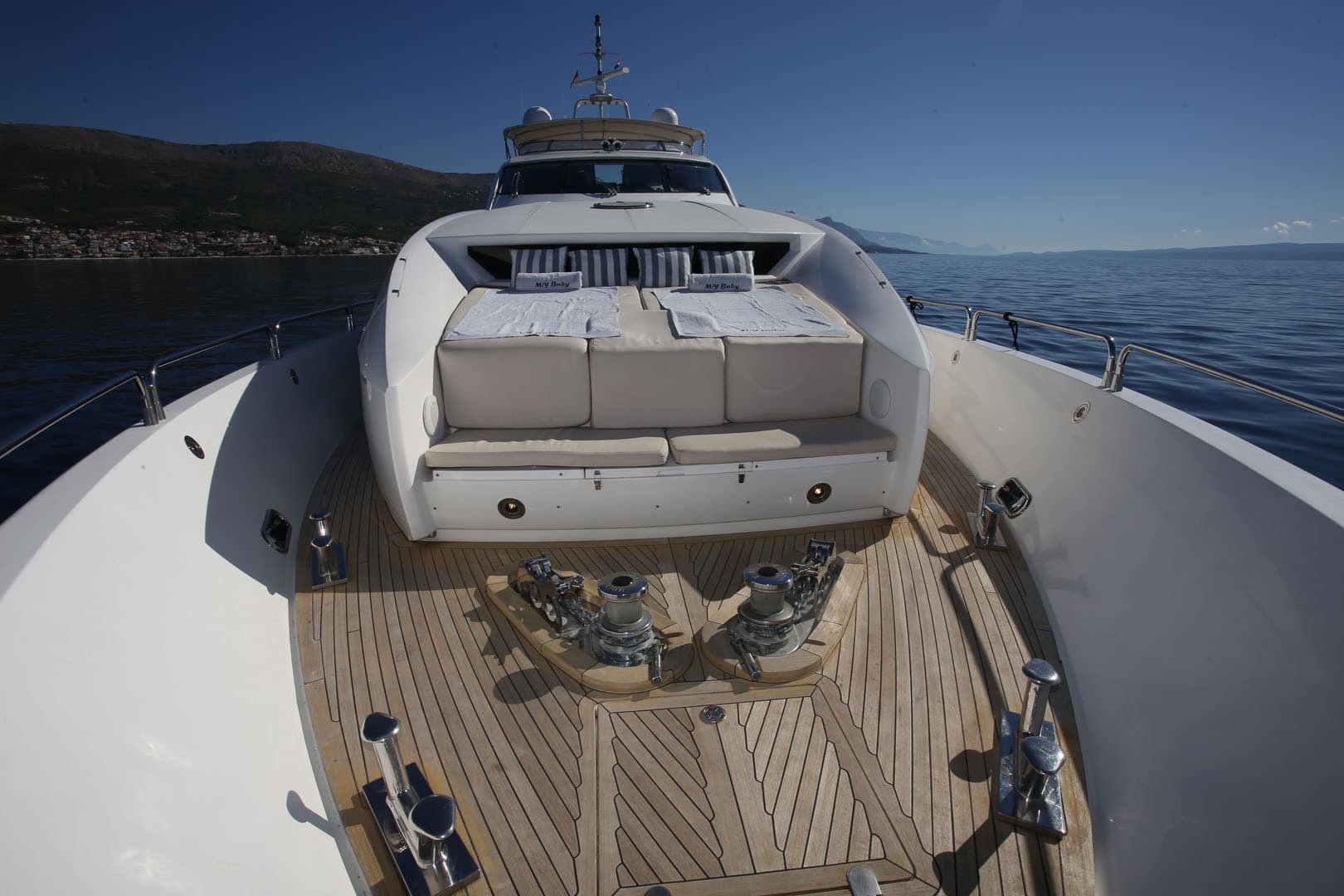 In terms of power, BABY I is equipped with 2 MTU Marine Diesel 2000 Horsepower engines and two 40kW generators allowing this 30-meter Croatian yacht to achieve a cruising speed of 18 knots an hour with a max speed of 28 knots an hour. This provides a pleasant and laid-back cruise to truly absorb and appreciate the stunning Mediterranean views and gorgeous coastlines.