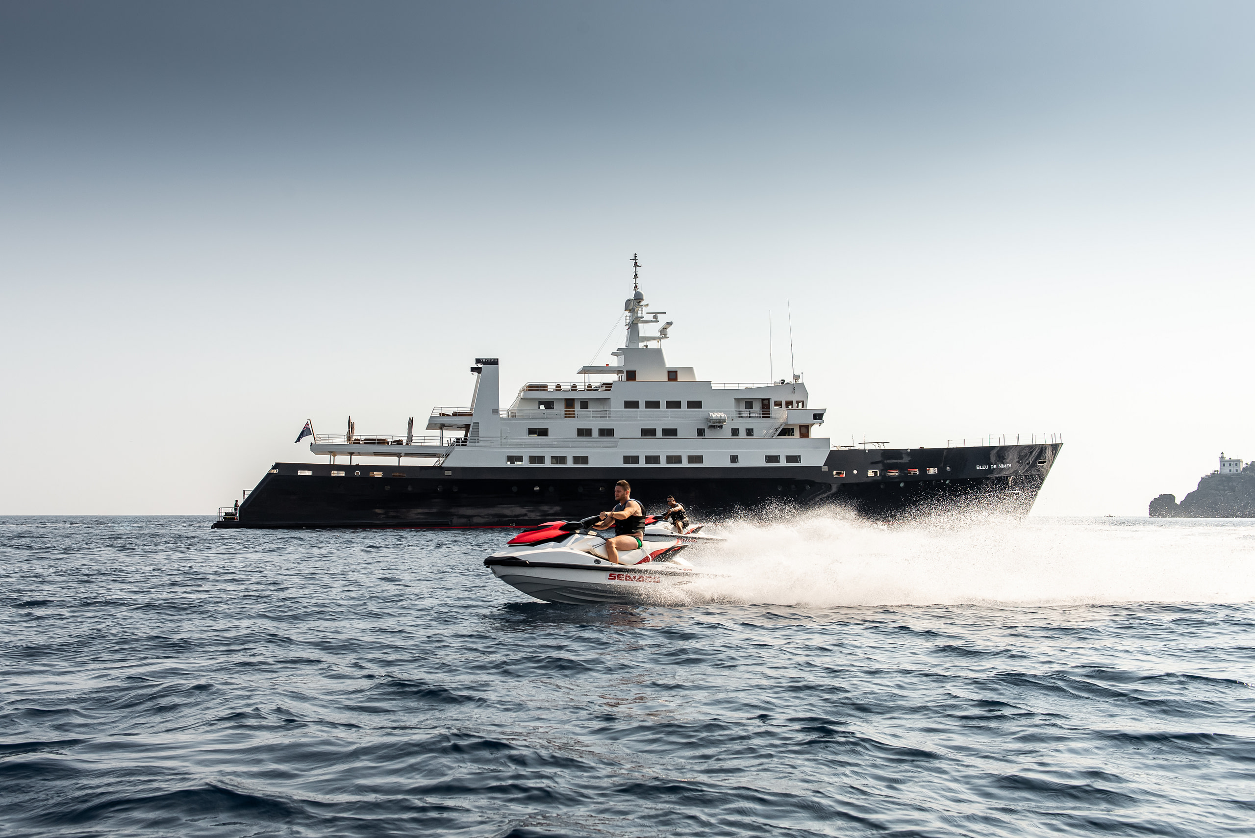 A British Royal Navy degaussing vessel turned luxury family explorer yacht, this BLEU DE NIMES yacht charter is a unique 72m luxury superyacht known for its long-range cruising capabilities and luxury amenities. BLEU DE NIMES was built with passion in 1980 and was recently refitted in 2020. This impressive superyacht has stood the test of time and for good reason. This yacht has a capacity of 28 guests in 13 cabins. With an experienced crew of Captain + 22, this BLEU DE NIMES yacht charter ensures the highest standard of service to every single guest. An elevator between all 6 decks makes this yacht family, child and elderly friendly. Equipped with 5 tenders, all of your guests can be transported to and from beaches and ports at will, never having to wait for everyone to be ready. Additionally, a fully equipped gym, sauna, 2 jacuzzis, and massage room ensure your wellness needs are covered throughout your charter. BLEU DE NIMES is also ideal for yacht event charters. What more could you ask for?