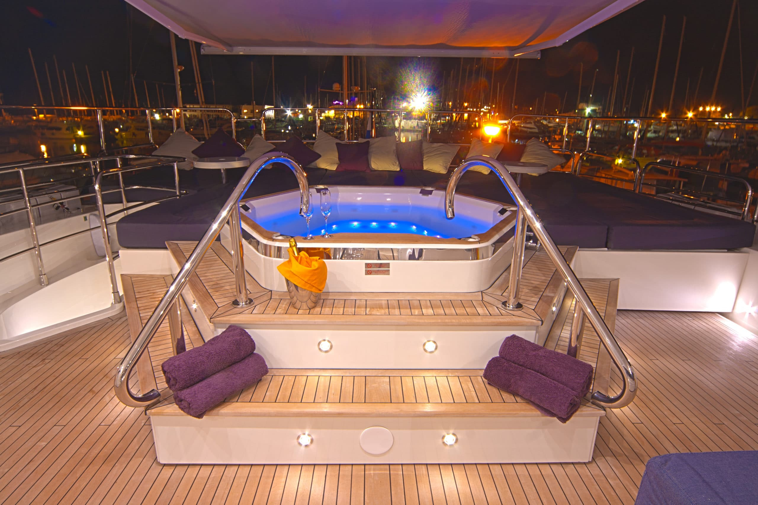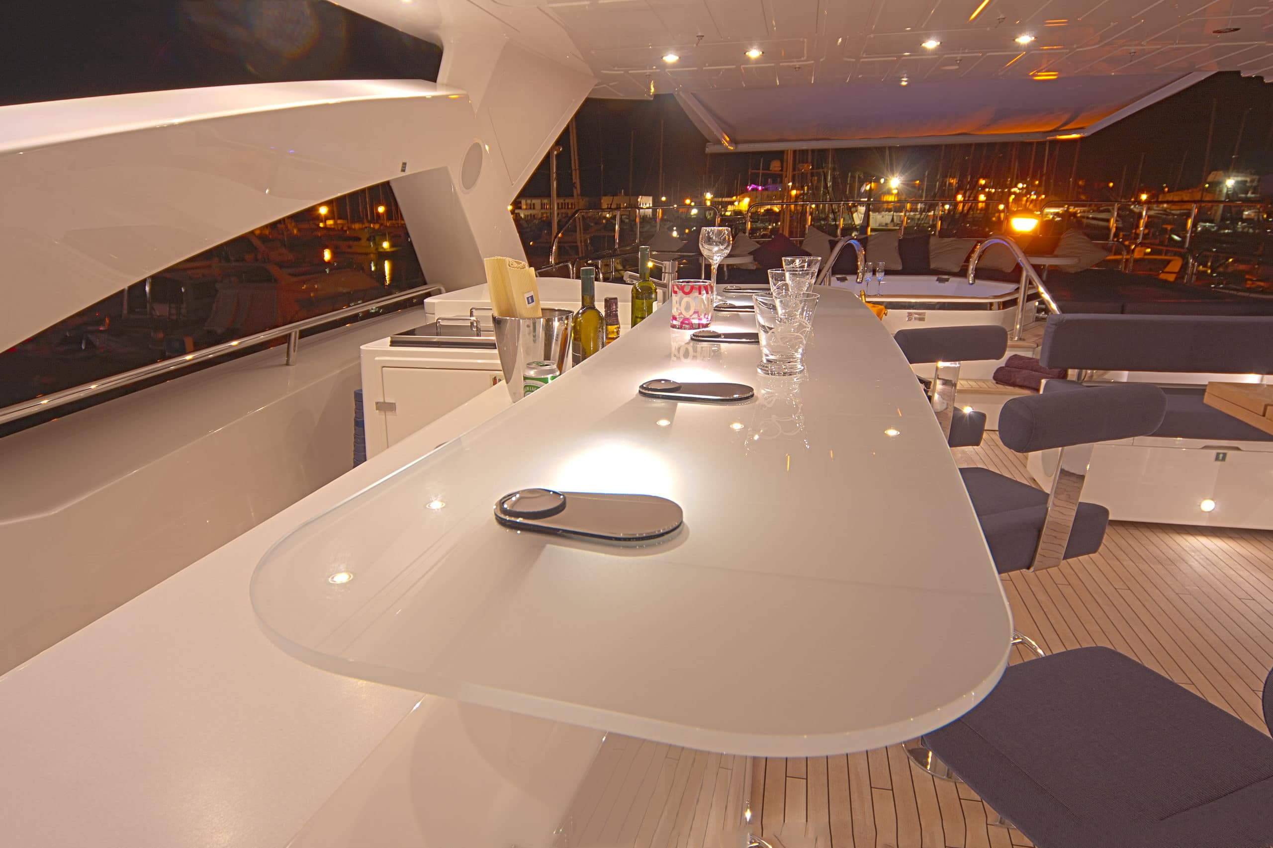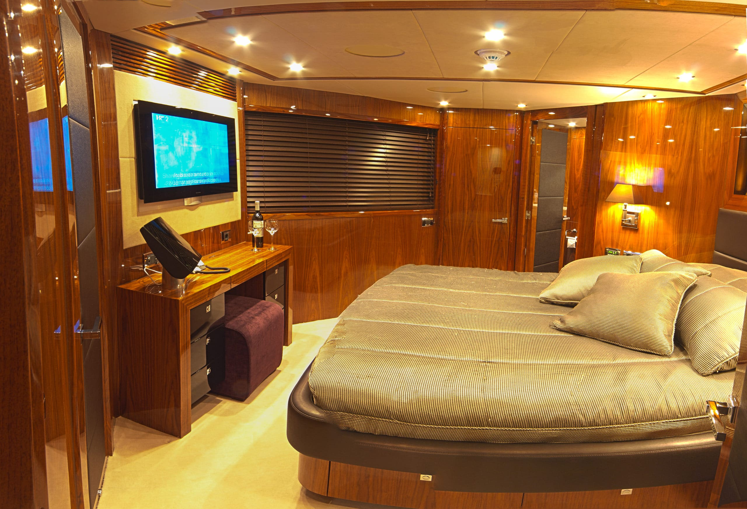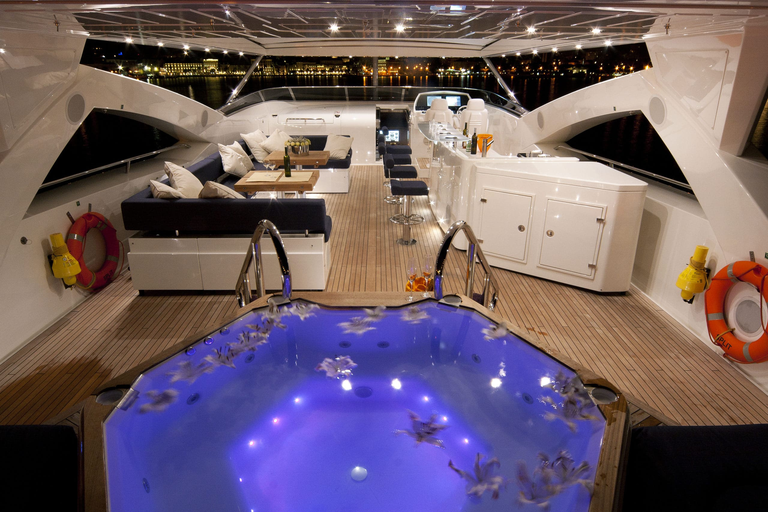 The cockpit of this Sunseeker UK yacht is a real focal point, fully equipped with a bar, sunbeds, generous sofa space and a magnificent Jacuzzi CASSIOPEIA is perfect for relaxing, bathing in the glorious in the glorious sun or soaking in the gorgeous scenery while cruising the coastlines of Croatia, Montenegro or Venice. All of this while making full use of the on board BBQ and completing your cookout sipping on a cocktail or refreshing beverage at the sundeck dining table that members of staff would be delighted to prepare for guests upon request, what could be better??