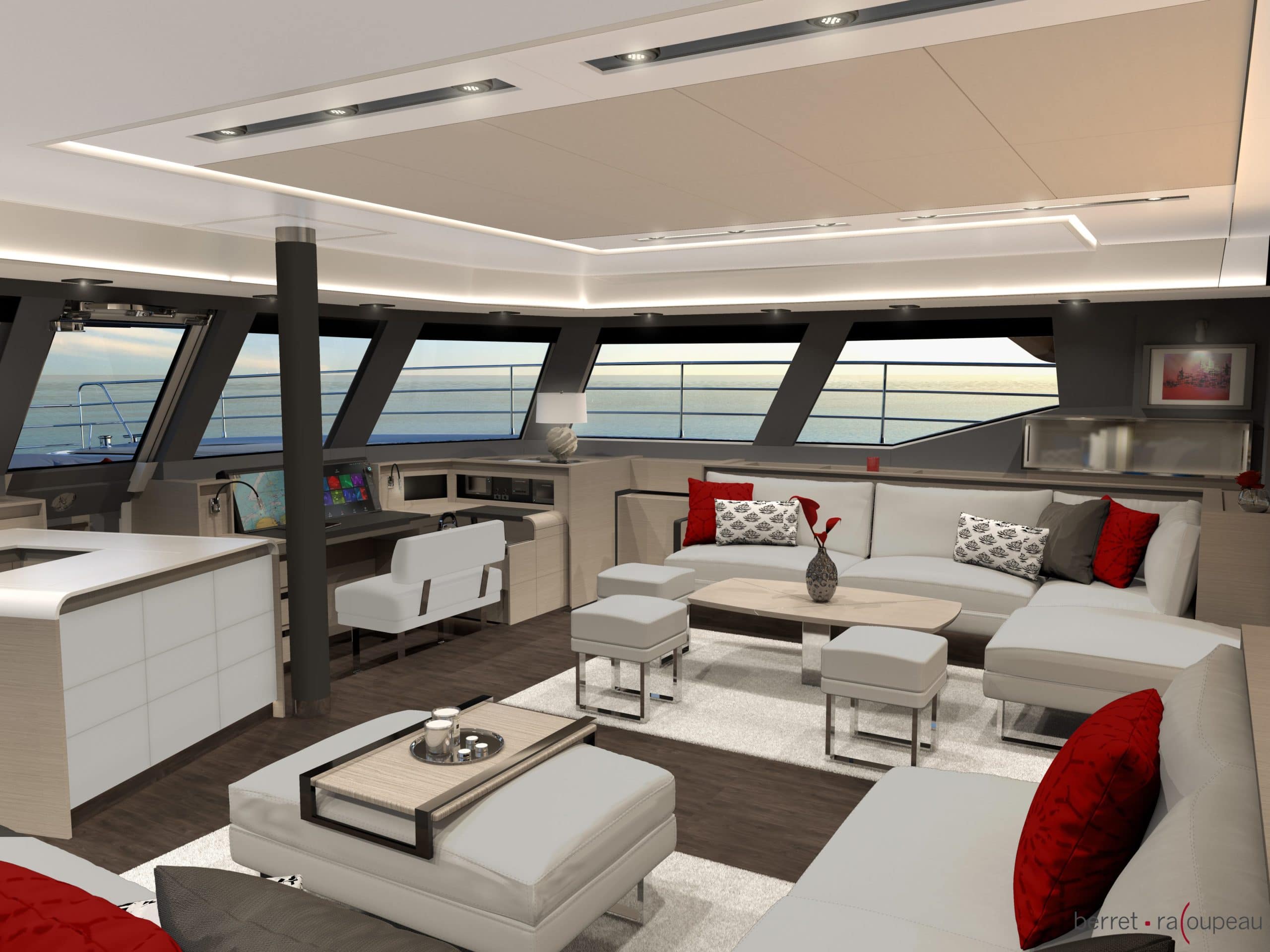 The Power 67 Catamaran could be mistaken for a 5 star hotel due to it’s amazing interior decor which is luxurious and well-thought designed by world-class professionals. For example, the owner’s cabin is actually an apartment of 22m2, completely separate with a dressing room and sofa. It offers a twin bathroom with a luxurious walk-in shower. Extravagance, comfort and convenience are nothing without the gift of privacy, hence, an exclusive door to the front Cockpit provides convenient exterior access.