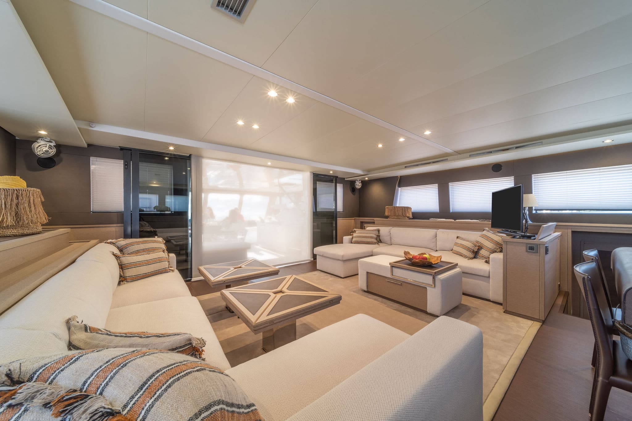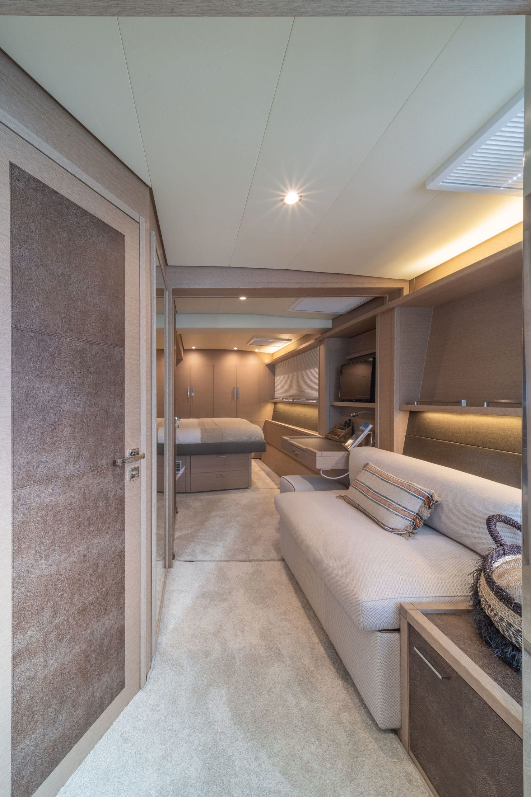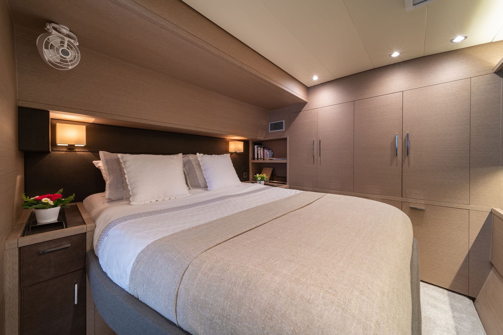 The hard-top fly bridge is the ideal gathering spot, chill out with the family while feeling the wind in your hair. The large, open aft is an ideal space for alfresco dining and champagne toasts at the bar area. Why not complete your luxury dining experience by making use of her very own on-board wine cellar. She certainly is the 5 star package.