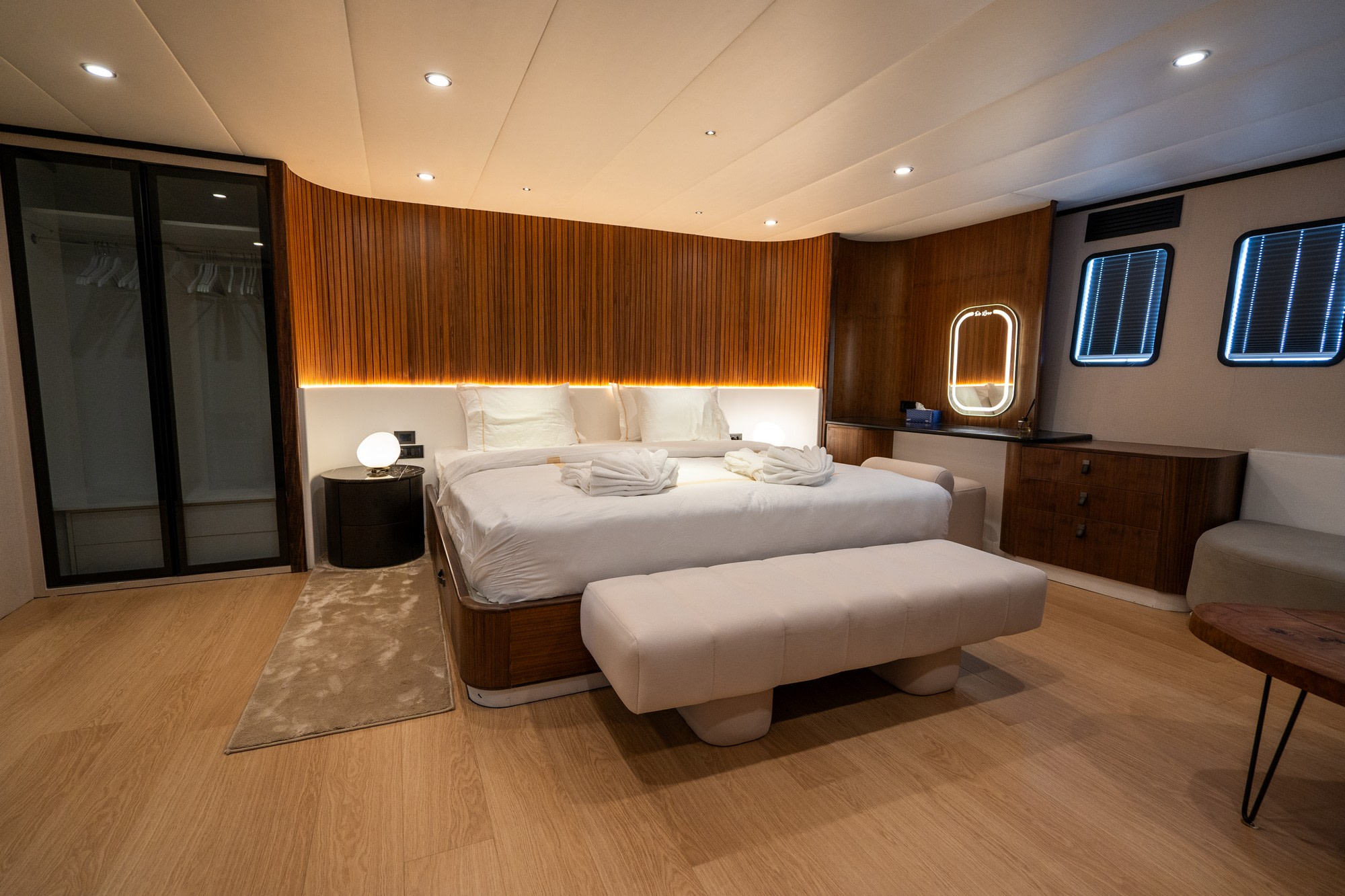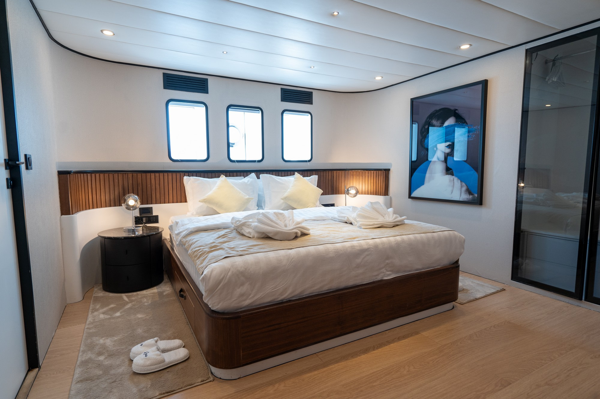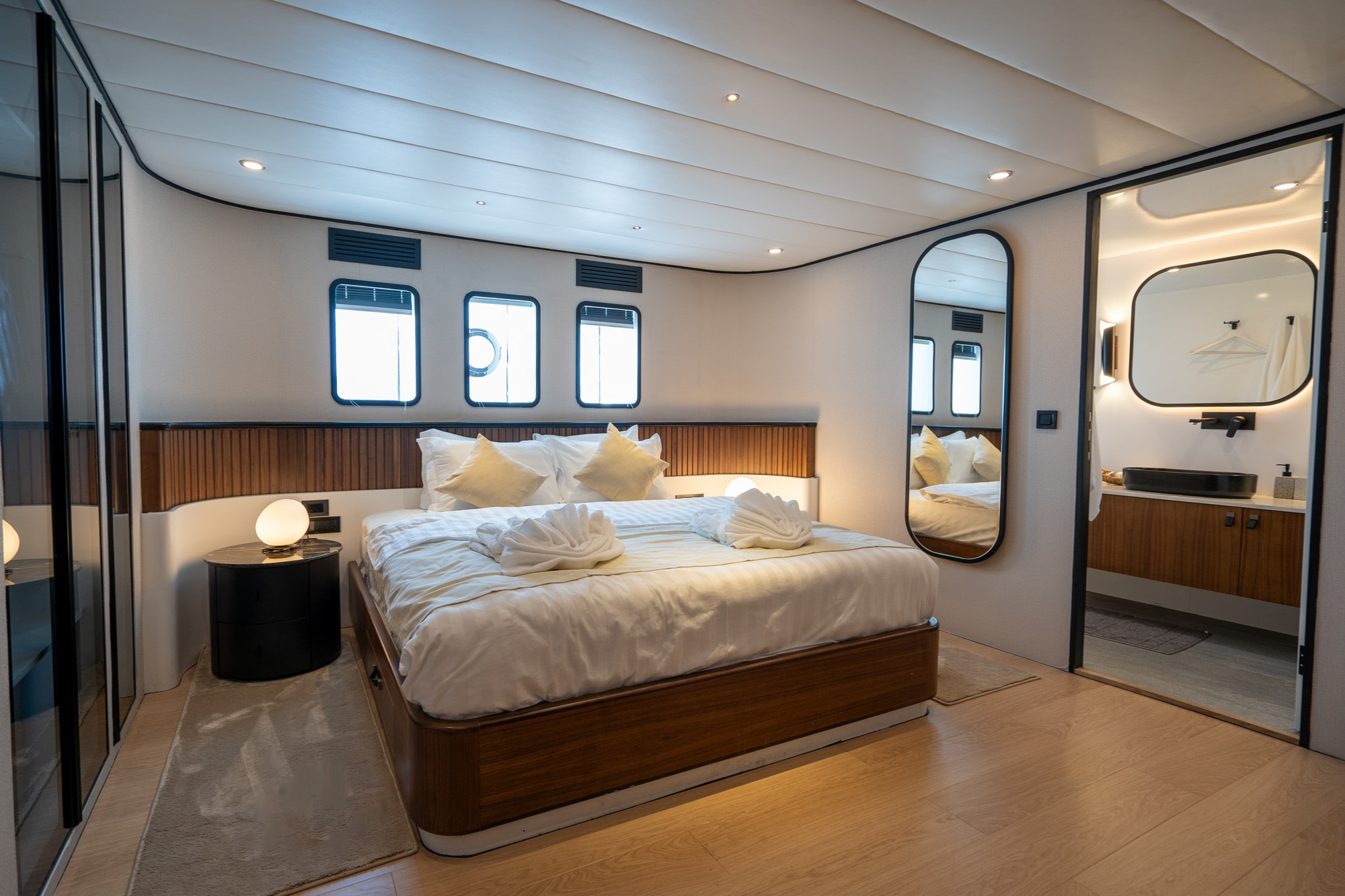 Built in 2024, DE LOVE is an excellent superyacht in the luxury charter market. She is the perfect example of the new concept of the luxury yacht for big groups. A DE LOVE yacht charter offers a blend of classic gulet design and modern luxury. At 47m/154’2″ in length, she provides ample space for relaxation and entertainment. She can comfortably accommodate up to 14 guests across 7 cabins. With 8 dedicated crew, you can expect top-notch service throughout your charter.