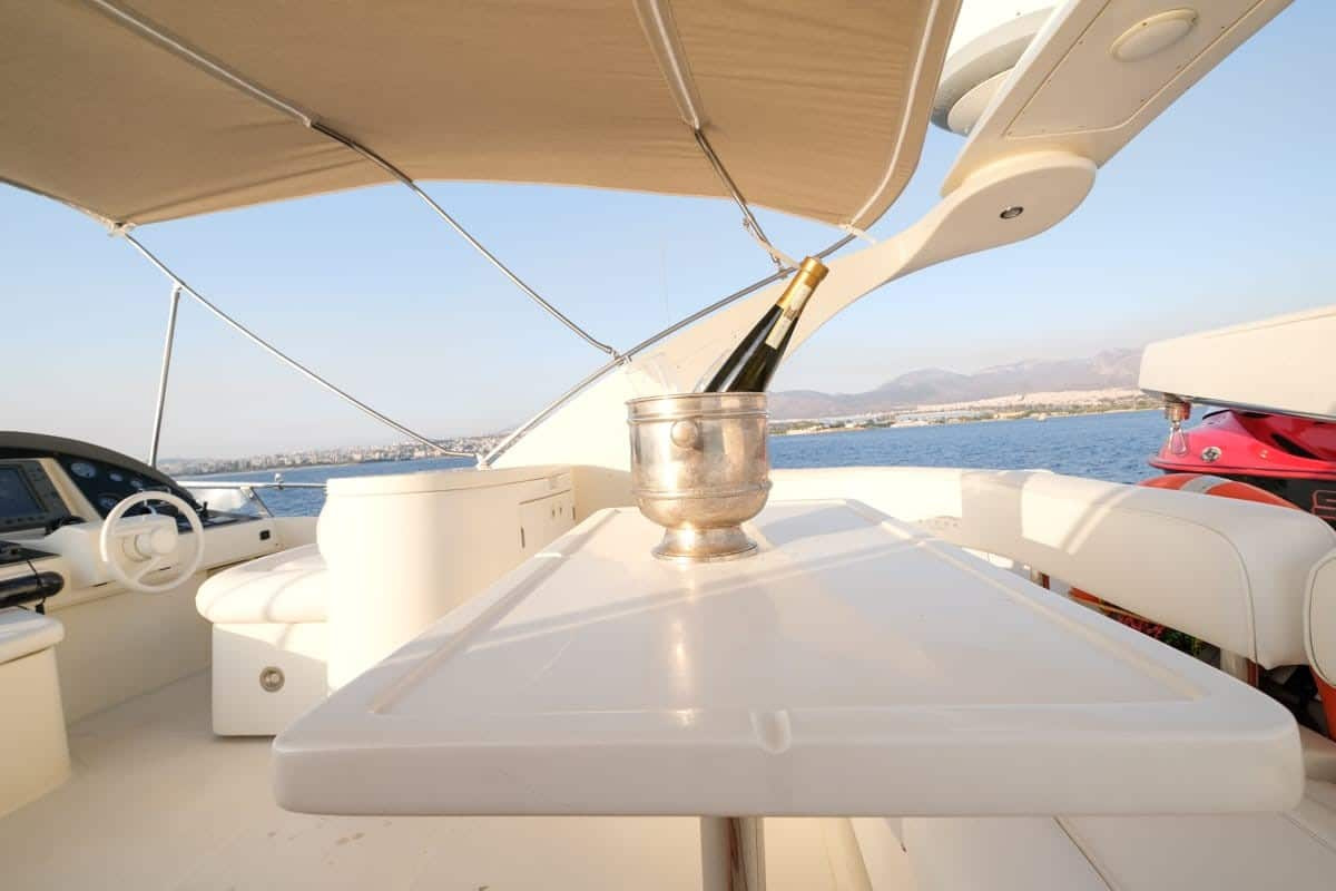 Standing at 20.5 metres NOE makes superb use of its interior and exterior spaces. There is a gorgeous sunbathing area at the bow. Which is ideal for lying out with your guests and basking in the Mediterranean sunshine. At night guests like to sit out on with a bottle of wine and a charcuterie board to watch the sun set over the Greek coastline. There is also a shaded seating area on the upper deck if you’re looking for a break from the sunshine or the kids are in need of some shade. This elevated viewpoint serves as an excellent vantage point to appreciate the stunning surrounding scenery.