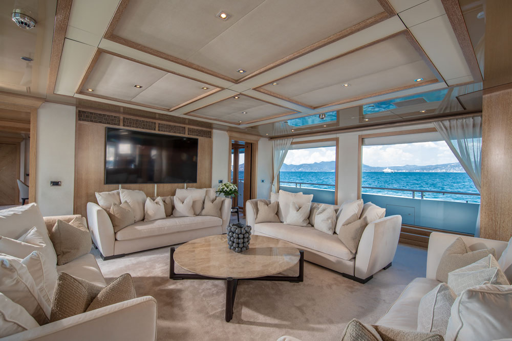 FRIENDSHIP offers charter guests a pedigree built by renowned Dutch shipyard Oceanco, known for delivering some of the world’s finest luxury yachts. Certainly her strong steel hull and aluminium superstructure ensure a safe, smooth cruising experience even on long passages. That is to say, reaching a top speed of 16 knots and carrying 227,000 litres of fuel, FRIENDSHIP is well suited for extended Mediterranean yacht charters and beyond. Moreover, her floor to ceiling glass throughout the living areas give an open and airy luxury experience.