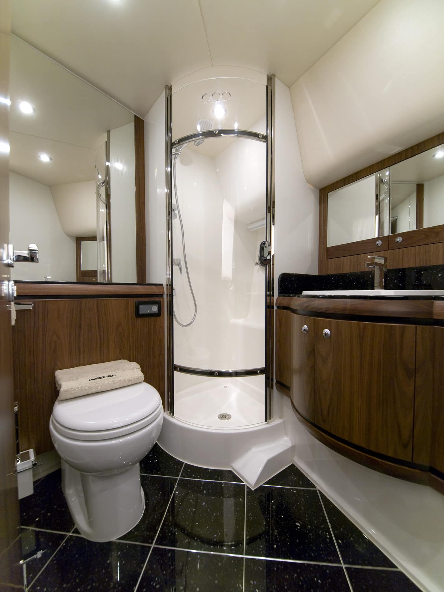 With two gorgeous double cabins and a twin cabin, 6 guests sleep in comfort on-board Harvest Moon. Fitted with majestic teak, almond upholstery and mocha coloured detailing, these cabins are stunning spaces with a truly elegant feel. 3 spacious bathrooms are also found on-board, sharing the contemporary feel that permeates this superyacht to charter.