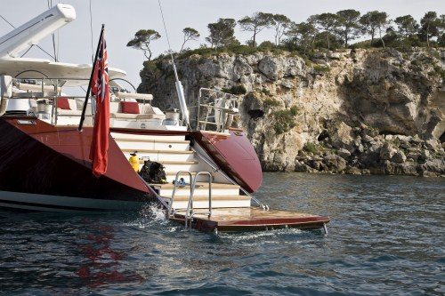 If watertoys are a core component of your Ibiza sailing yacht charter, then Ludynosa.G will impress. She carries a great selection of watertoys. This includes waterskis and wakeboard to be towed by the new (2015) 100 hp tender, inflatables, stand-up paddles boards and snorkelling gear. She even carries fishing gear.