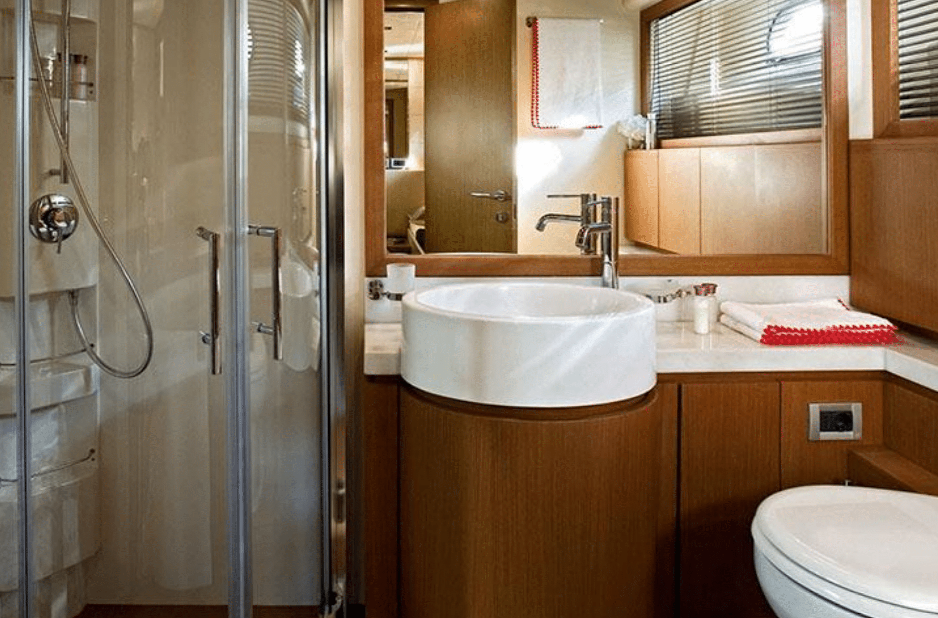 To further add to guest comfort on-board, each cabin has an ensuite with a shower. A crew cabin ensures privacy for guests on this yacht charter Italy.