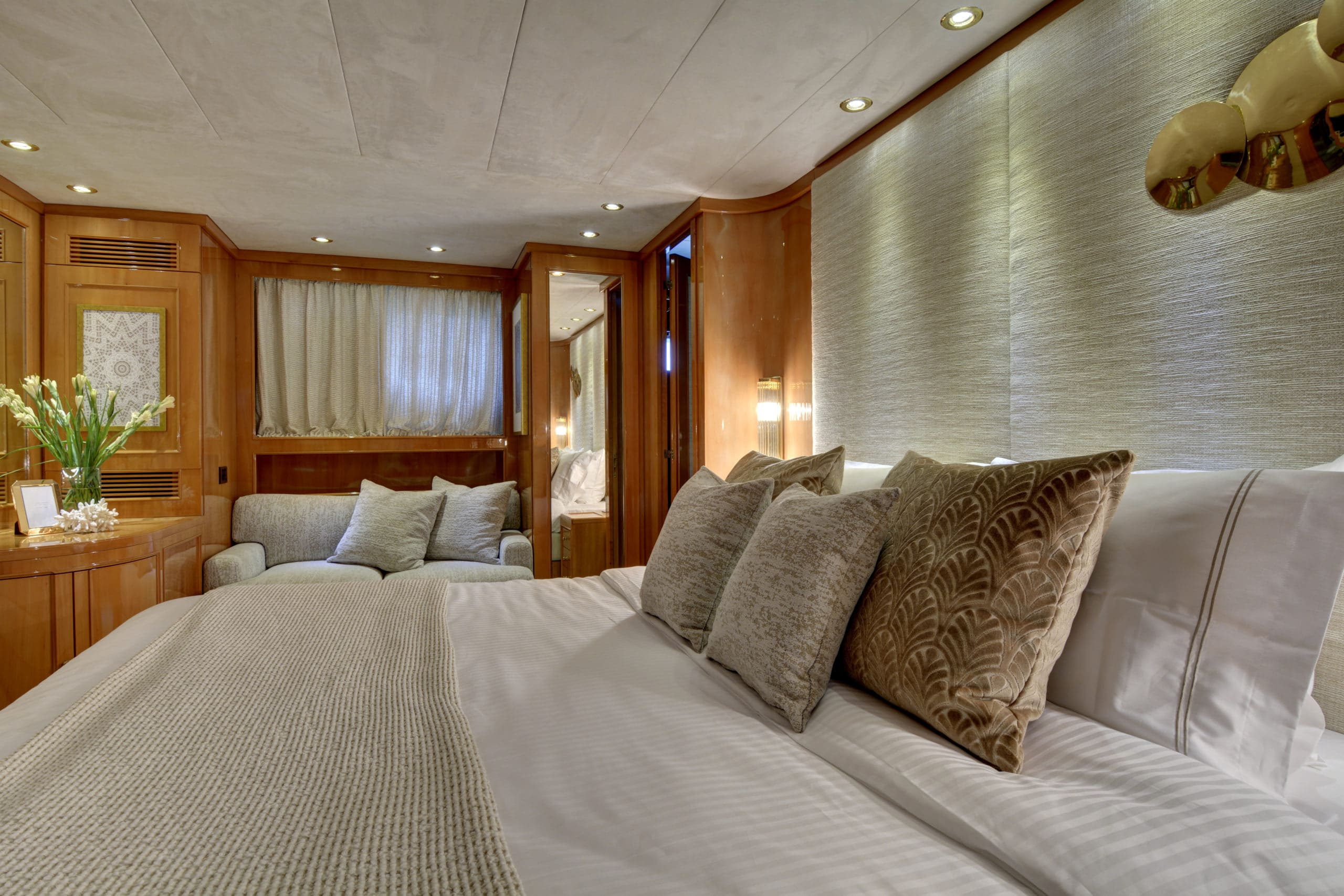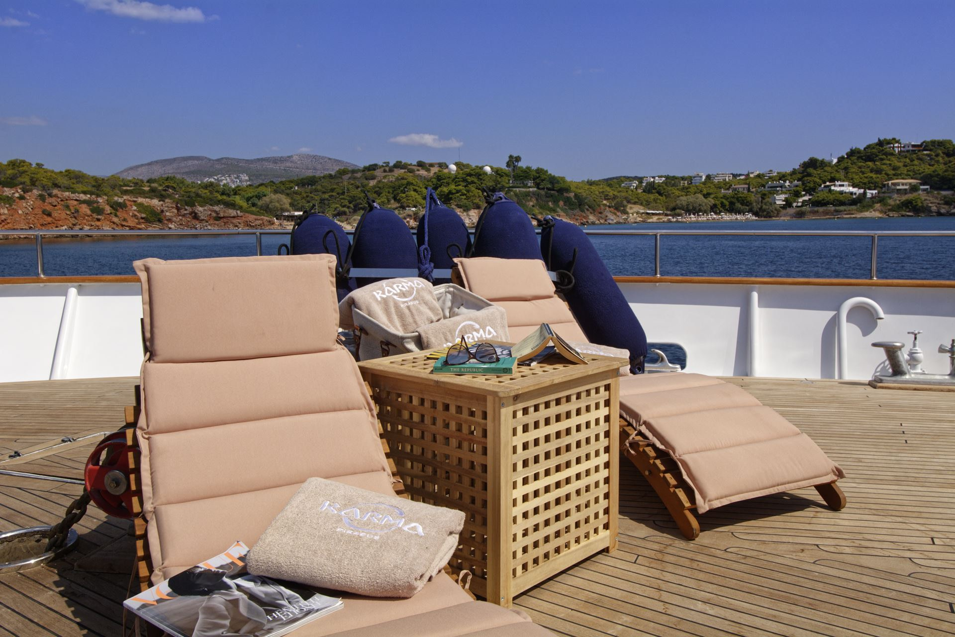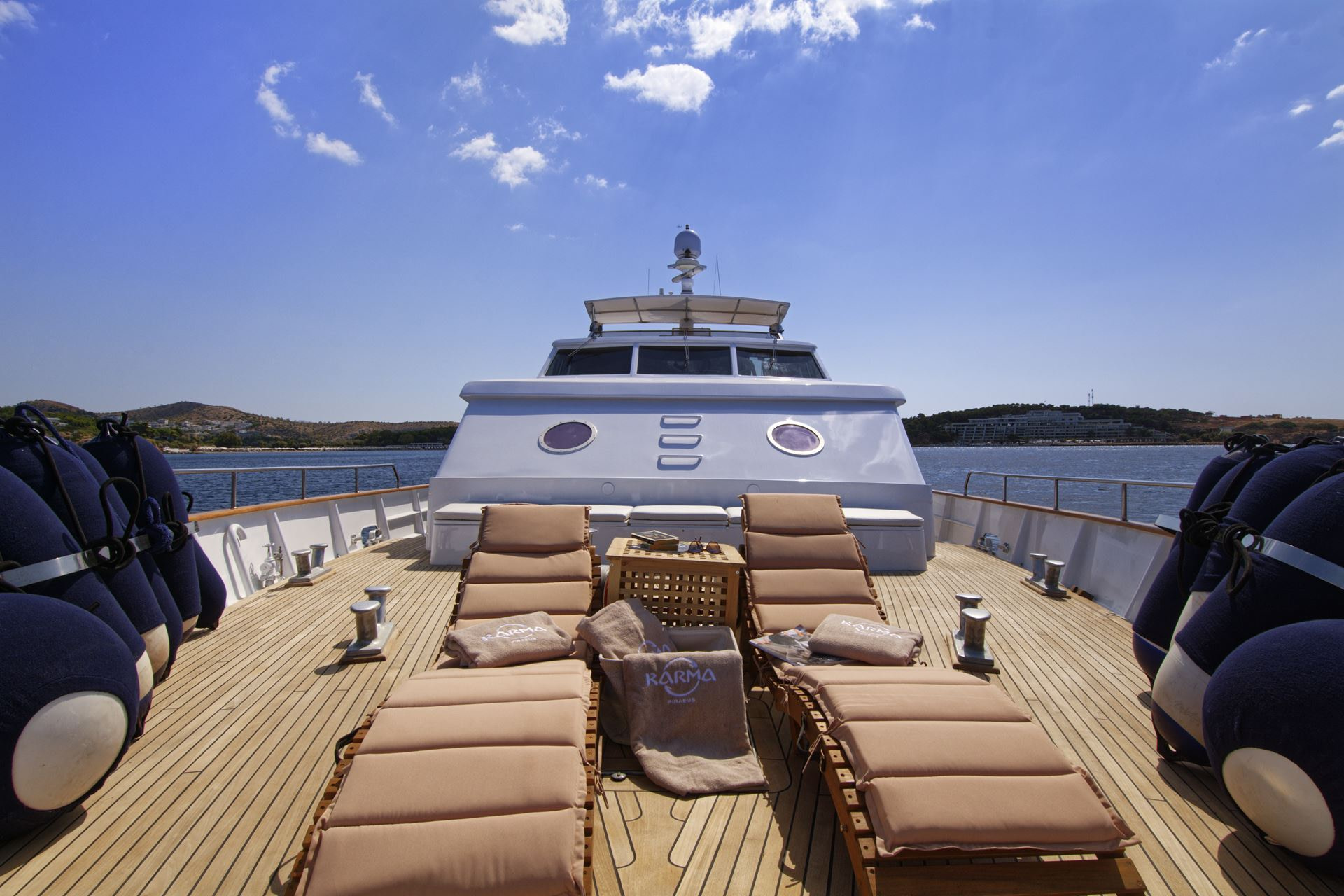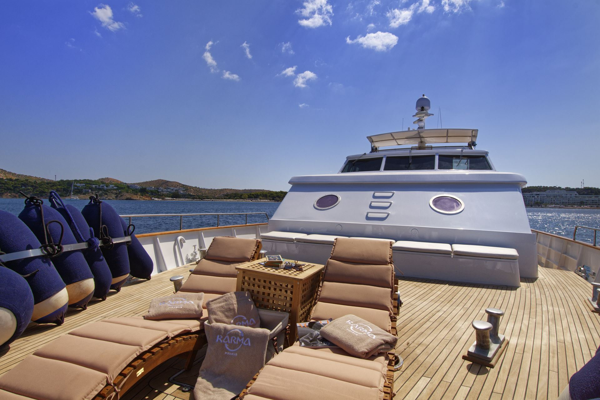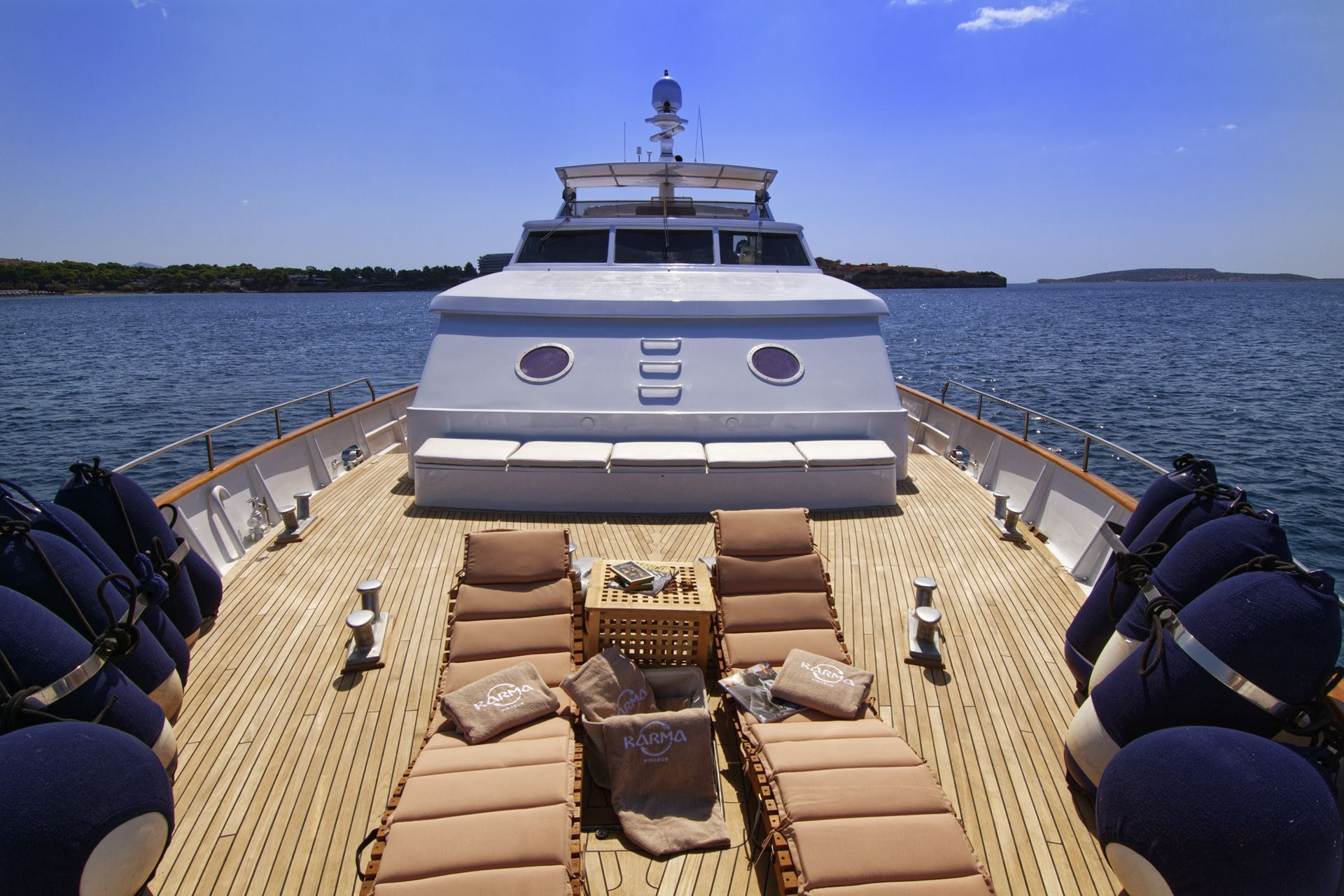 Finally, as if there were not enough outside space, this Karma motor yacht Greece boasts a stunning swim platform with space and seating for guests to enjoy a nice book whilst dipping their feet in the beautifully refreshing sea.