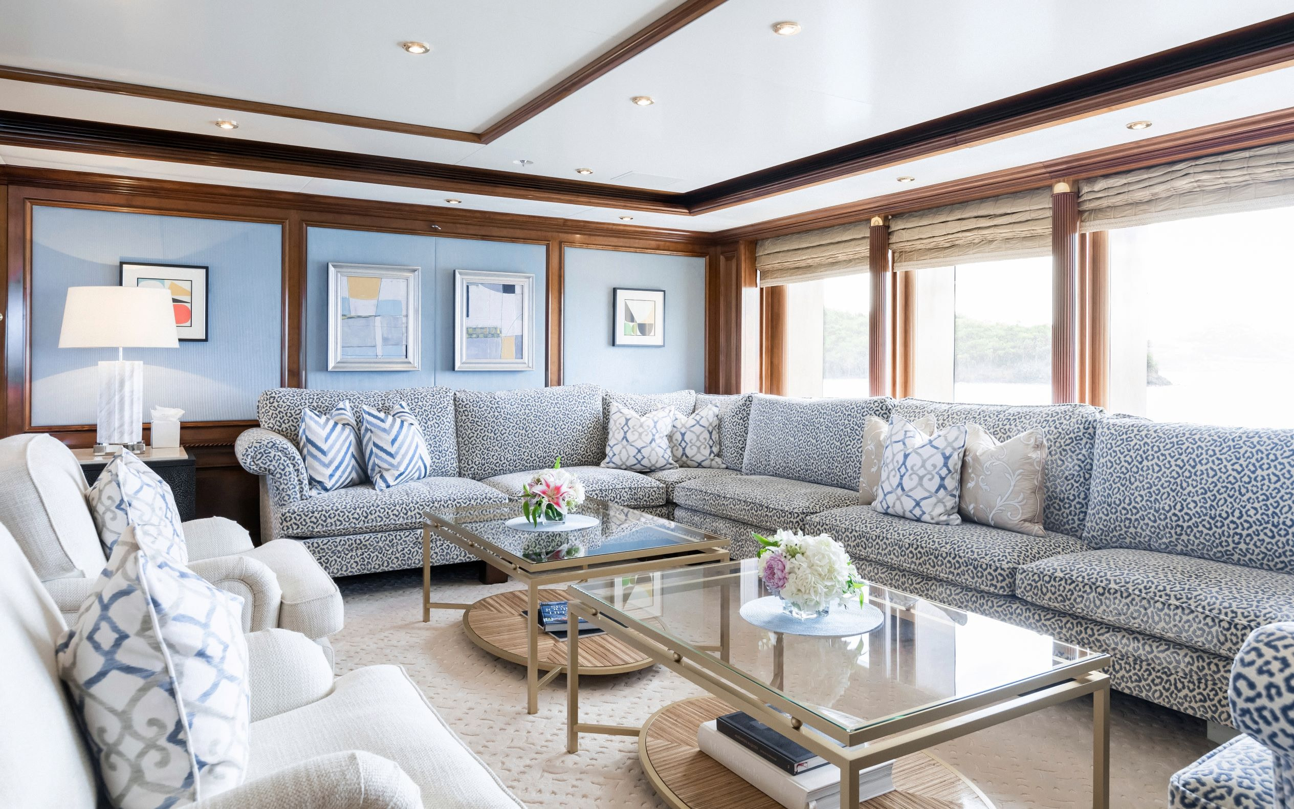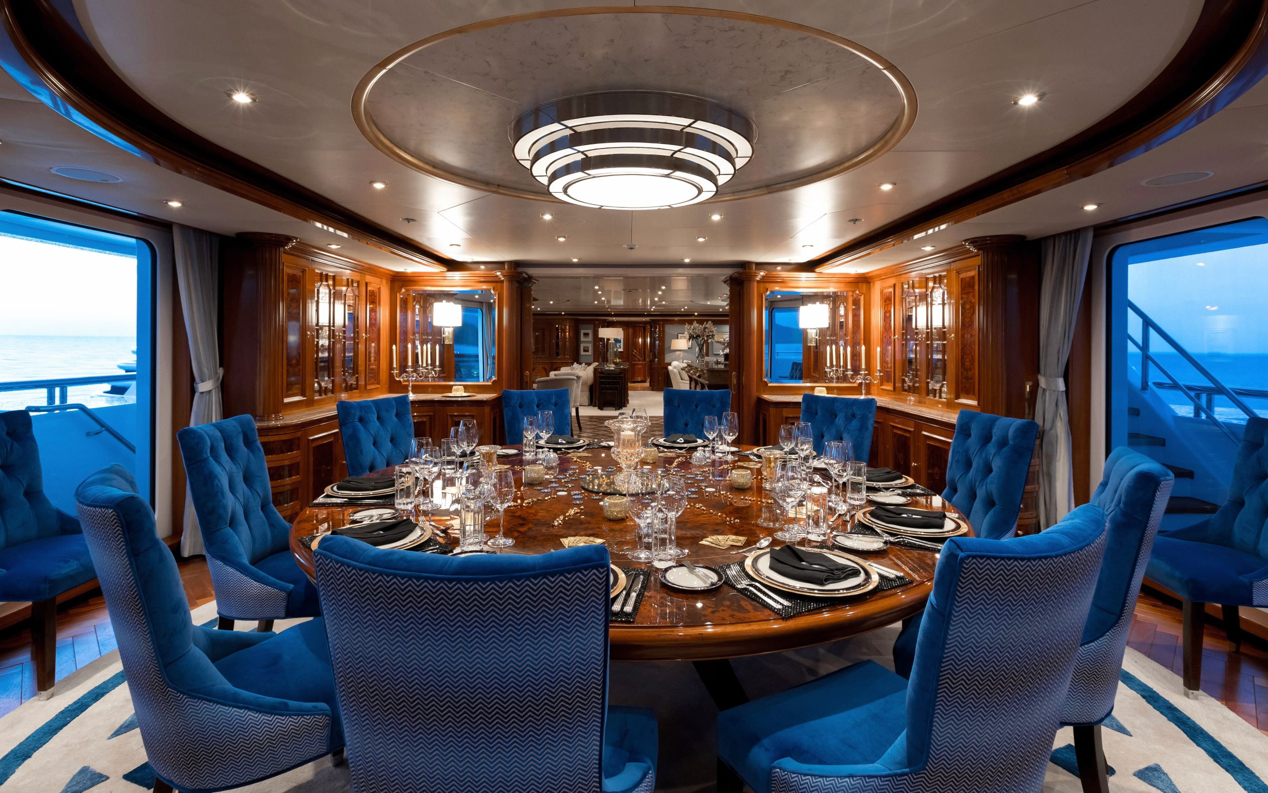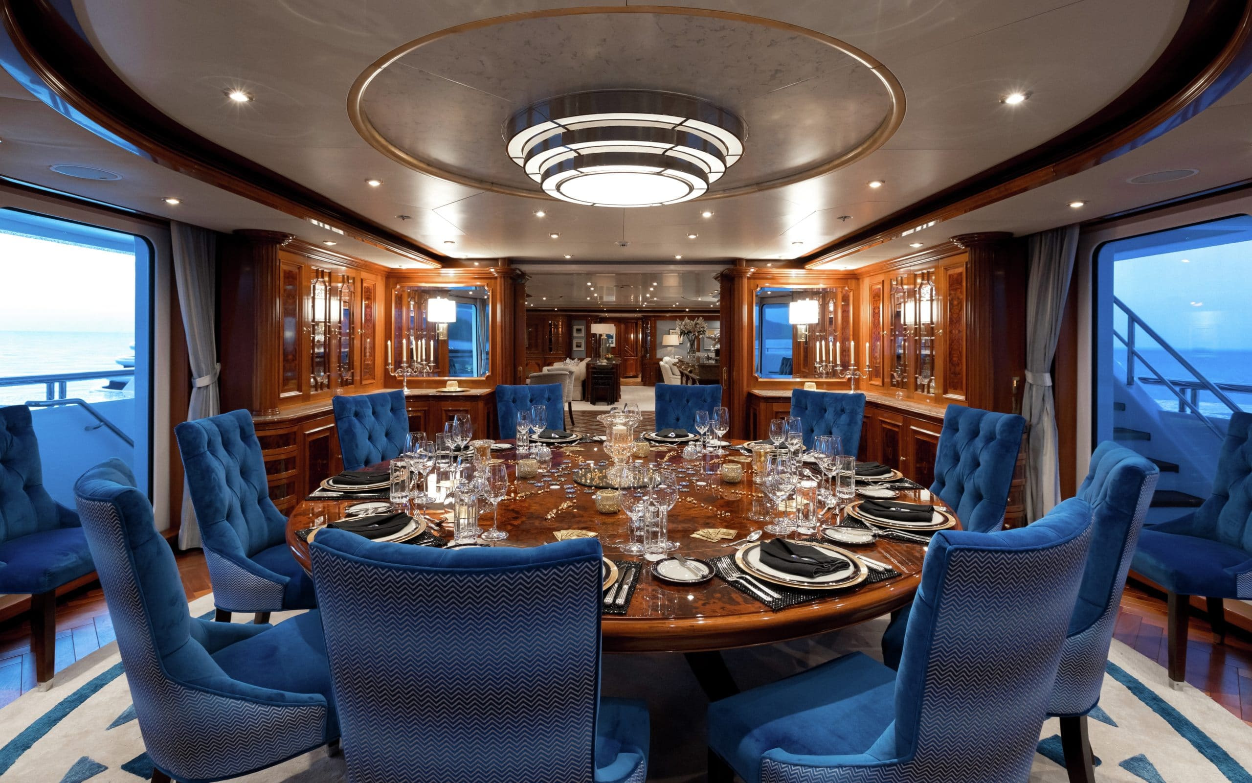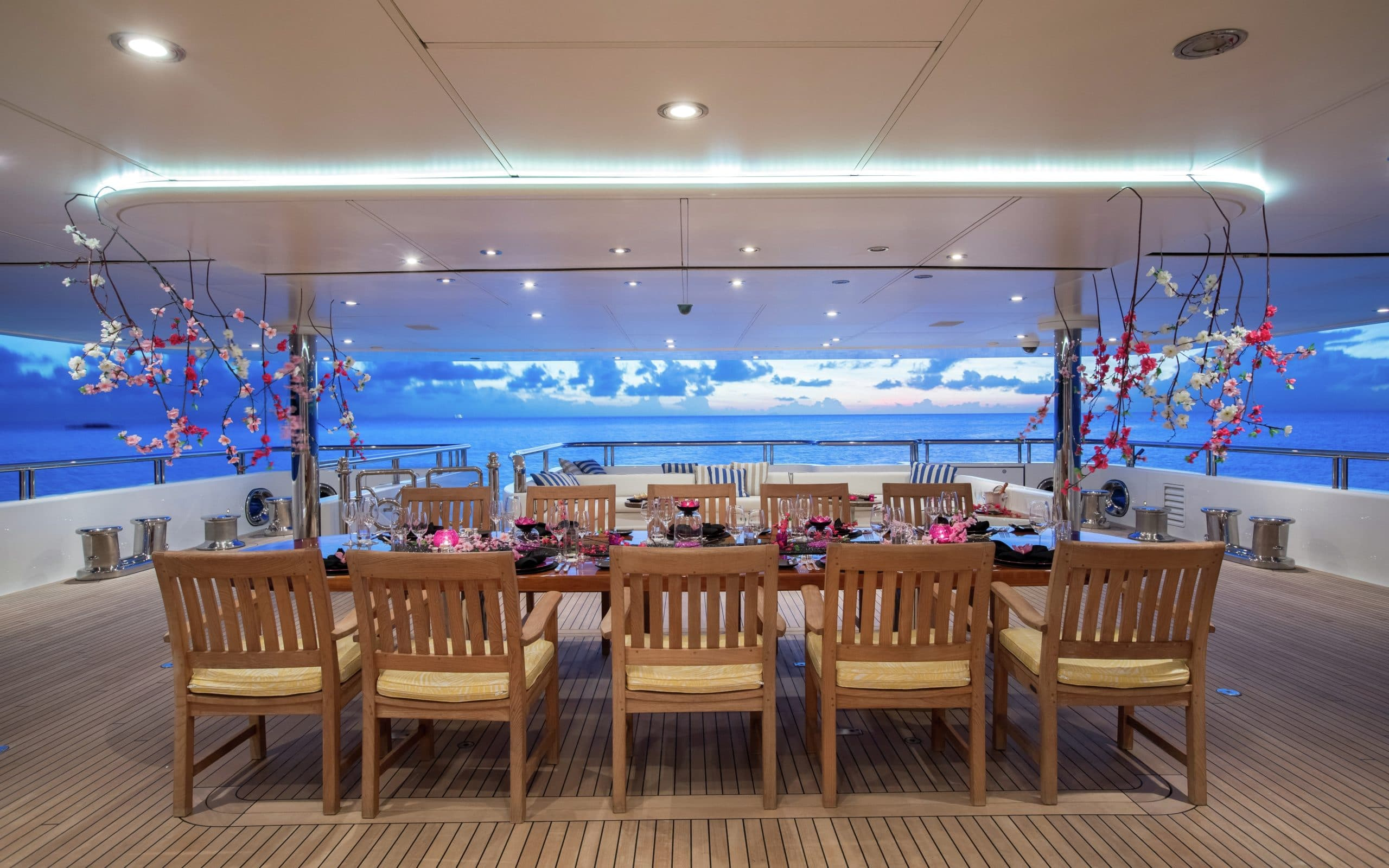 The stunning interior of Titania is the work of interior designer Zuretti. Every last detail has been carefully considered and as a result the overall atmosphere is one of luxury and indulgence. The main saloon is beautifully laid out and boasts a grand piano, making it a perfect place for entertaining guests in the evening. On board there are also two interior dining areas, both elegantly decorated and a sky lounge with breath taking views.