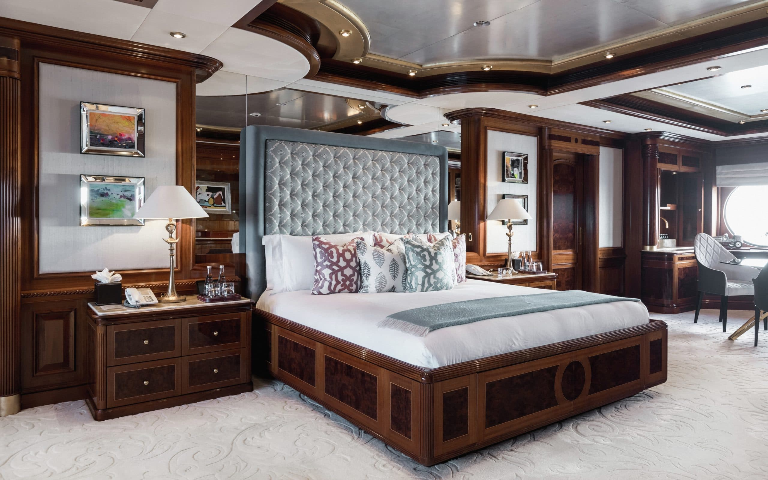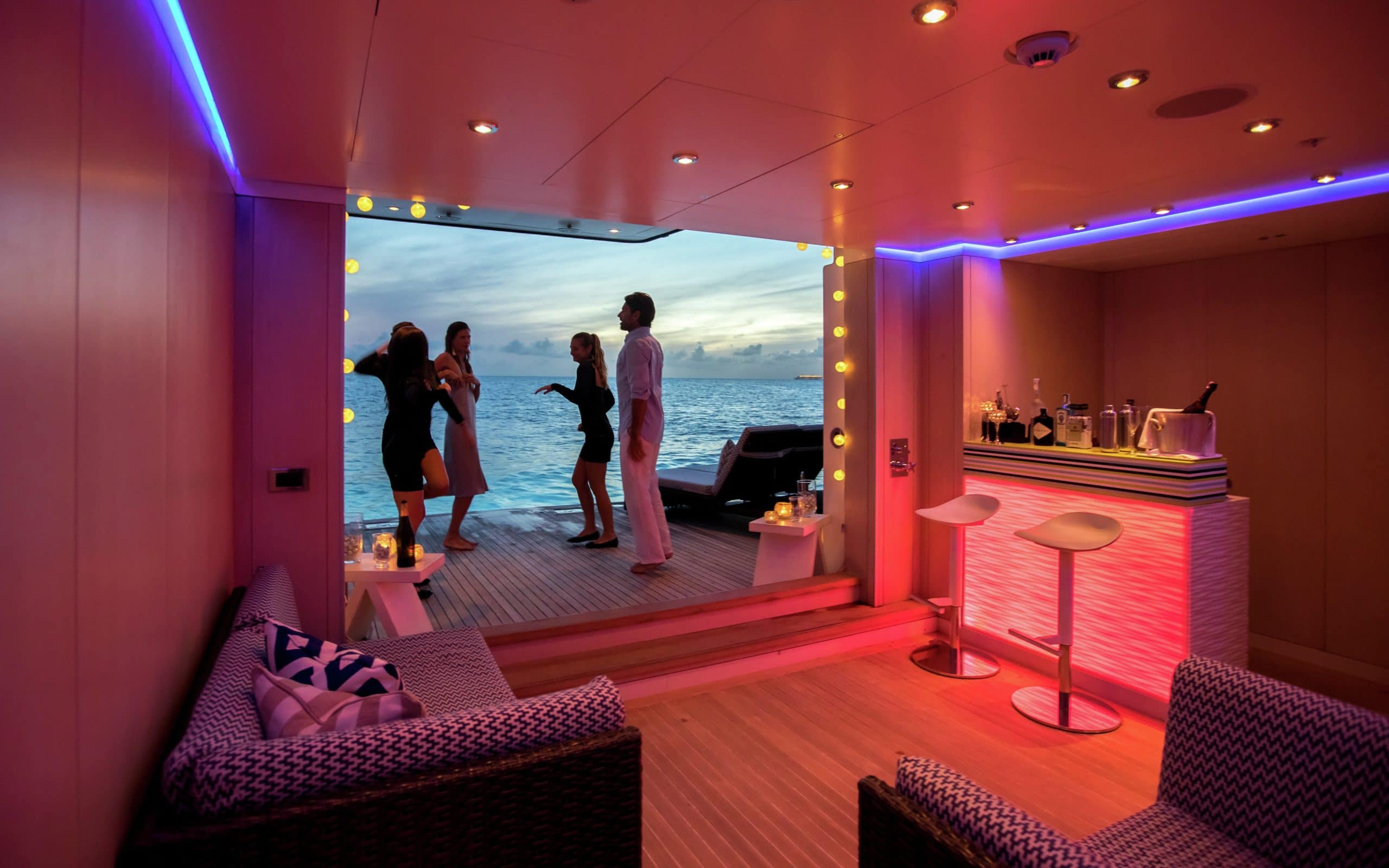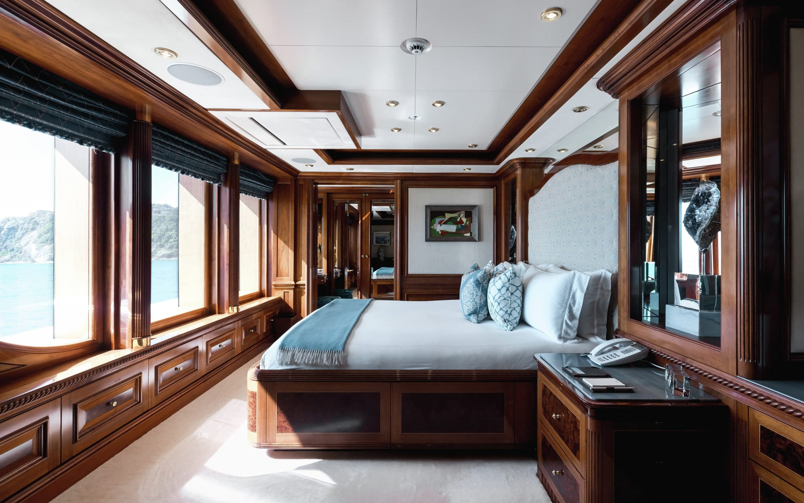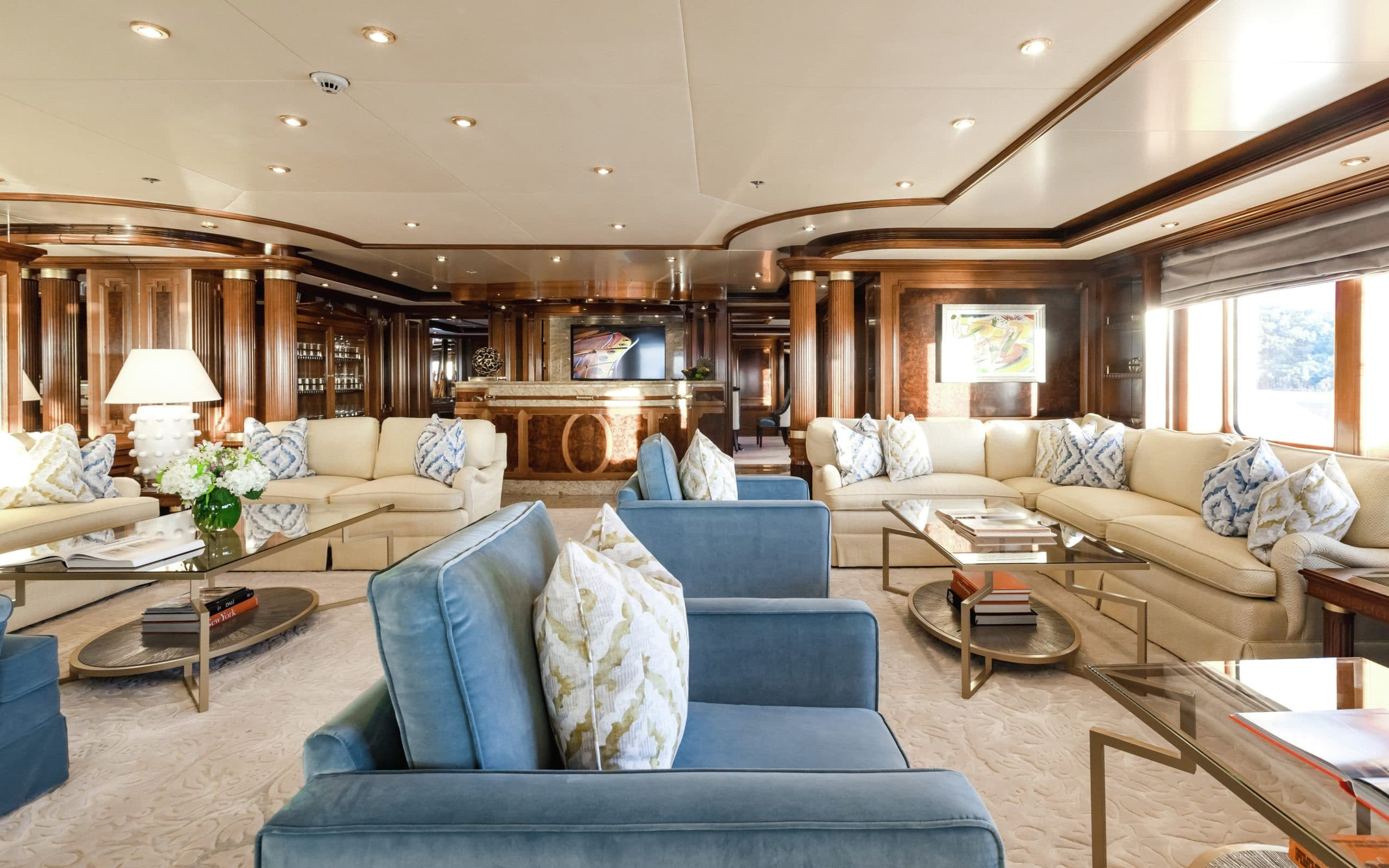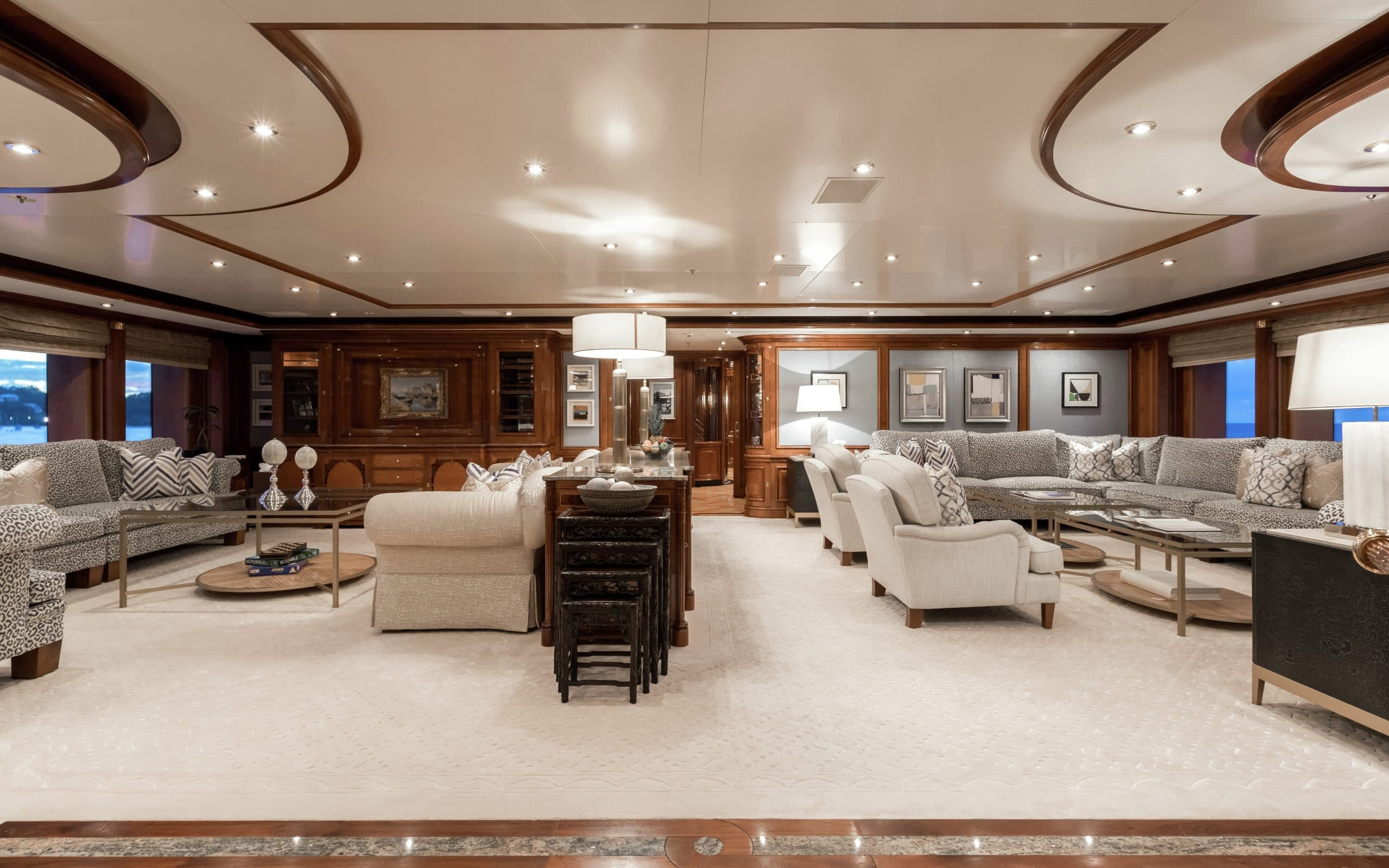 With 5 different levels to choose from there are ample exterior spaces for you and your guests to enjoy. The main deck and bridge deck both offer exterior dining areas that are shaded. Here you can appreciate the magnificent meals that will be prepared by your chef on board while escaping from the midday heat. Moving up to the next level is one of the most impressive areas on board, the pool deck. It will definitely be a favourite with all your guests due to its large pool, swim up bar and large exterior tv where you can unwind on the comfortable couches. On the top level is the sundeck where guests can enjoy 360-degree views and a sports bar. Making it the ideal place to watch a Mediterranean sunset with a glass of wine in hand!