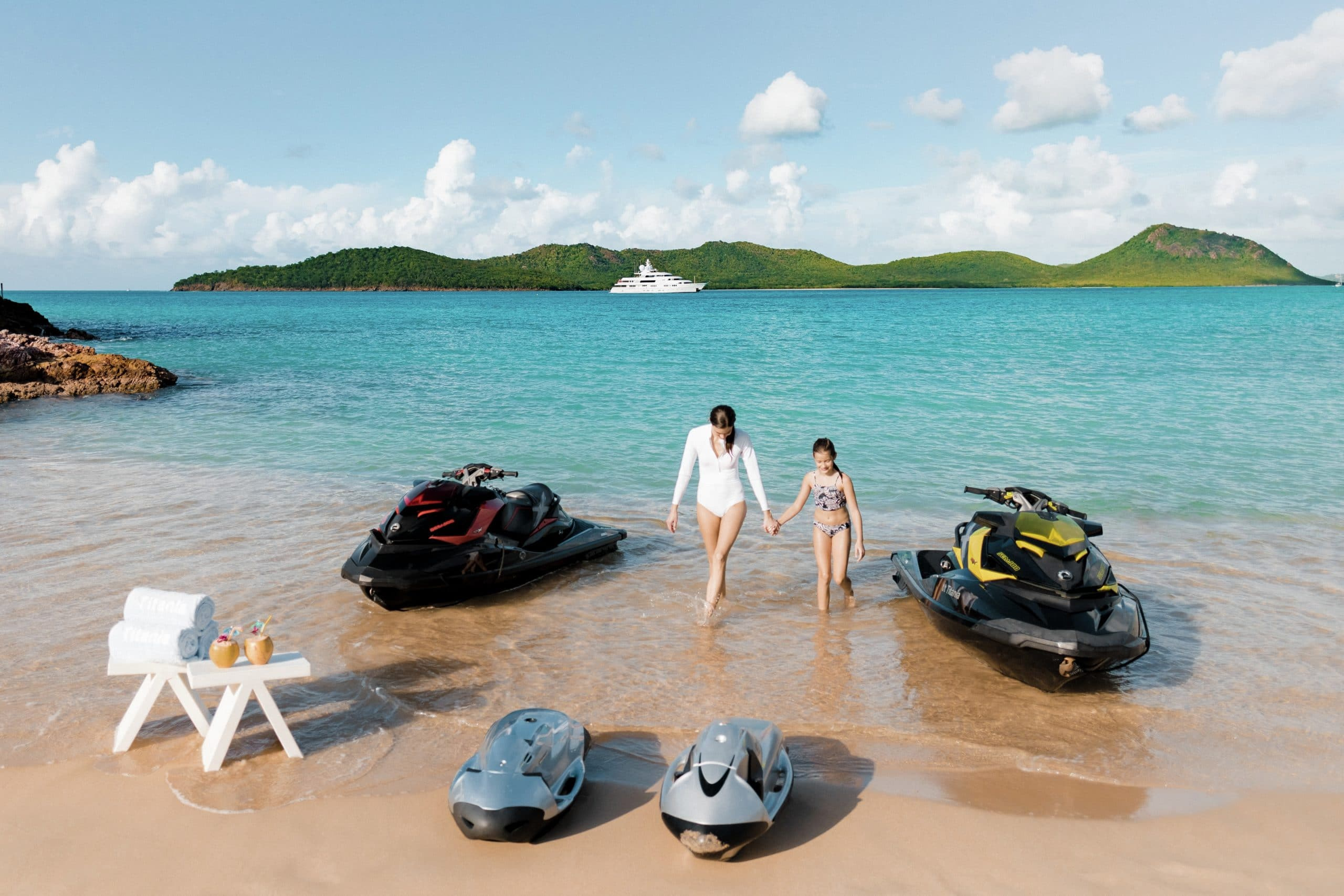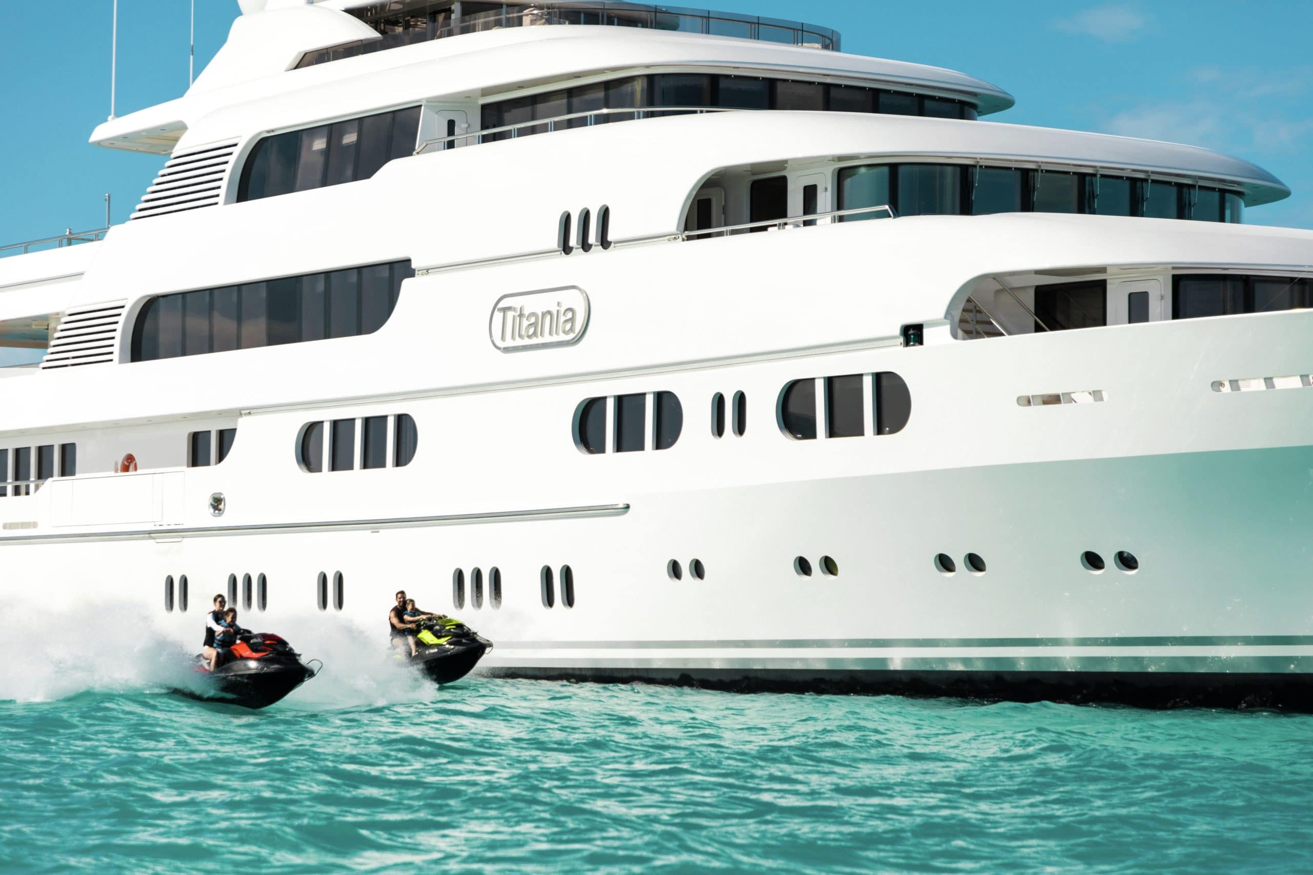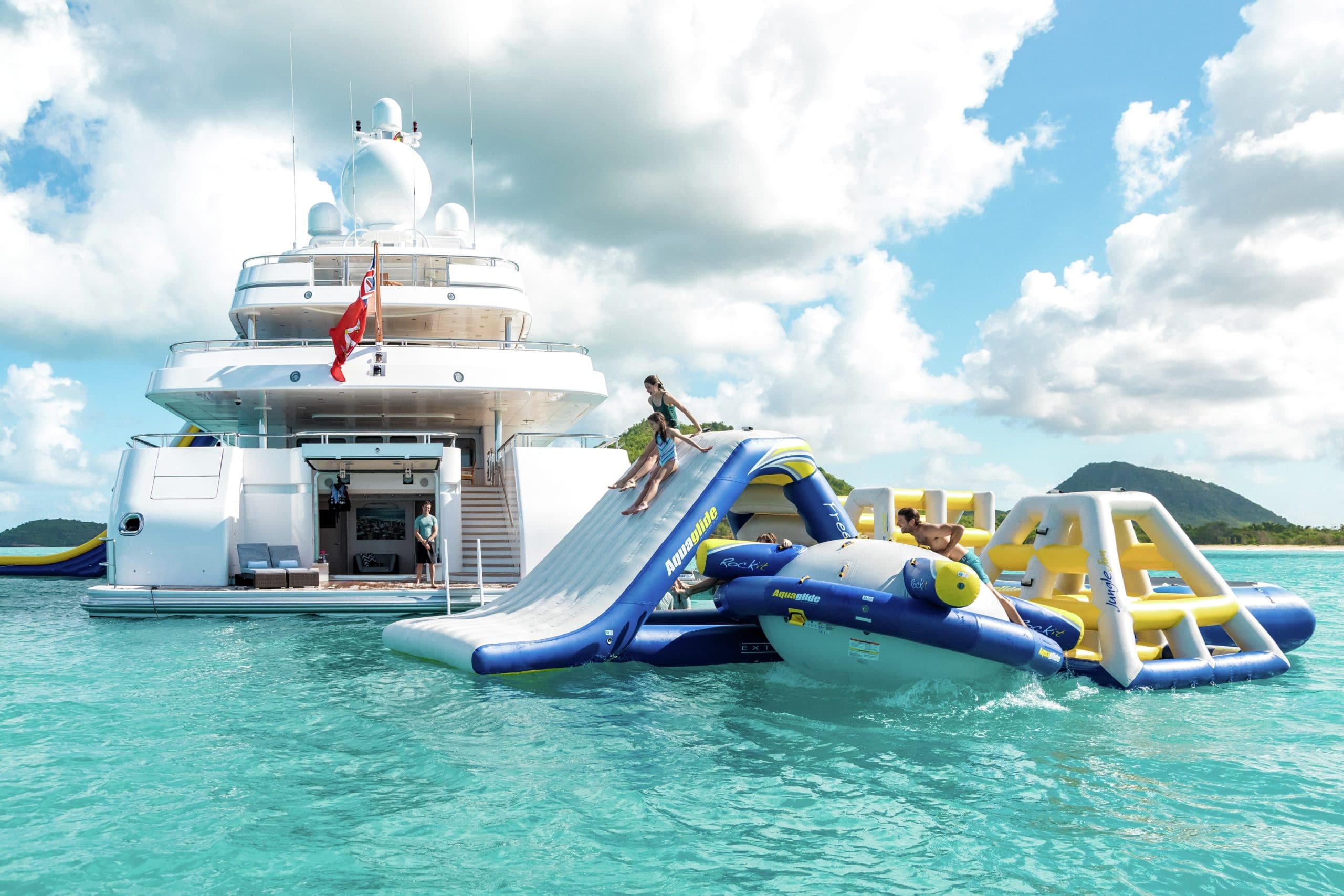 If the impressive amenities on board Titania have not convinced you that she is a world class yacht to charter, then the extensive list of water toys provided certainly will. On board there is an 8m Royal Denship custom tender as well as a 7.3m Whitmarch tender to transport guests to new ports to discover every day. They can also be used to whizz guests across the crystal waters on wake-boards and water-skis if they are thrill seekers. Titania also has sailing dinghies, seas-doos, kayaks, sea-bobs, tows and inflatables on board. As well as paddle boards, snorkelling gear and scuba diving equipment for those looking to discover under the deep blue sea. One of the best water toys on board Titania is her extensive water park that comes with a 12m inflatable waterslide for the brave at heart! Titania is also a certified RYA Training Centre and has two Jetski instructors who are able to issue jetski licences. Ensuring that you and your guests are always in safe hands.