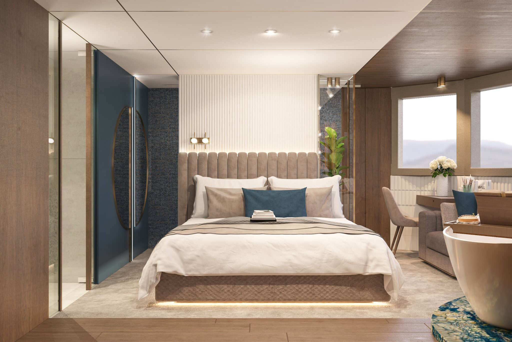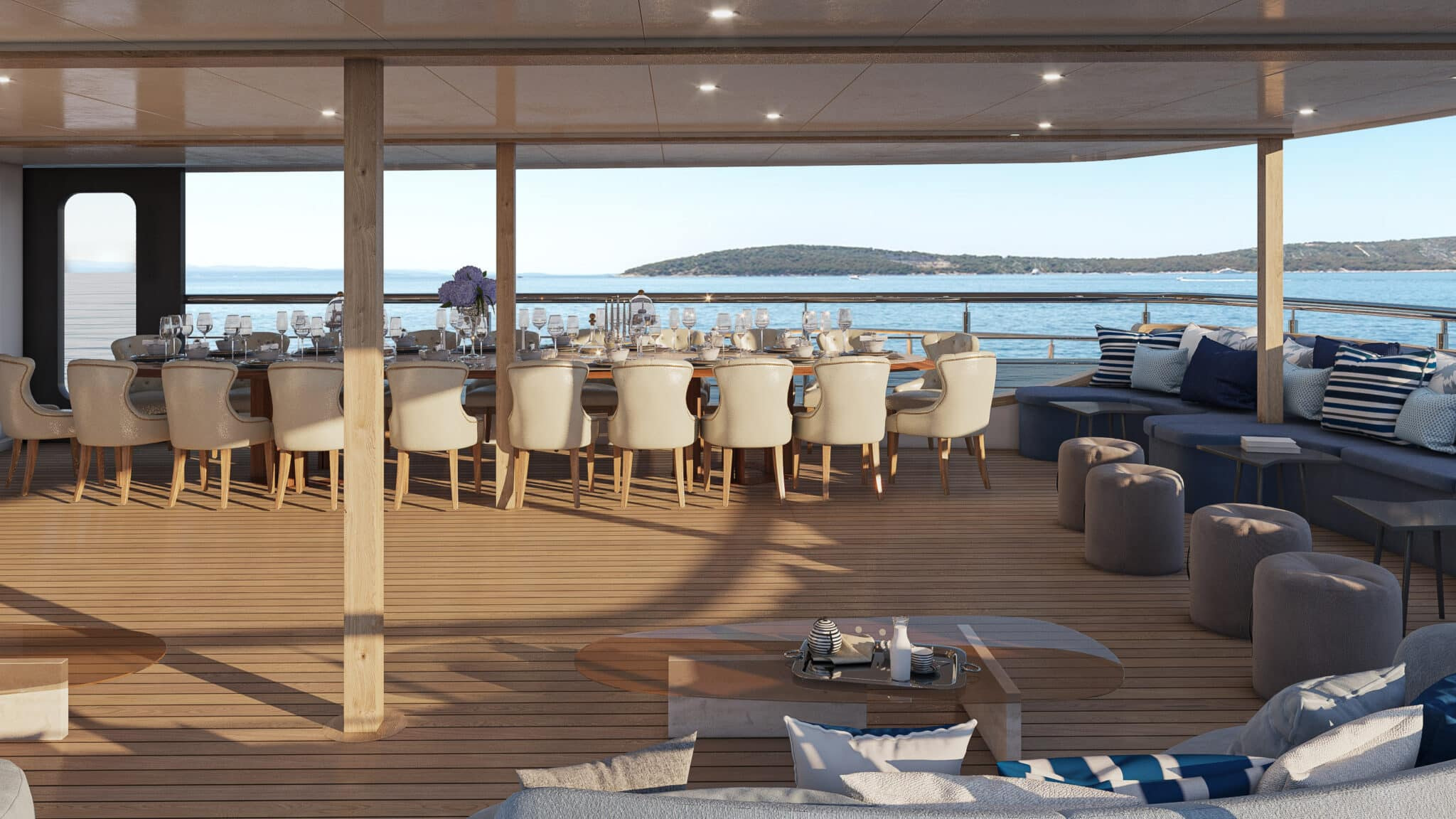 Bella unfolds its grandeur with ten lavish cabins, providing accommodation for up to 21 guests. The master suite, two double cabins, and two twin cabins showcase the yacht’s flexibility, ensuring a comfortable retreat for friends and family. Moreover, with a capable crew of 12 onboard, a seamless and relaxed luxury yacht Croatia charter experience is guaranteed aboard this luxury yacht Croatia.