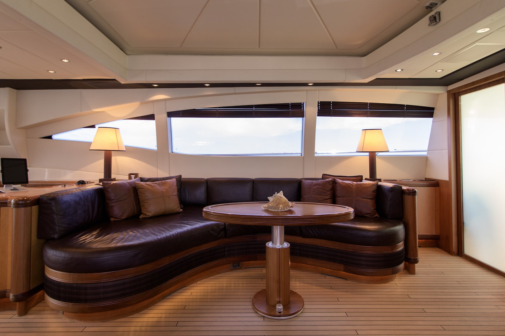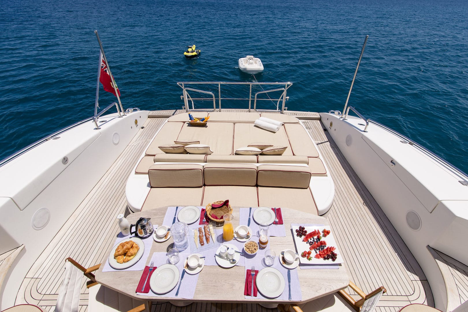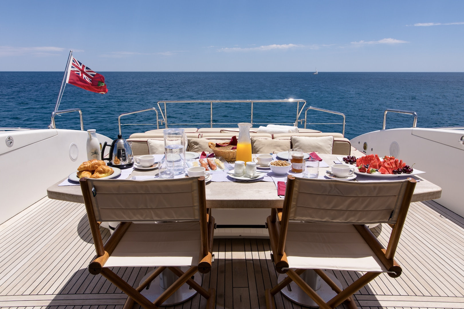 She boasts a very slick exterior with a “sporty” feel to it. For those looking to enjoy some exposure to the sun, bask on Little Zoe’s aft and bow lounging areas, which are perfect for getting that healthy glow. This is facilitated by her open layout, which is a must for many of our clients. She also is equipped to create the ultimate al-fresco dining experience. This is due to the table located to her aft, which provides a 360-degree view. Her on-board chef is a master of their craft, so good meals are guaranteed!