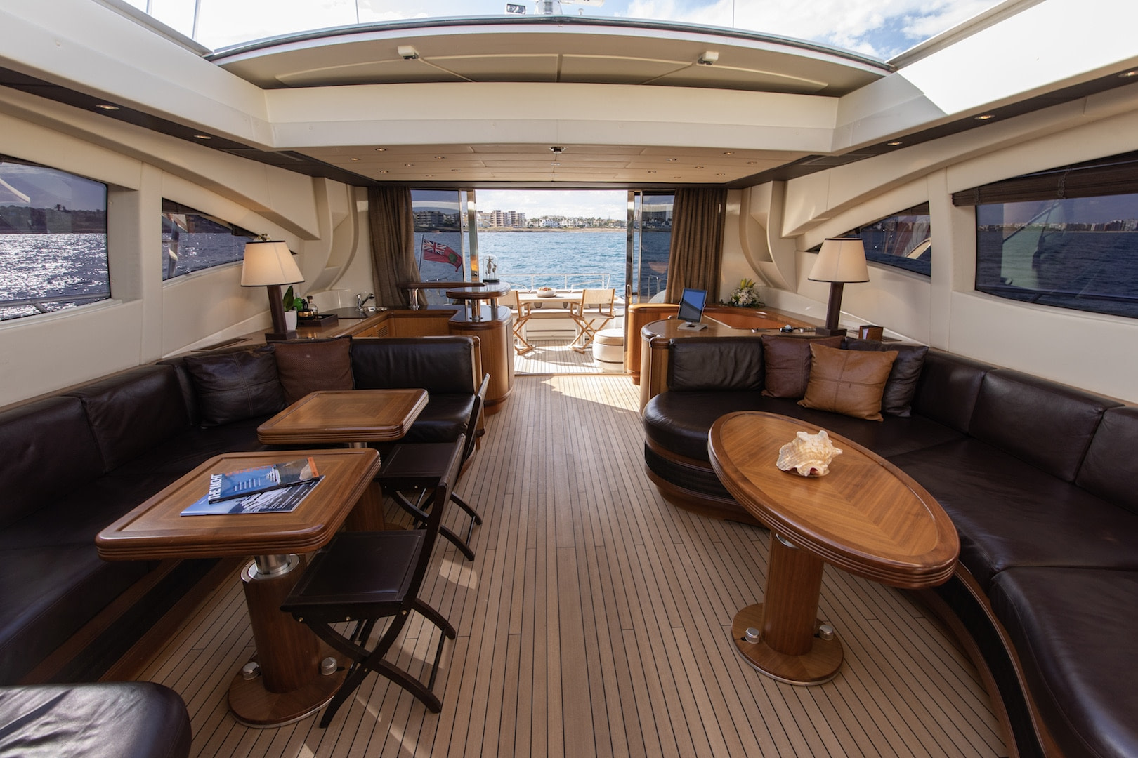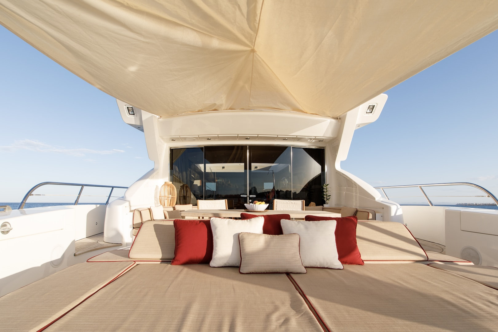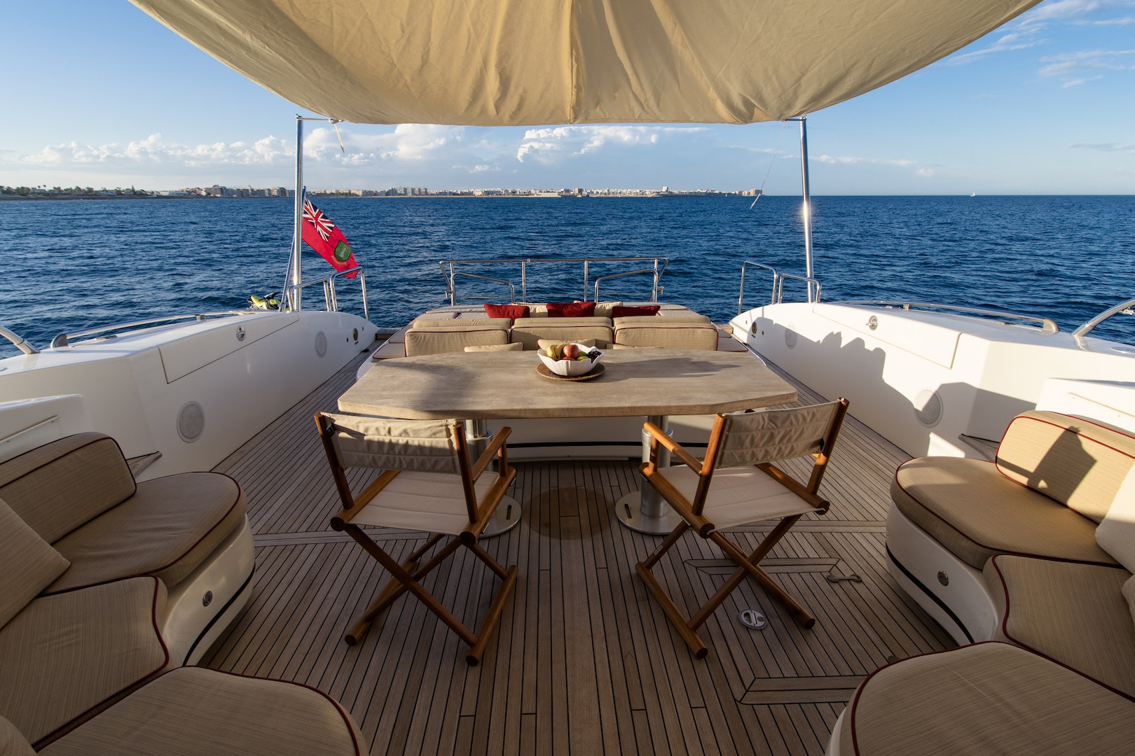 She boasts a very slick exterior with a “sporty” feel to it. For those looking to enjoy some exposure to the sun, bask on Little Zoe’s aft and bow lounging areas, which are perfect for getting that healthy glow. This is facilitated by her open layout, which is a must for many of our clients. She also is equipped to create the ultimate al-fresco dining experience. This is due to the table located to her aft, which provides a 360-degree view. Her on-board chef is a master of their craft, so good meals are guaranteed!