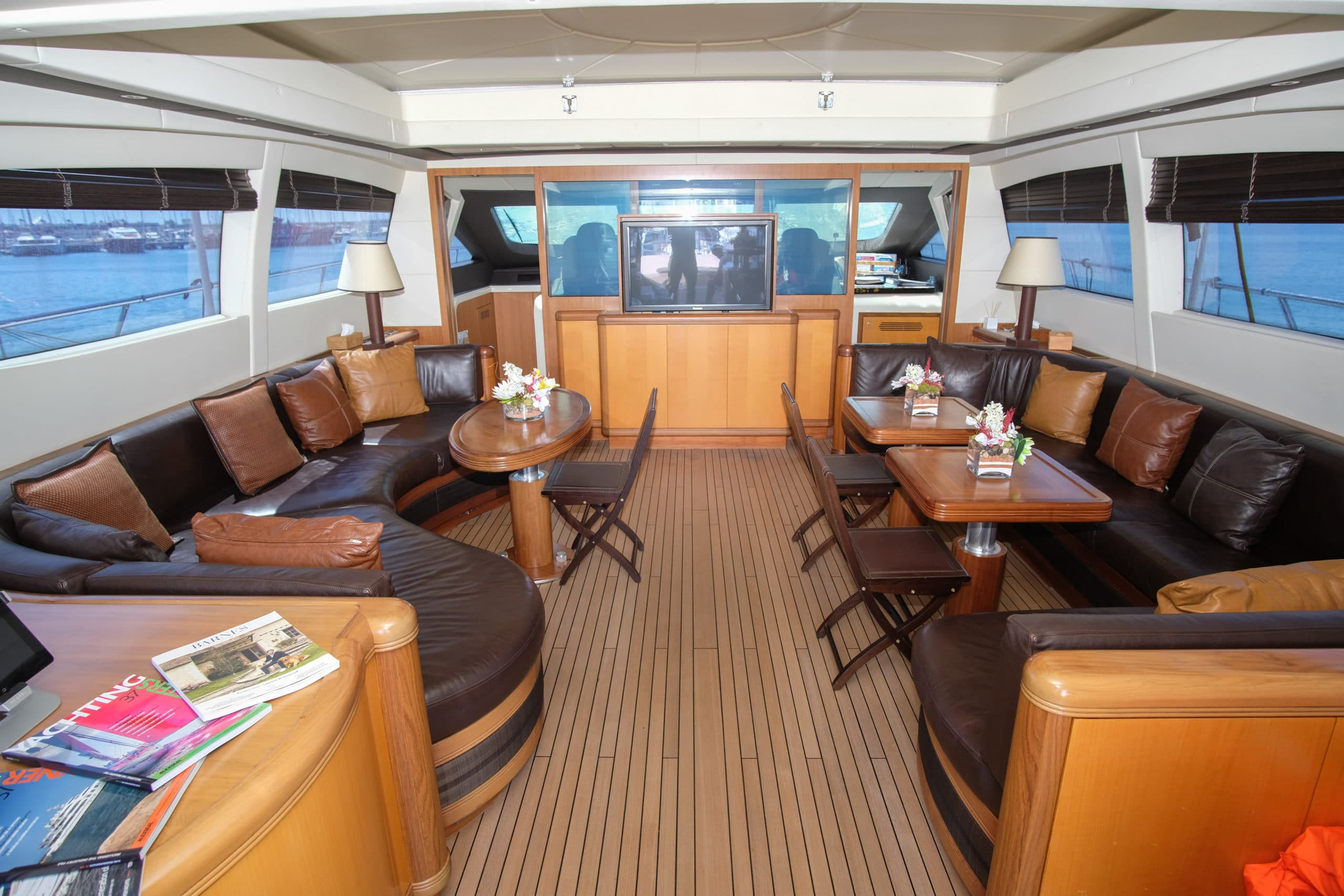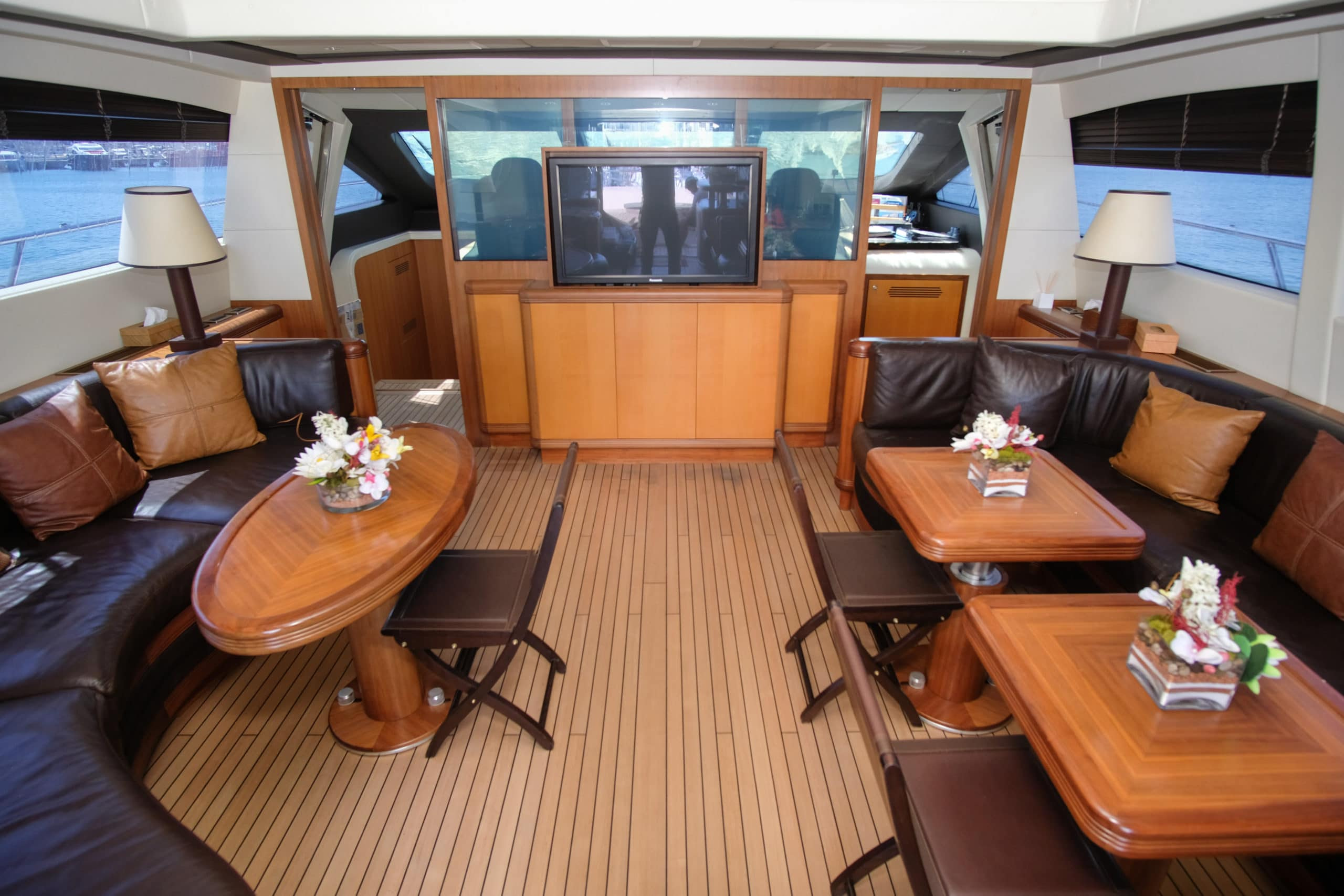 After bathing in the sun, or taking a dip in the glistening waters, one may look to take a break and relax inside this amazing motor boat. The main saloon is air conditioned and has wi-fi available. She is the perfect place to chill in front of the television or play a game of cards with your fellow guests. She is very stylish and comfortable, with a style that appeals to many of our clients.