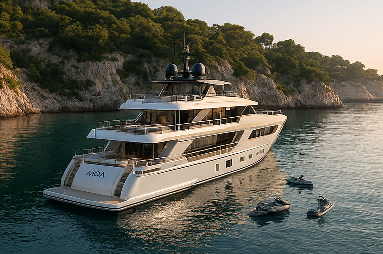 Charter a 50m 2026 New build with modern interior and exterior, as well as water toys and amenities to ensure you have an eventful yet relaxing time at sea. Cruise along the shoreline with a superyacht charter unlike anything else on the market. Whether it is a corporate charter or an intimate family holiday, you are sure to experience luxury at it’s finest with your MOA Yacht charter.