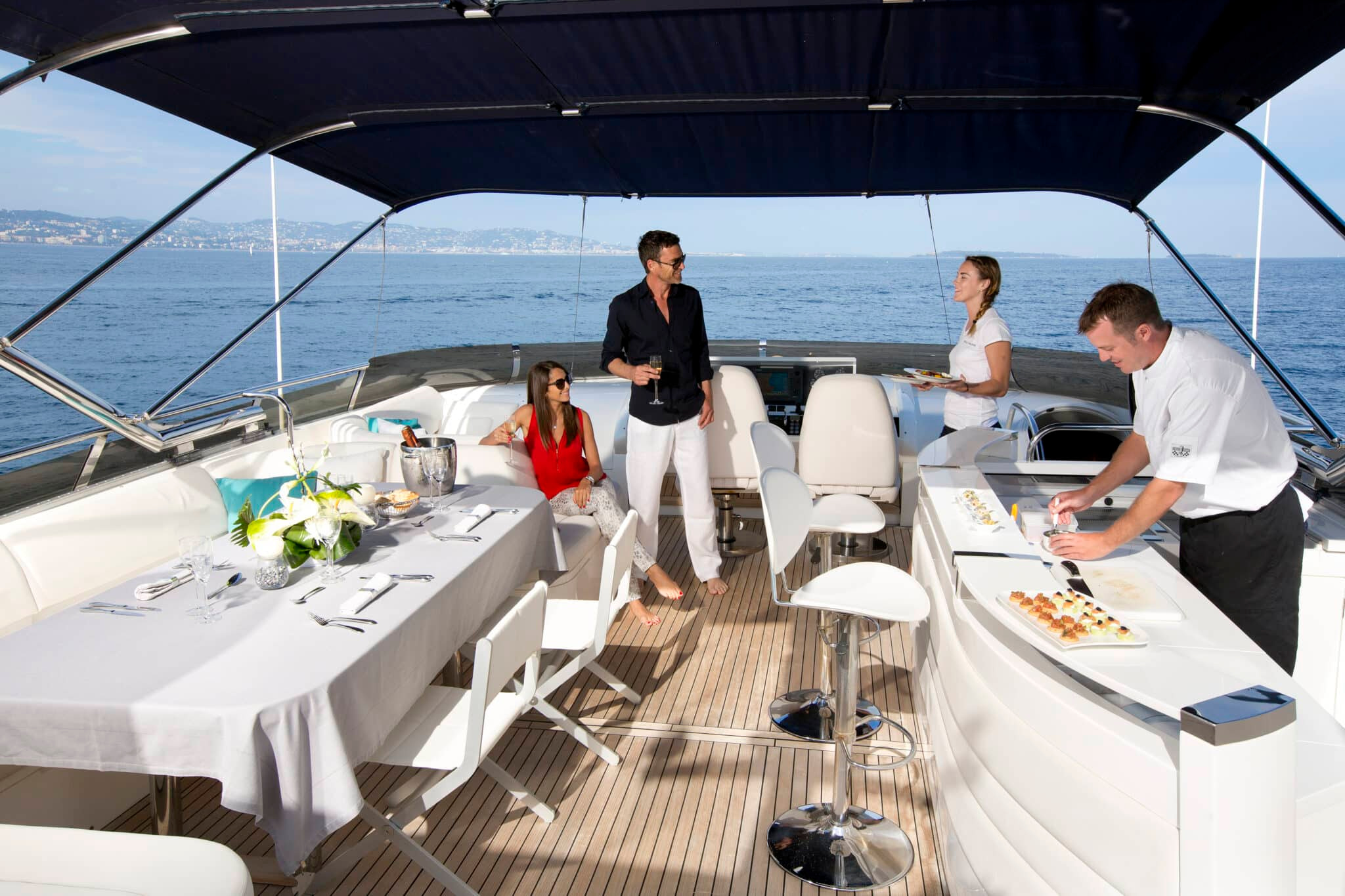During your charter aboard the Molly Malone, an array of entertainment options promise to enhance your experience. Connectivity is never a concern aboard the Molly Malone Yacht. With seamless Wi-Fi access, guests can always remain connected to their world. And come rain or shine, the yacht’s state-of-the-art air conditioning guarantees utmost comfort during your charter. Other services such as SKY TV, an Integrated central server for movies and Apple TV are onboard.