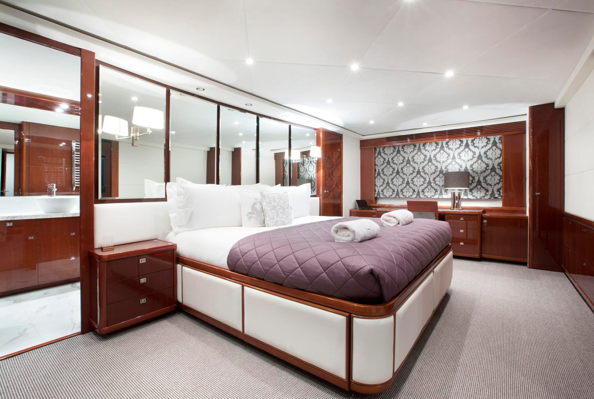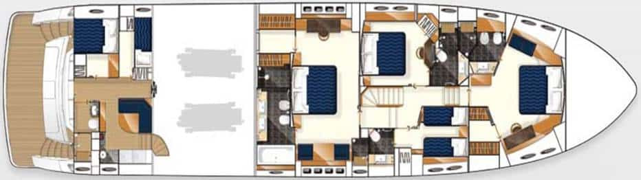 Crafted meticulously by the distinguished British shipyard Princess, this yacht spans an impressive 29.3m/96’2″. This impressive yacht is a statement in luxury and is available now to charter with 212 Yachts. This yacht can accommodate up to 9 guests within its 4 meticulously designed cabins. Discover the very definition of luxury travel of this Molly Malone yacht on water!