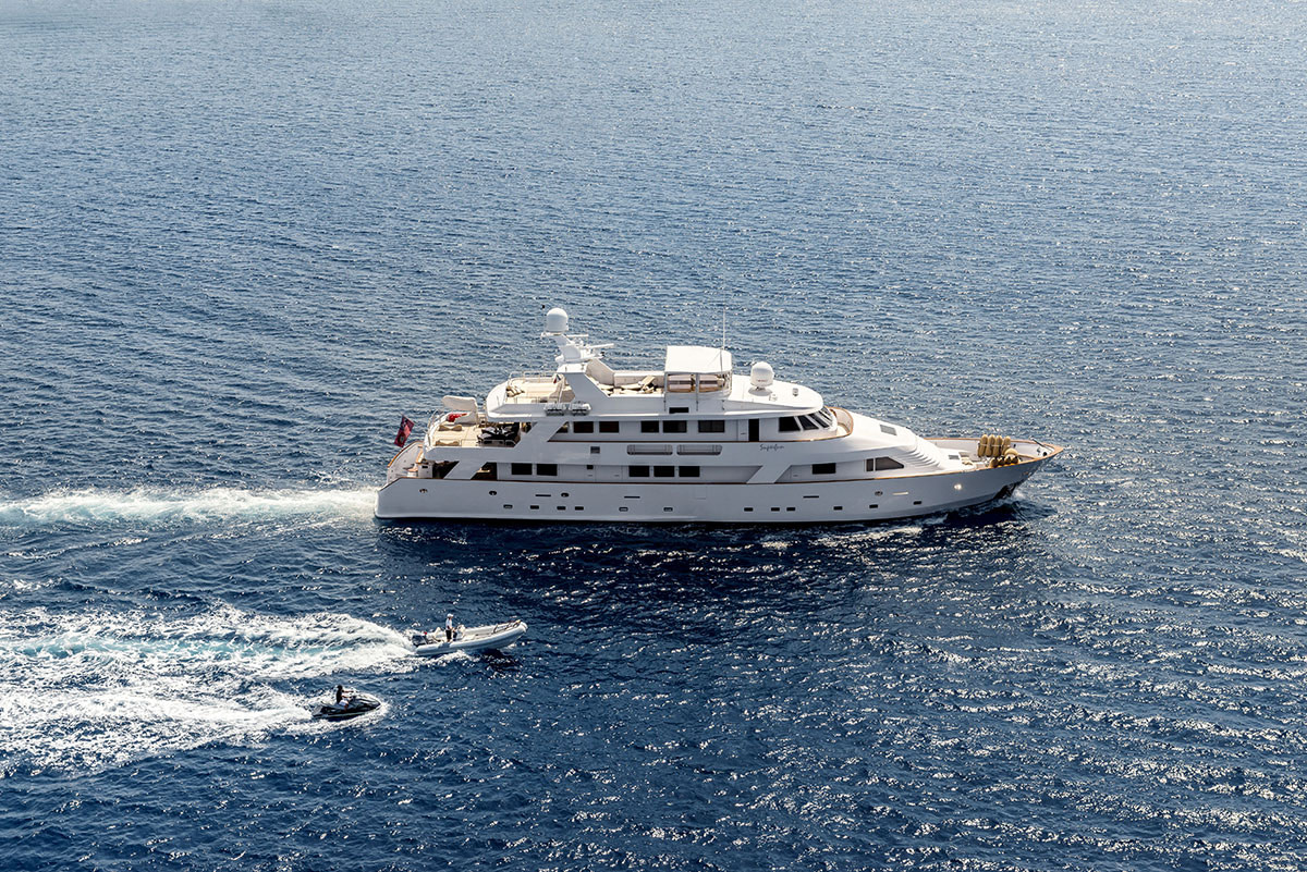 Motor yacht Superfun also boasts a range of toys for the more active guests to enjoy. These include a seven meter tender with towables such as a banana, donut etc., two three person jet skis, two paddle boards, and snorkeling equipment for up to ten guests.