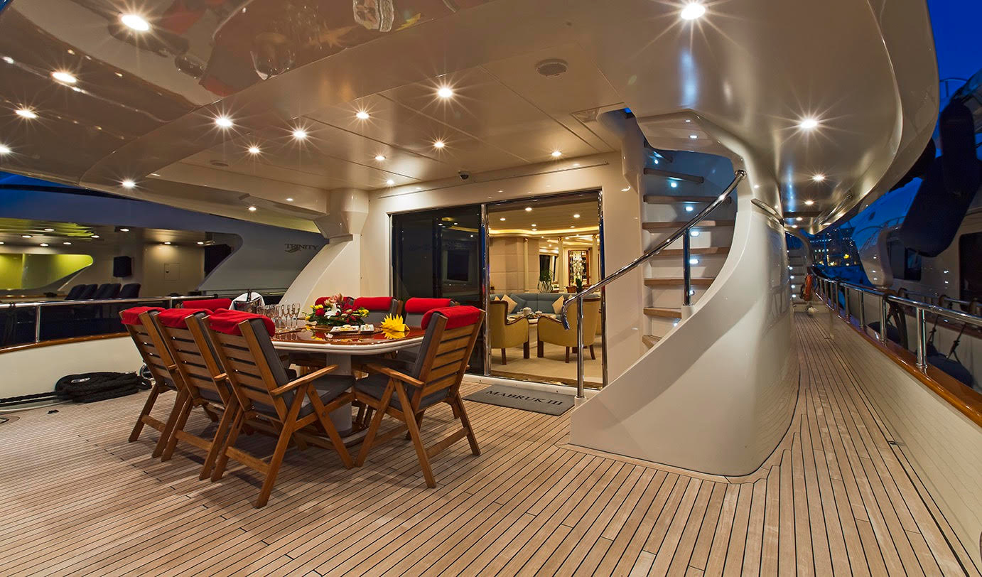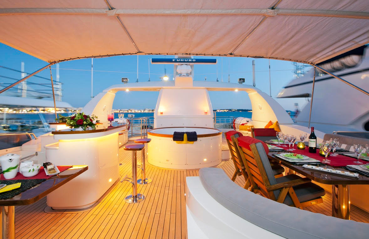 The spacious sun deck is filled with lounge areas, providing plenty of opportunities for socializing and entertainment. Quiet nooks are scattered throughout. Allowing you to escape for some essential relaxing time.There’s more than enough space for enjoying an alfresco lunch or dinner on deck. As well as lounging in the sunshine and catching your dream tan. The luxurious Jacuzzi on deck allows you to take in the stunning views and feel the wind in your hair while relaxing beneath the bubbles.