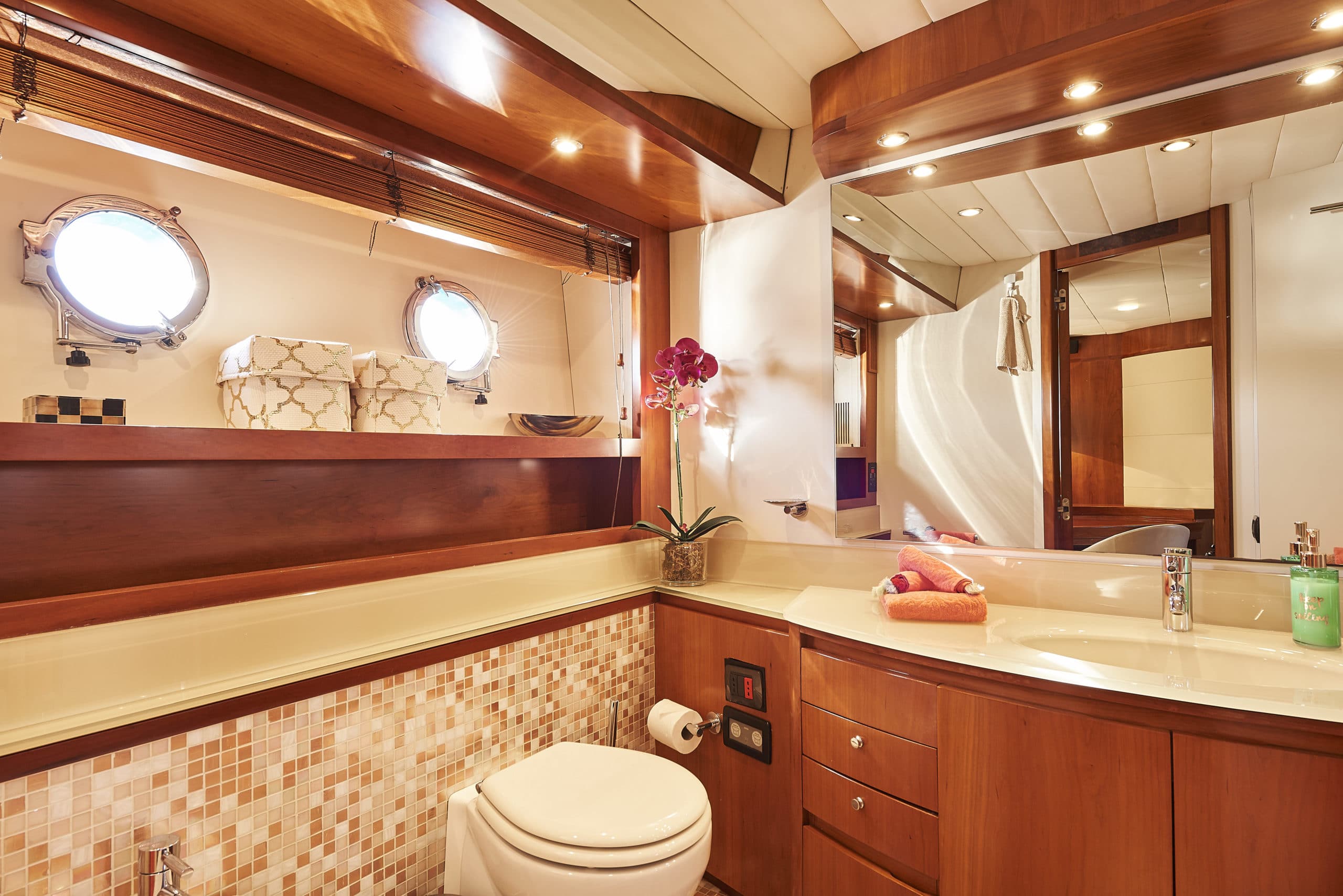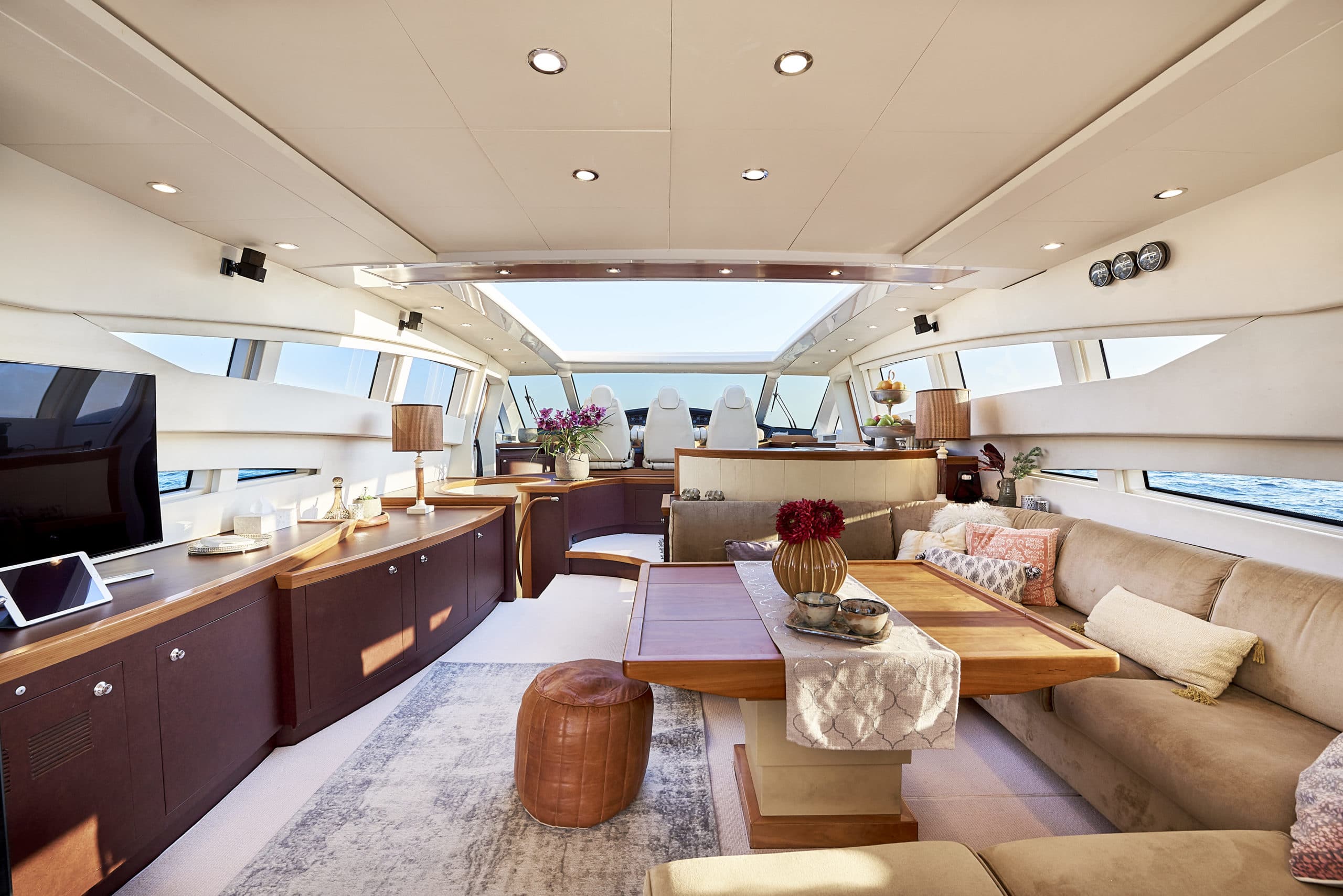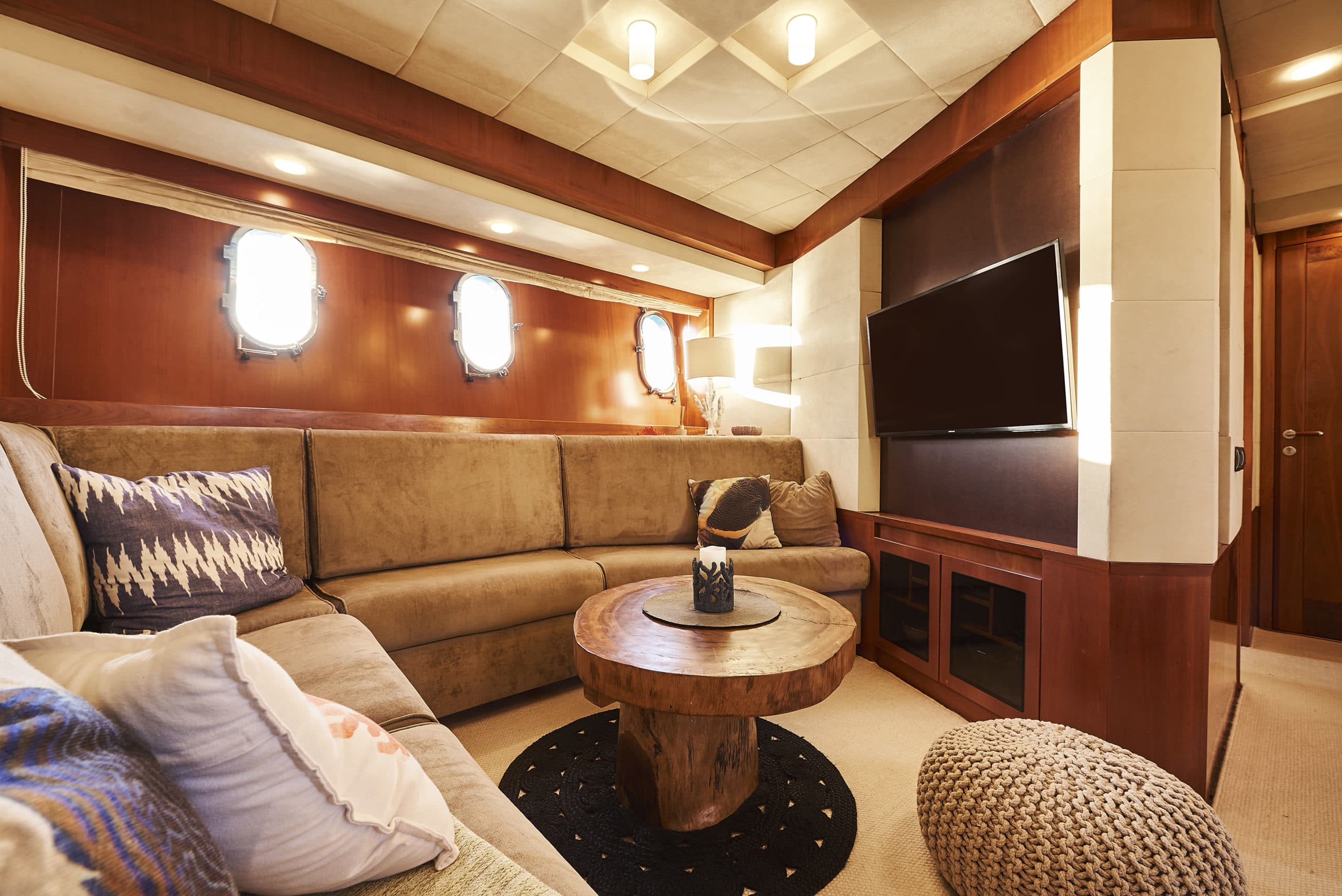 This motor yacht also has a superb sound systems in four zones to ensure quality sounding music, whatever your taste. The large downstairs salon means there are two distinct chill areas for guests. It features a HD Apple TV downstairs (with Netflix, Playstation, HBO). This space also acts as an office, if guests do need to do some work / have meetings whilst onboard.