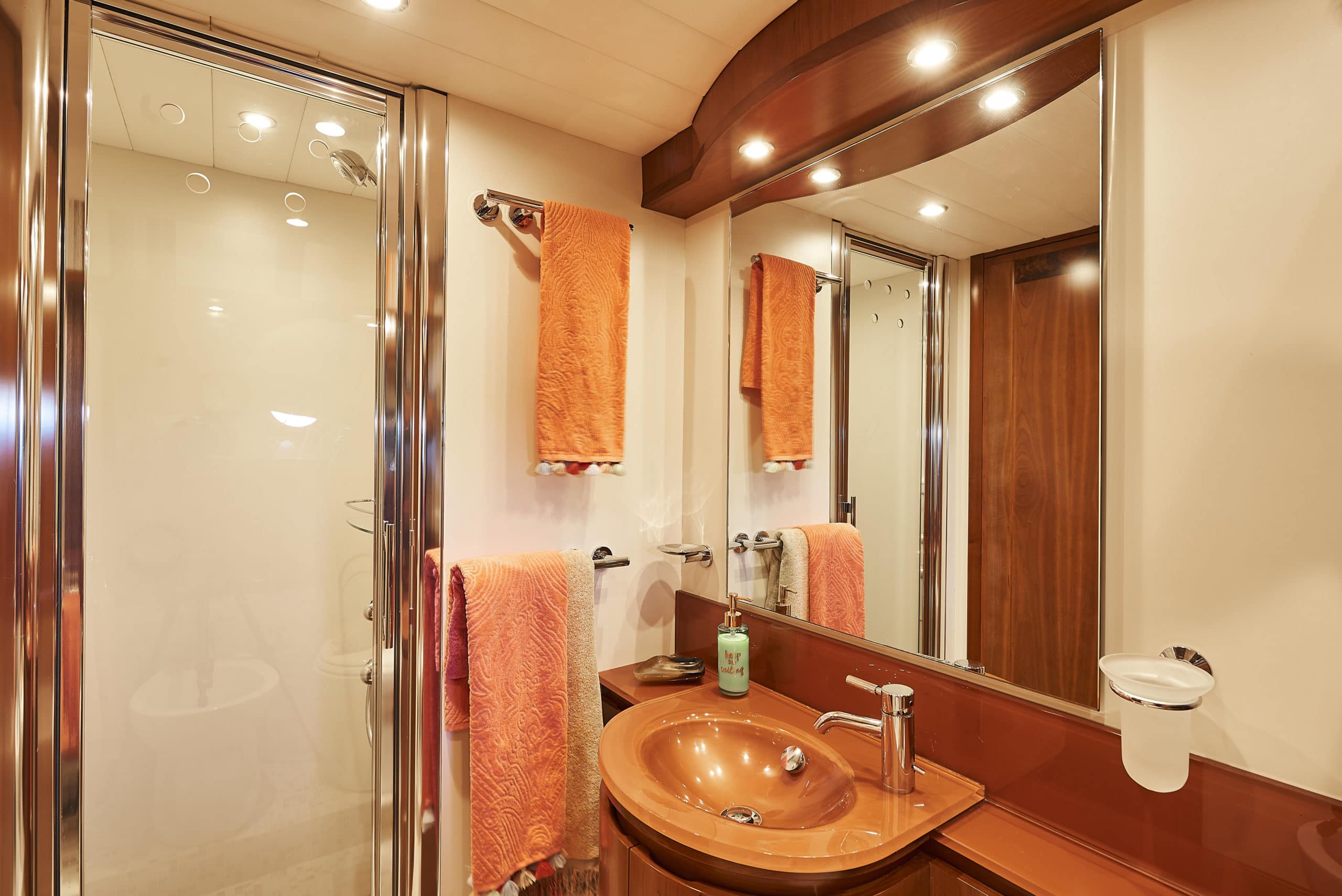 Oceans 5 is equipped with a huge range of toys for a yacht of this size. It’s 5 meter tender can tow Oceans 5’s water-skis, mono-ski and wakeboard. She also possesses a kayak, paddle board, inflatable paddle board and 6m long runway and fishing equipment. She also has a second tender (2.5m with 8hp outboard) which guests can use without crew if they desire.