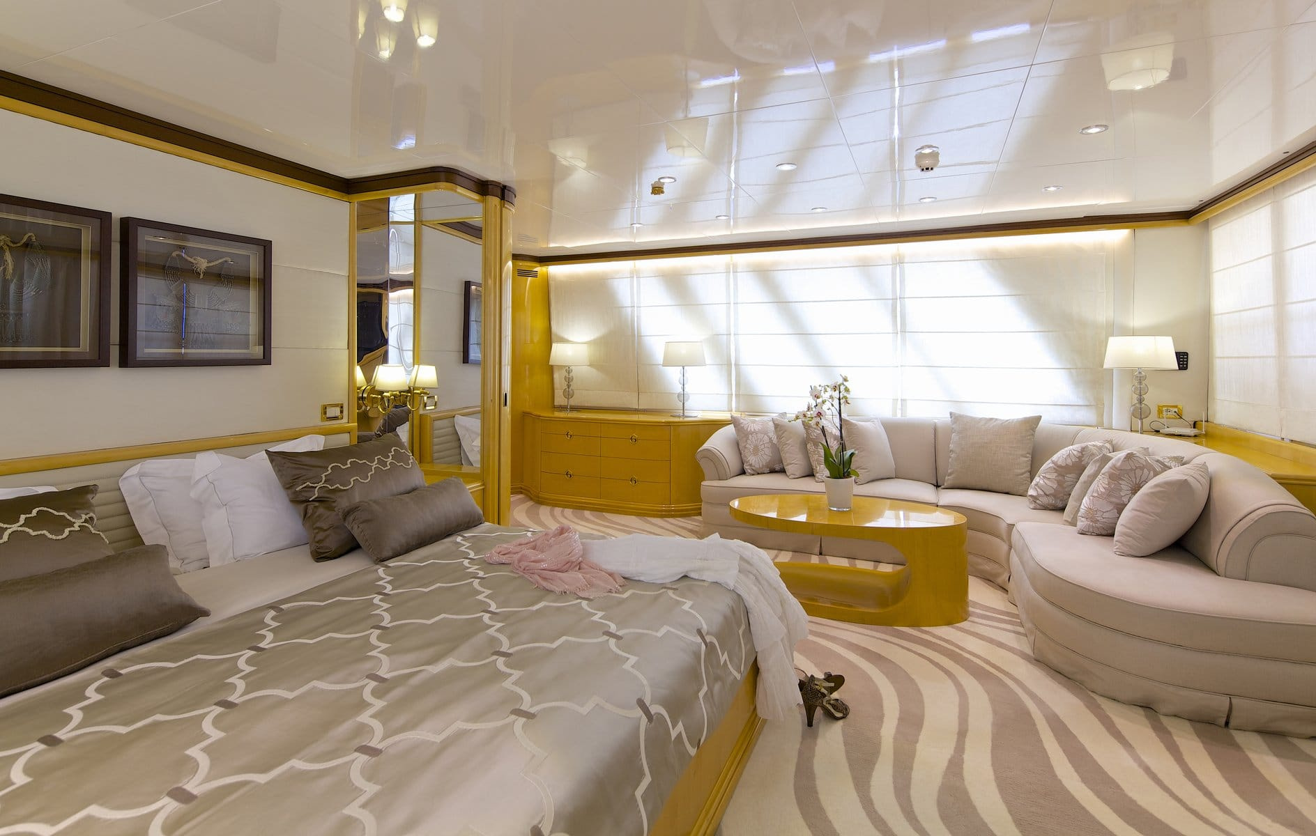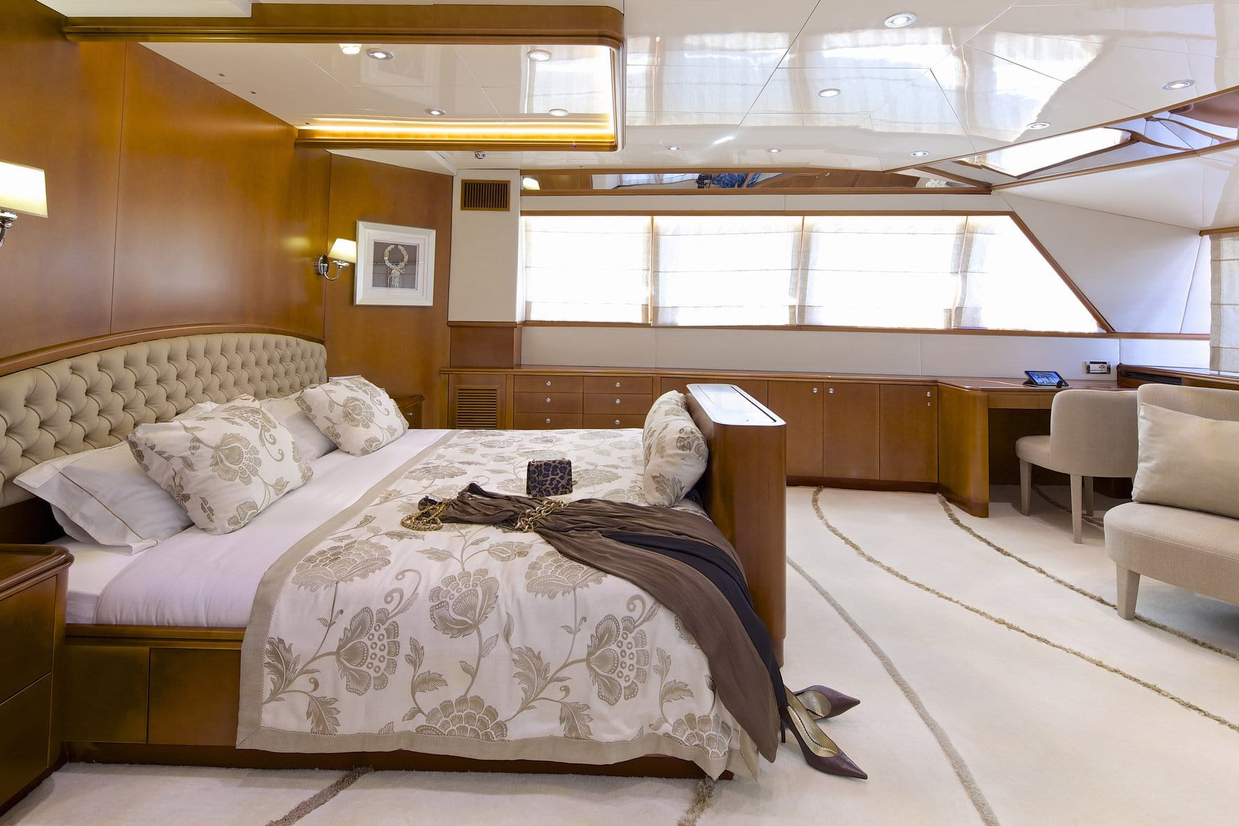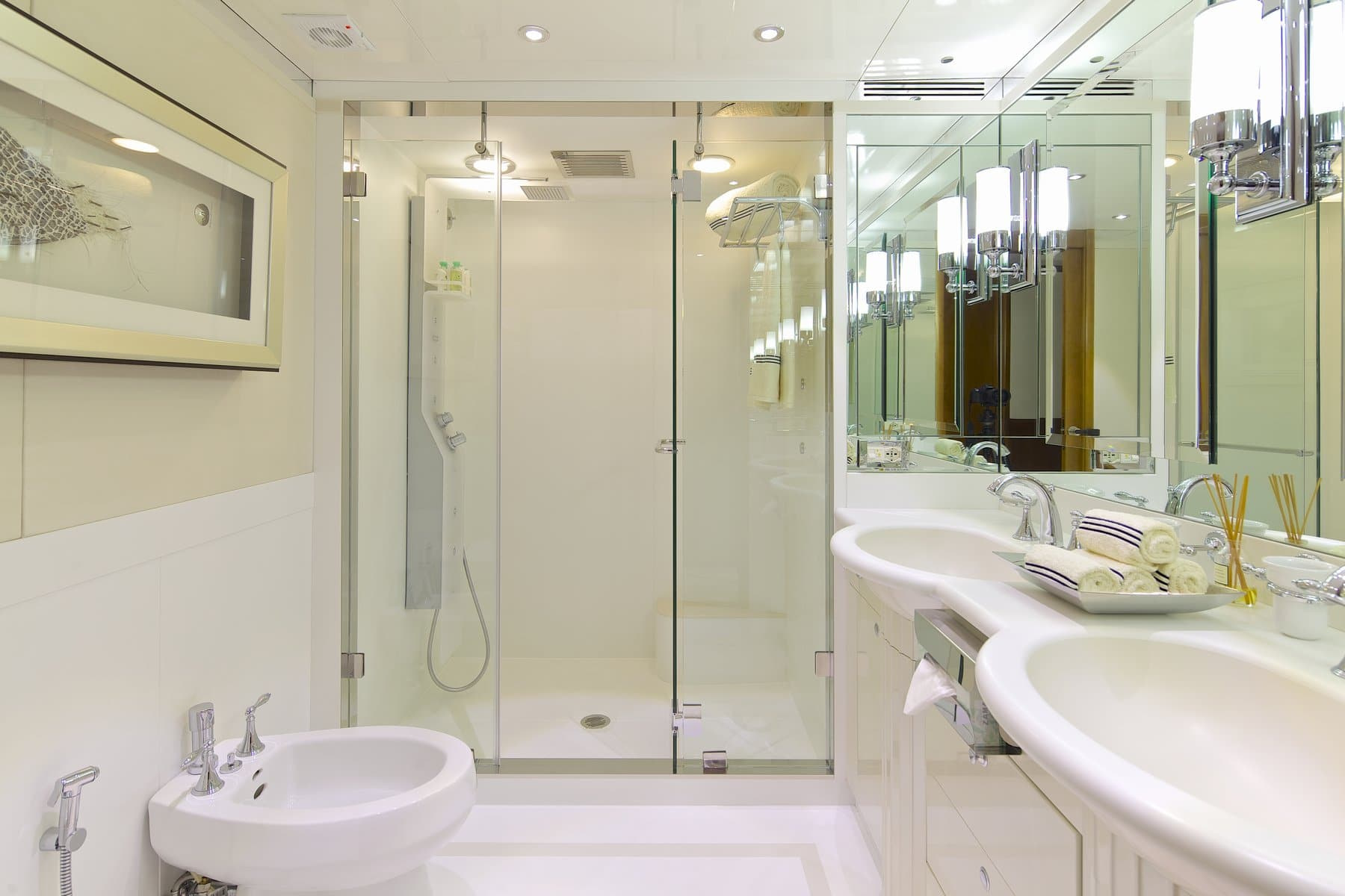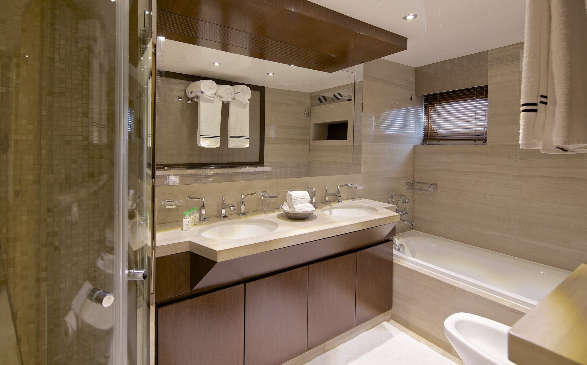 O’Leanna boasts 6 cabins, comfortably sleeping 12 guests. She offers the advantage of 2 large master cabins, one on her main deck and one on her upper deck. Her VIP cabin boasts a large, tranquil en-suite in addition to a walk-in closet. She also has a double cabin and 2 twin cabins. Thanks to her 2015 refit and continued attentive maintenance, her cabins and living space is all immaculate and modern, and boasts the added bonus of Fendi furnishings.