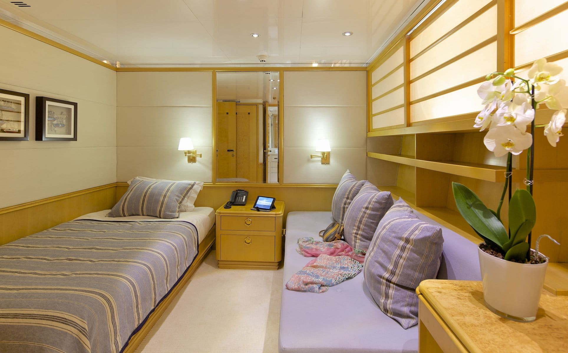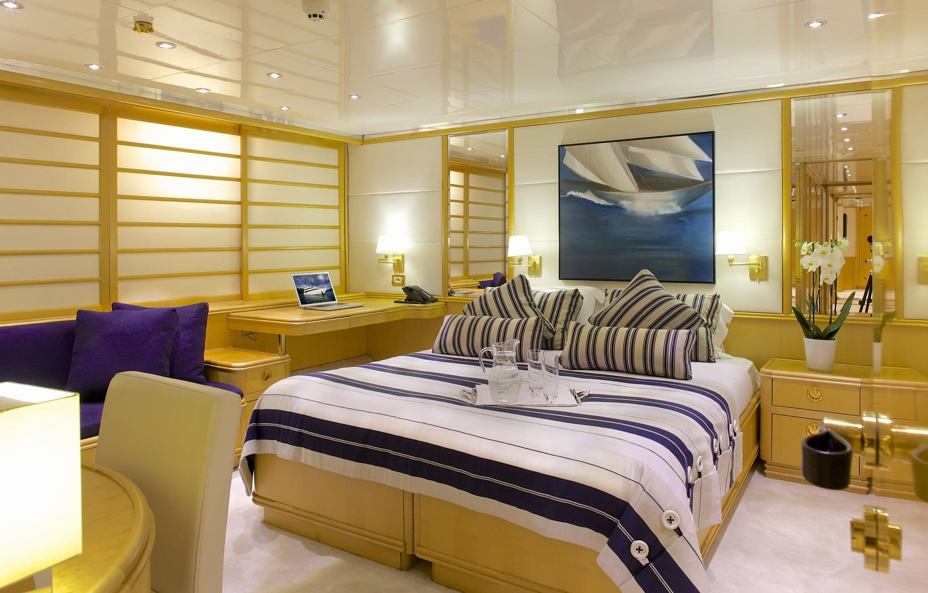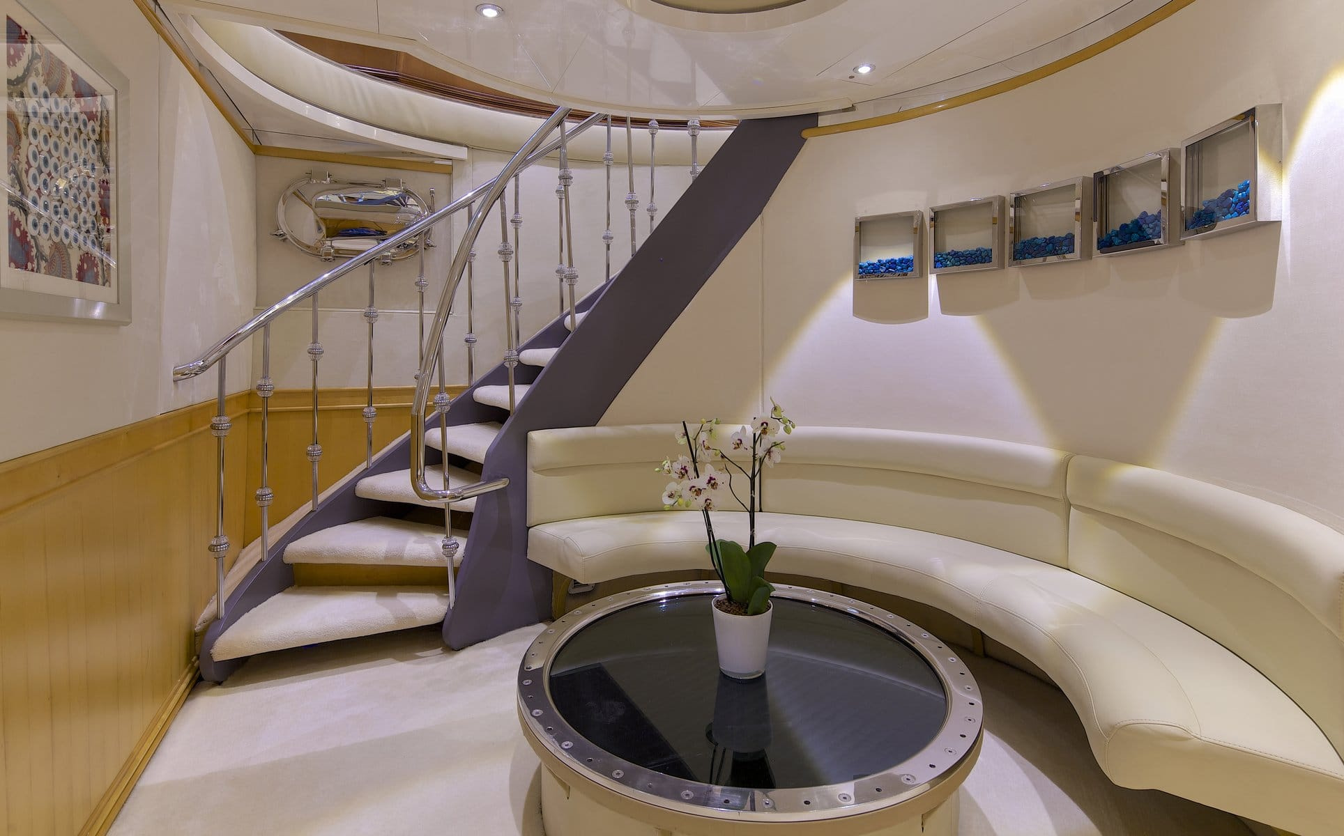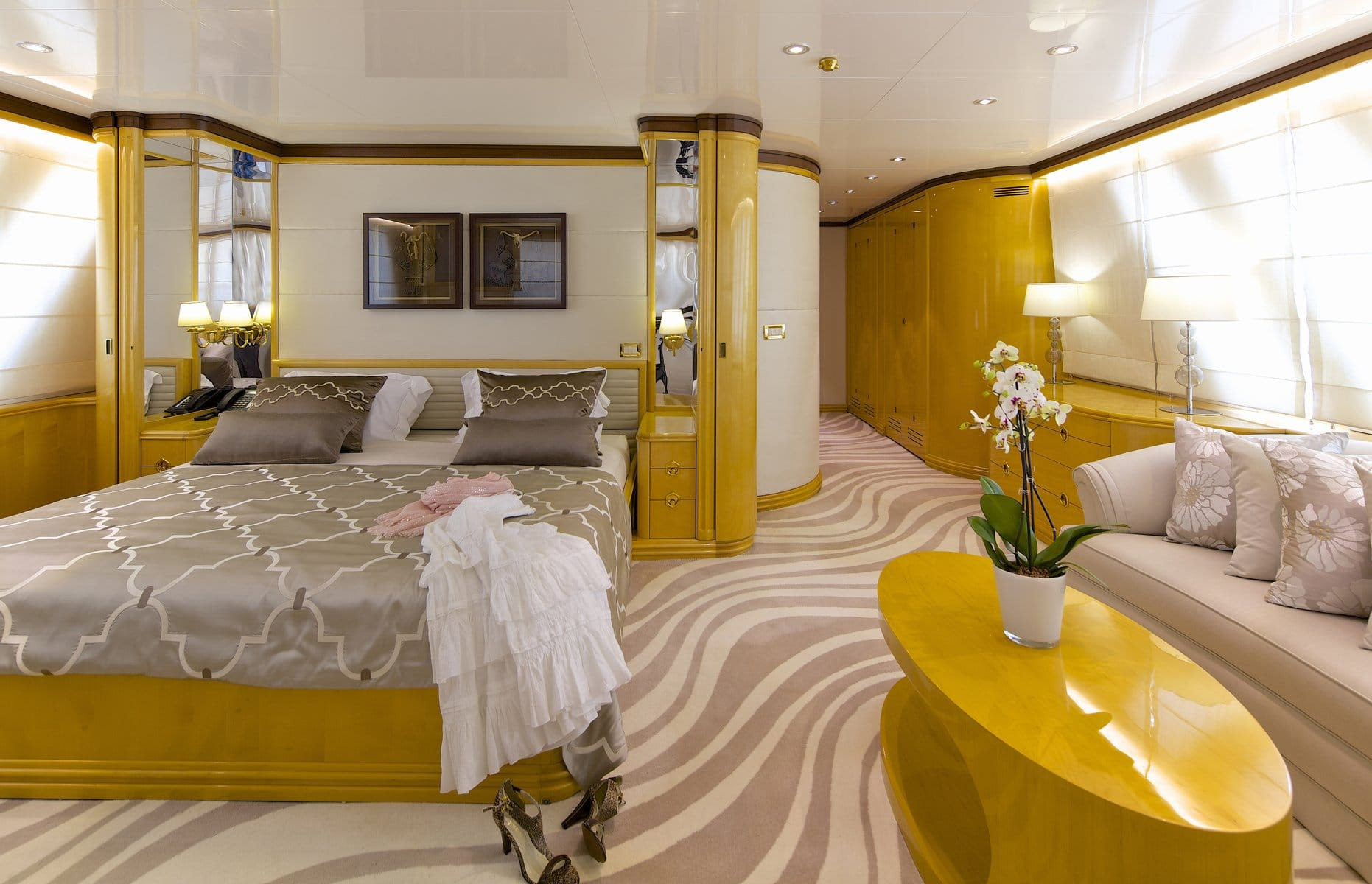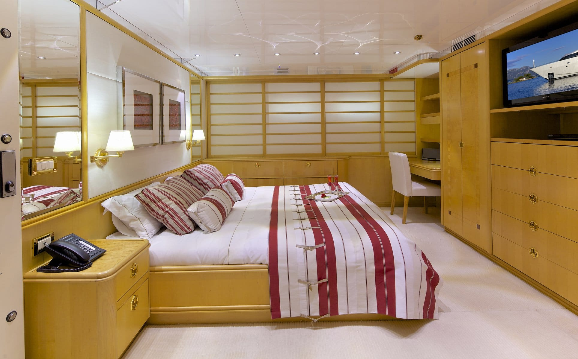 O’Leanna boasts 6 cabins, comfortably sleeping 12 guests. She offers the advantage of 2 large master cabins, one on her main deck and one on her upper deck. Her VIP cabin boasts a large, tranquil en-suite in addition to a walk-in closet. She also has a double cabin and 2 twin cabins. Thanks to her 2015 refit and continued attentive maintenance, her cabins and living space is all immaculate and modern, and boasts the added bonus of Fendi furnishings.