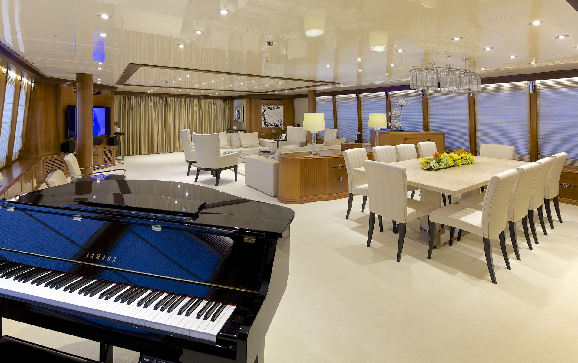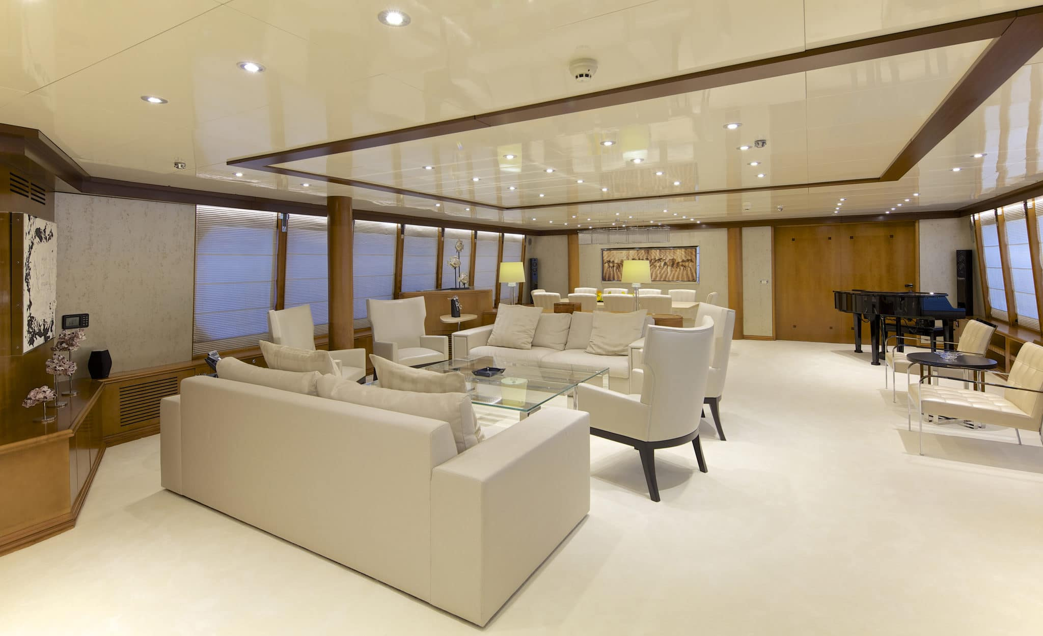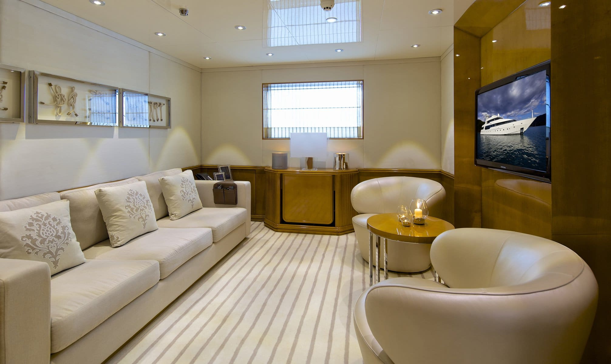 A private yacht charter on-board O’Leanna is sure to be filled with fun and activity for all ages and tastes. Her list of toys is impressive, as is her modern and well-equipped gym space. She also boasts state-of-the-art audio-visual equipment throughout, and a dedicated, comfortable television room in a edition to her massive full-beam salon.