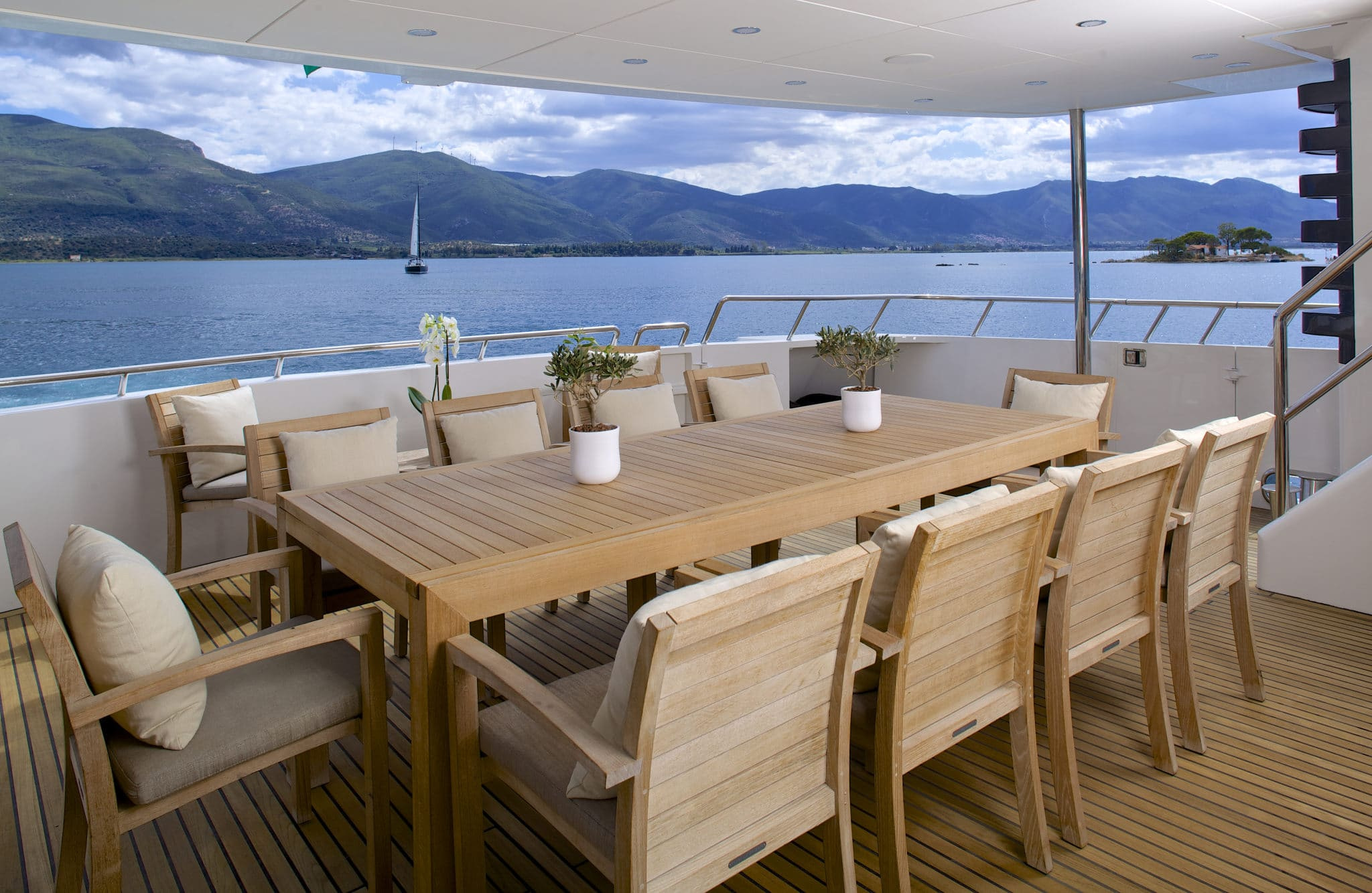 The crew of O’Leanna is a highly experienced and attentive team. The level of service and care on-board is exquisite, with many repeat clients season after season due to the desirable combination of magnificent yacht and crew. One of the highlights of a private yacht charter on-board O’Leanna is the divine culinary experiences created by head chef Yannis Venieris. With extensive global experience in a palate, he prides himself in applying creativity to every dish, ensuring each plate boats a unique culinary experience. Relax on the aft deck in the twighlight as your team of stewardesses present the finest works of Chef Yannis for your pleasure.