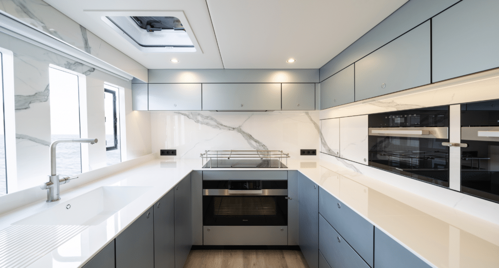 One Planet Sunreef Yachts was built with a keen eye for onboard comfort and entertainment. This yacht ensures that your charter experience is nothing short of extraordinary. Stay seamlessly connected with Wi-Fi connectivity, allowing you to stay in touch with the world while you indulge in the beauty of the seas. Regardless of the weather, the yacht offers air conditioning throughout your charter, ensuring a comfortable and enjoyable journey.