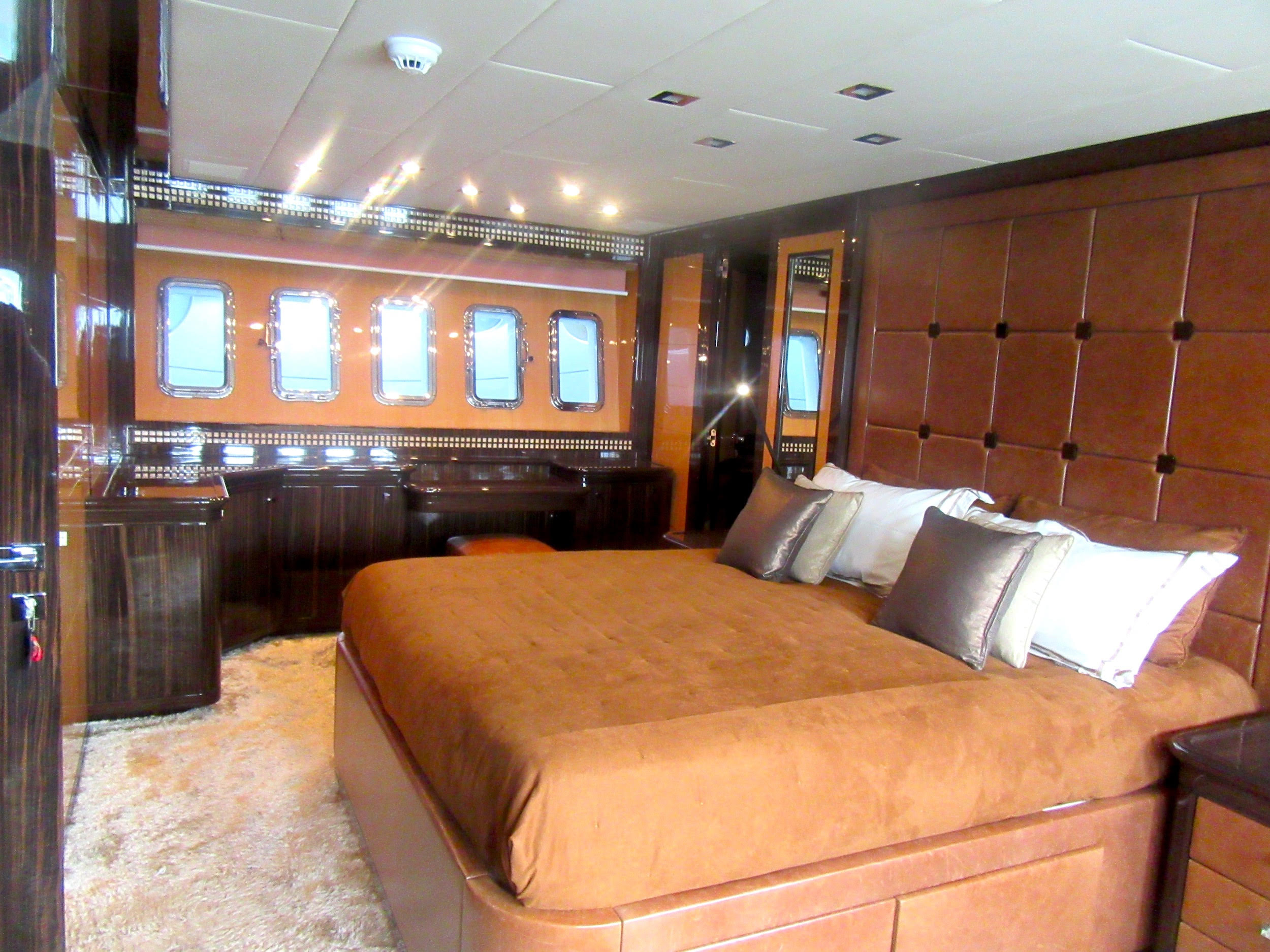 Lastly Orion I Mangusta Charter has four wonderful cabins with ample room to sleep nine. The cabin configuration is one master room with a fabulous king-sized bed and one double room with a luxurious queen-sized double bed. As well as two twin rooms, each with two generously-sized single beds. These cabins follow a similar style to the rest of the yacht and are decorated in warm beige’s and browns. This creates a calm and chilled-out ambience. Where guests can both unwind and enjoy a peaceful night’s sleep.