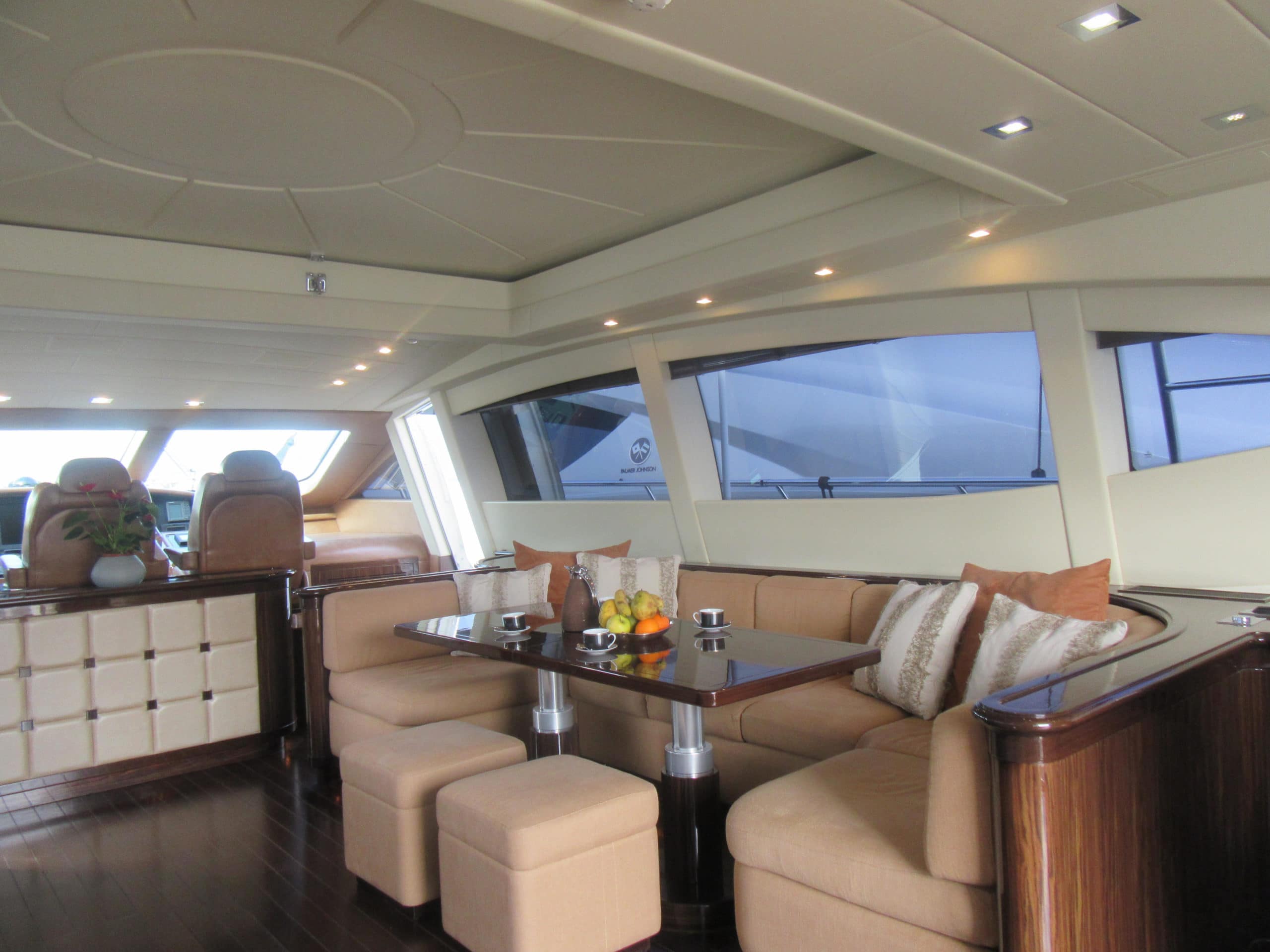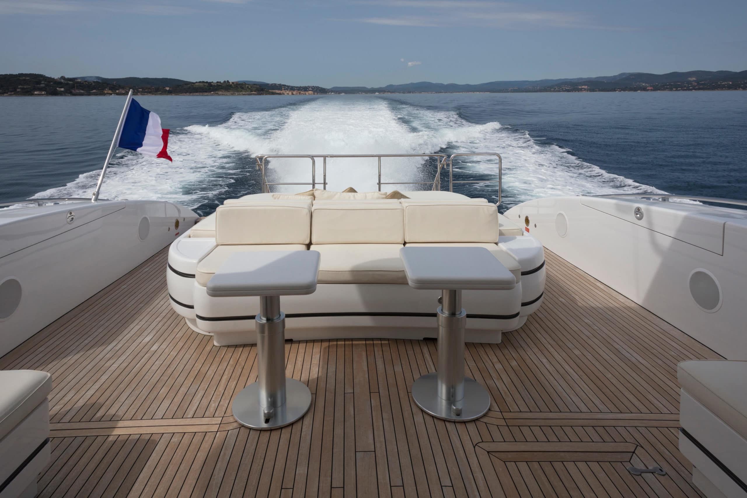 What about those sun-worshippers who want to step off the yacht like a golden goddess? Orion I Mangusta charter has the perfect sunbathing space for you. The aft of the yacht features a large and spacious lounge bed. Its a great sun trap for getting bronzed! Behind this we have an informal dining area. Ideal for guests to enjoy a bite to eat or even a refreshing cocktail while admiring the scenery.