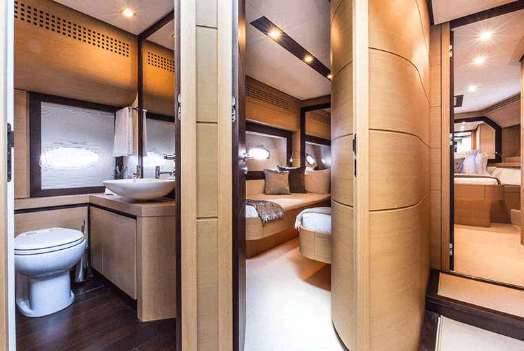 As with everything on board Looney, comfort is to the highest standard. The yacht has three super luxurious cabins and can provide up to seven guests a glorious night’s sleep. Each cabin is as gorgeous and inviting as the next thanks to their unique and beautifully designed interior. These consist of two spacious double-bed cabins and one twin cabin with two single beds. Elegant throw-pillows and decorative throws are added to ensure maximum guest comfort. All cabins have their own private en suites.