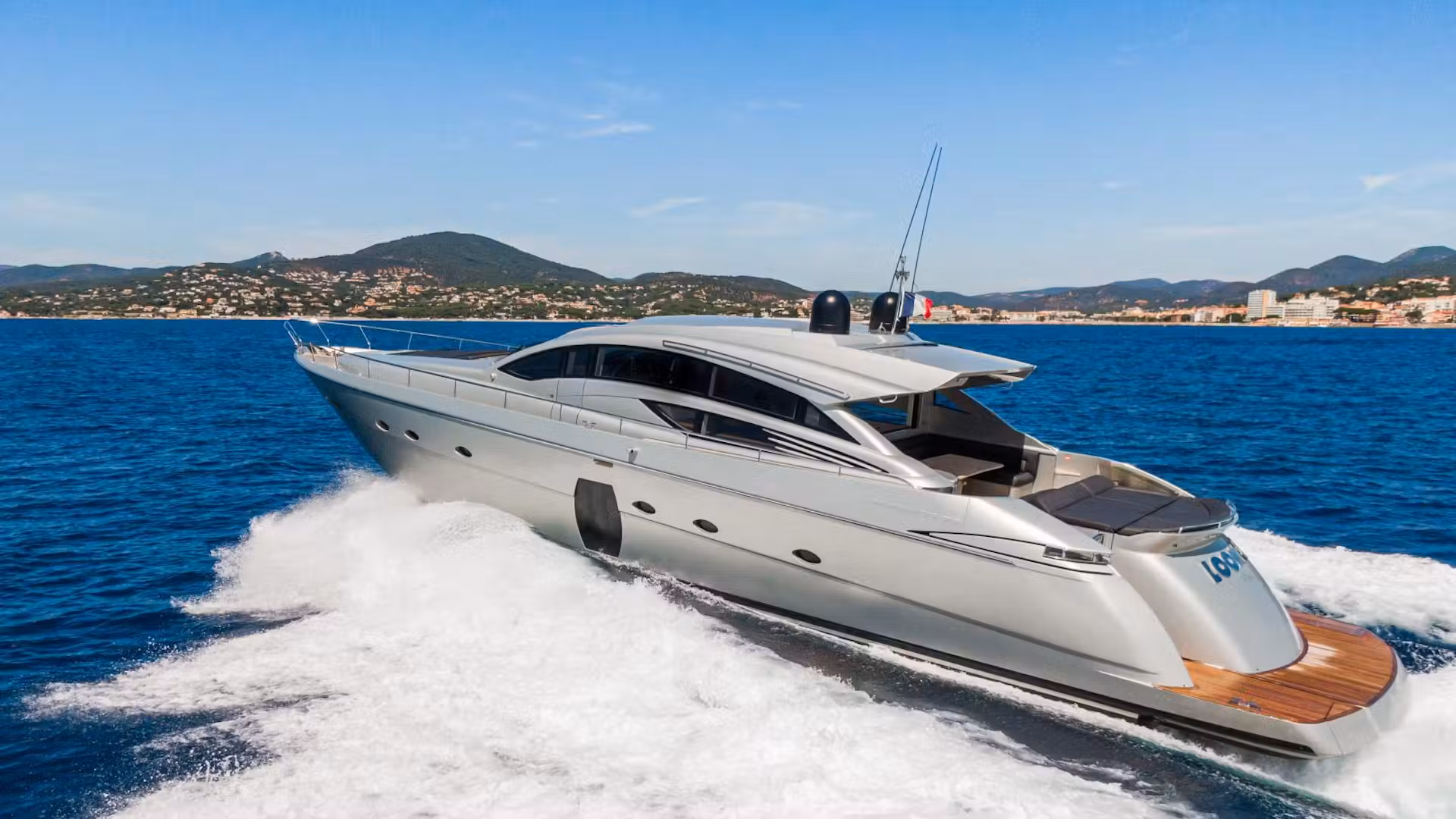 A one of a kind Pershing Motor Yacht, Looney is an excellent choice of yacht to cruise the French or Italian Riviera. Being the perfect 21m in length, this superb vessel can cruise at an impressive average speed of 35 knots per hour. What better way to explore these coastlines in style? Designed and manufactured by Pershing, Looney’s sleek and silver exterior is just one of the many eye-catching features of this fantastic yacht. Since first on the water in 2012, Looney has never failed to attract attention as she whizzes through waves like a silver bullet.